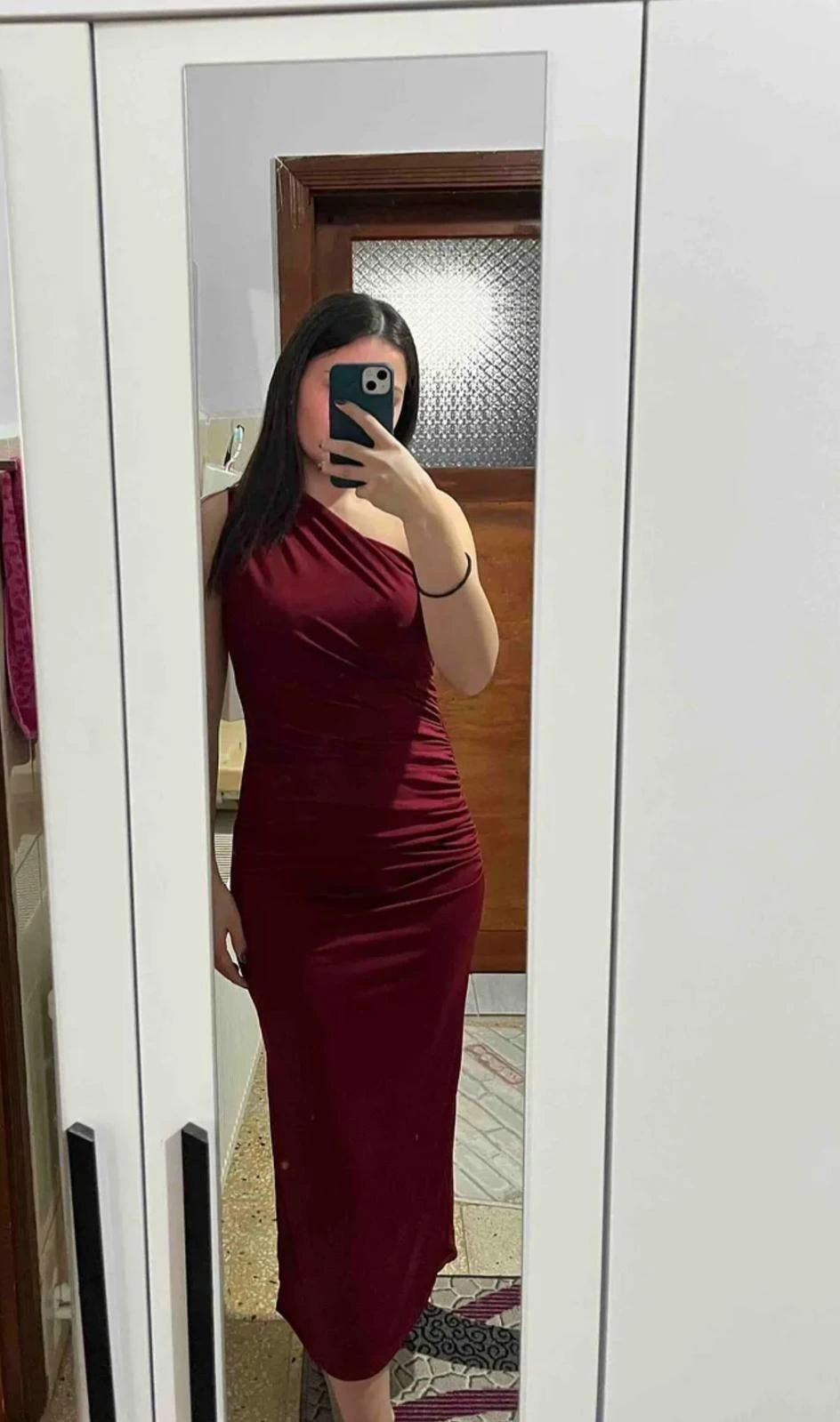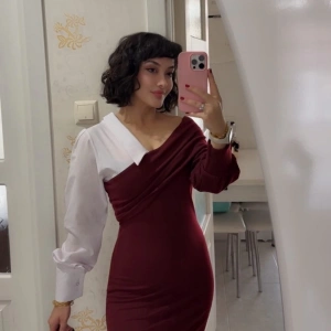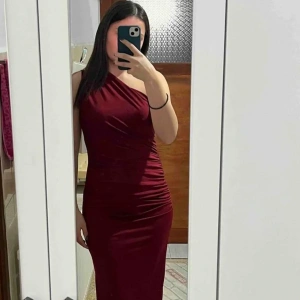 Bel Dekolte Tek Kol Simli Elbise - BORDO