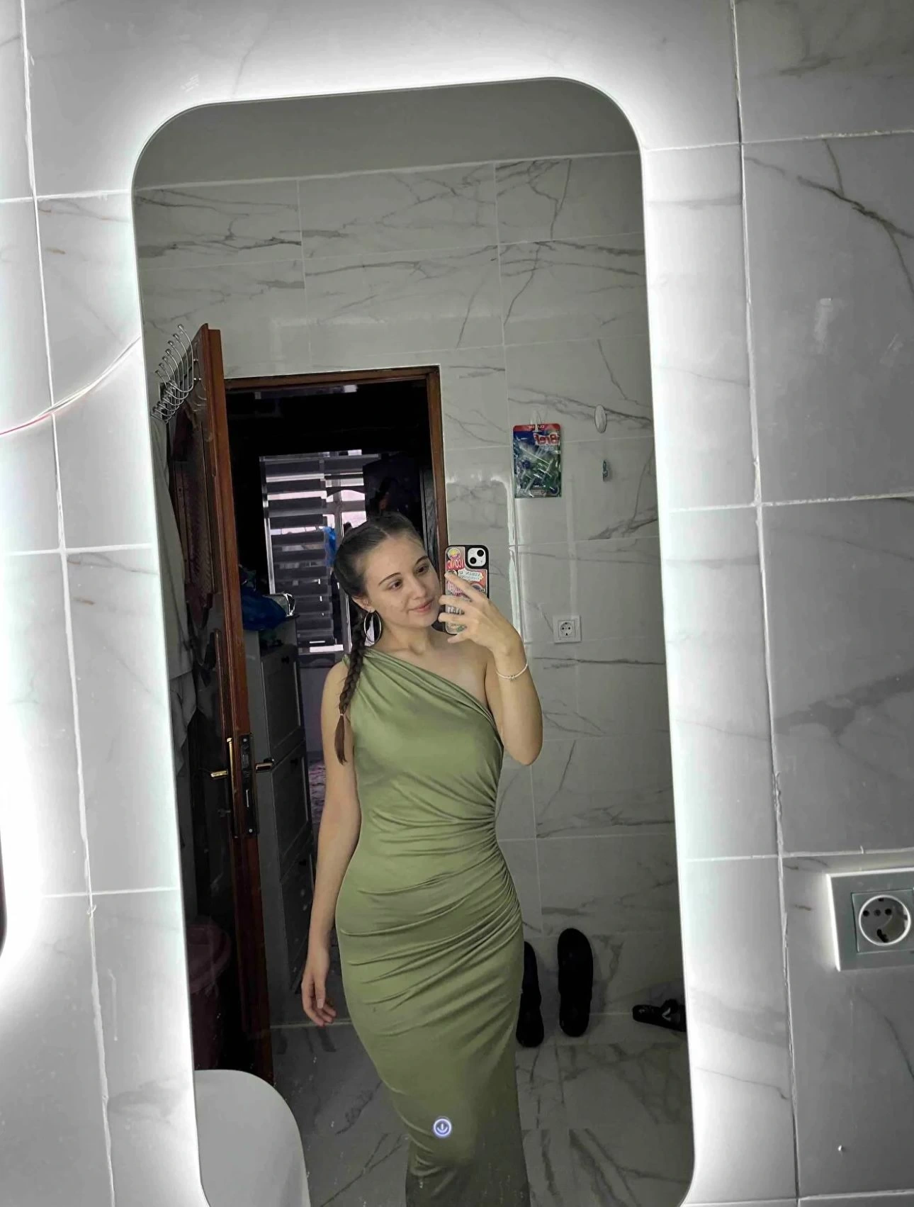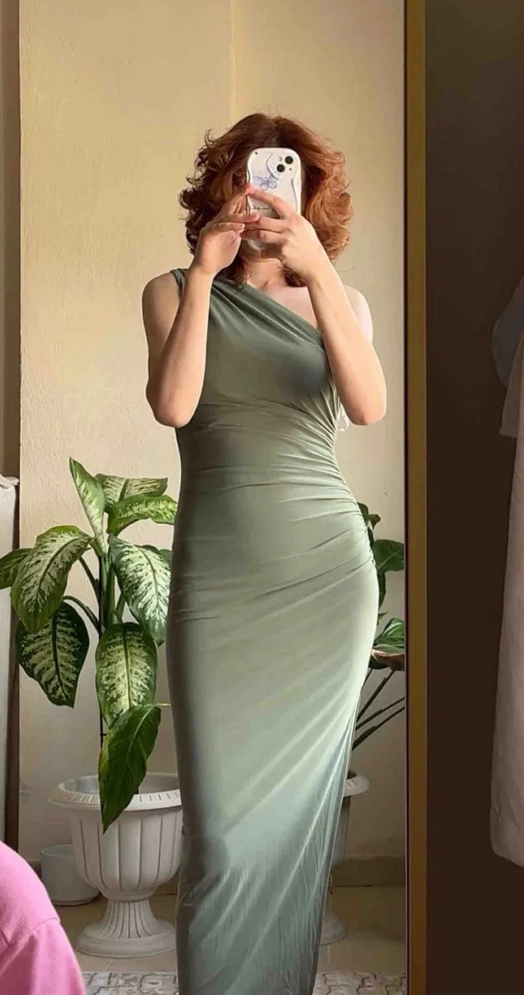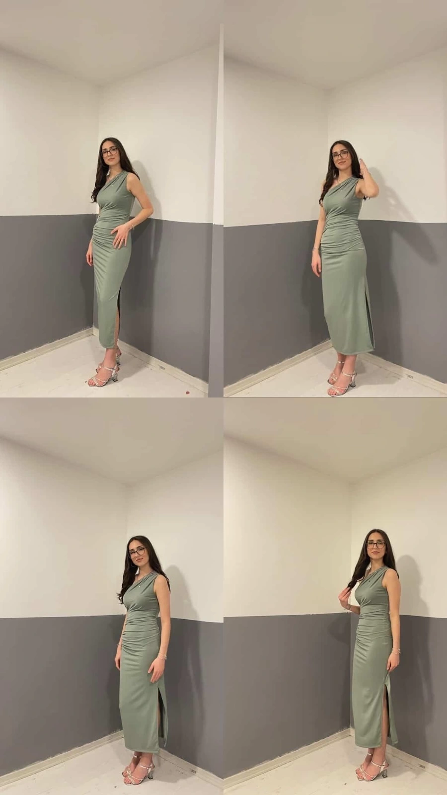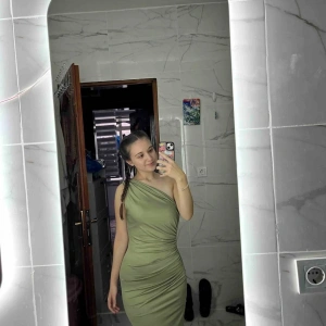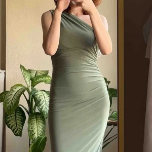 Omuz Detay Drapeli Elbise-YEŞİL