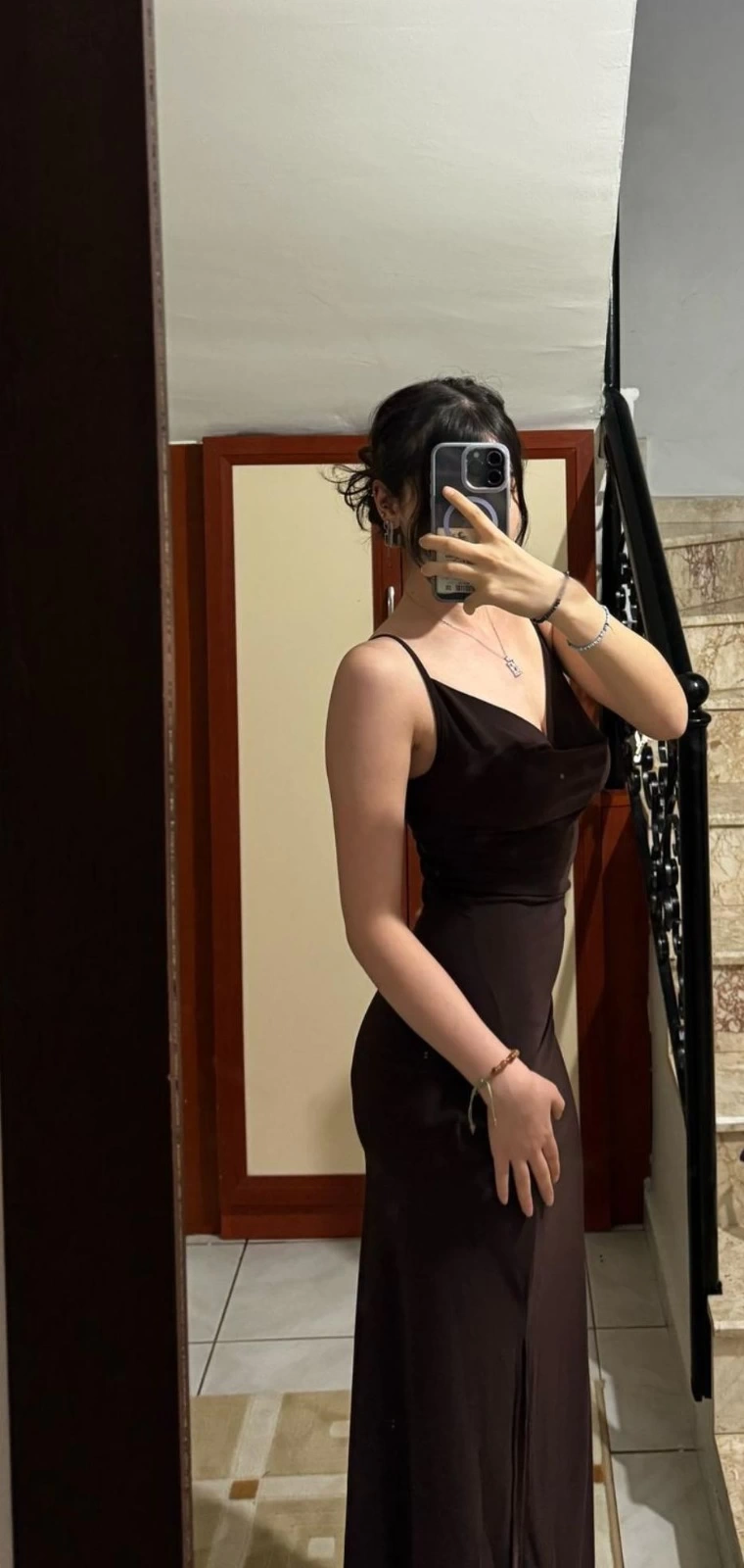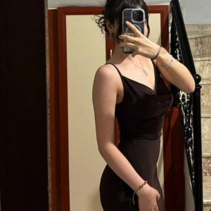 Madonna Yaka Dantel Astarlı Elbise - KAHVE