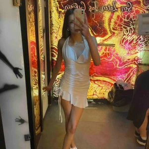 Boyun Bağlamalı Büzgülü Elbise - SİYAH