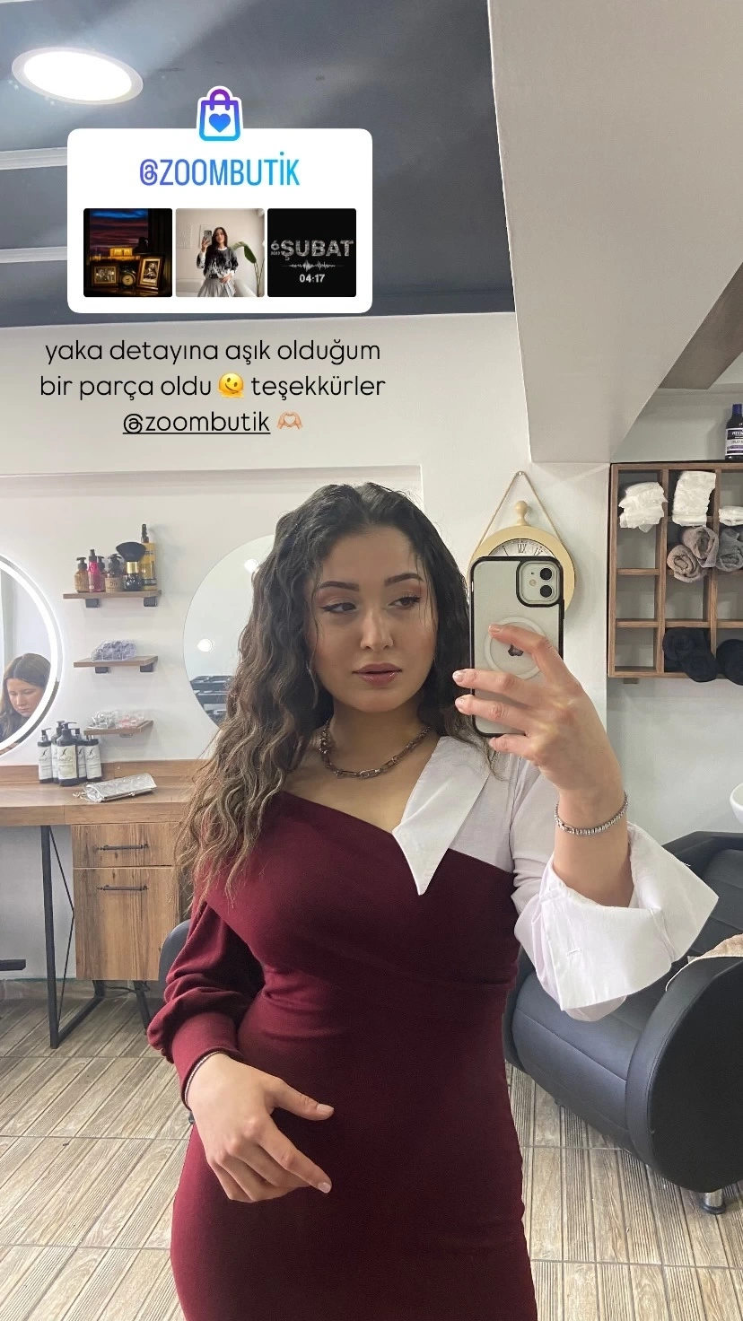 Kuşaklı Saten Elbise - BORDO