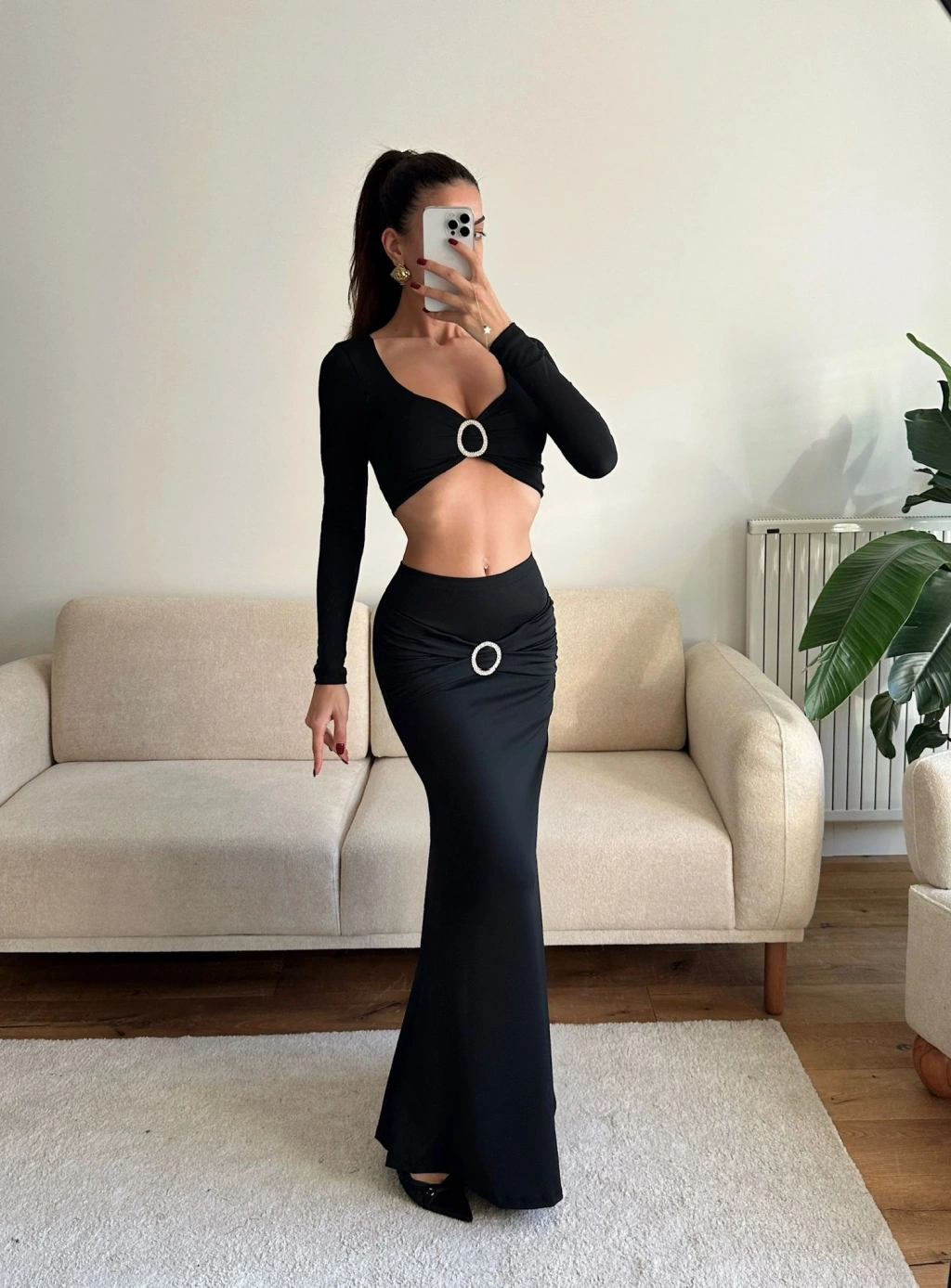 Aksesuar Detay Etekli Takım - SİYAH