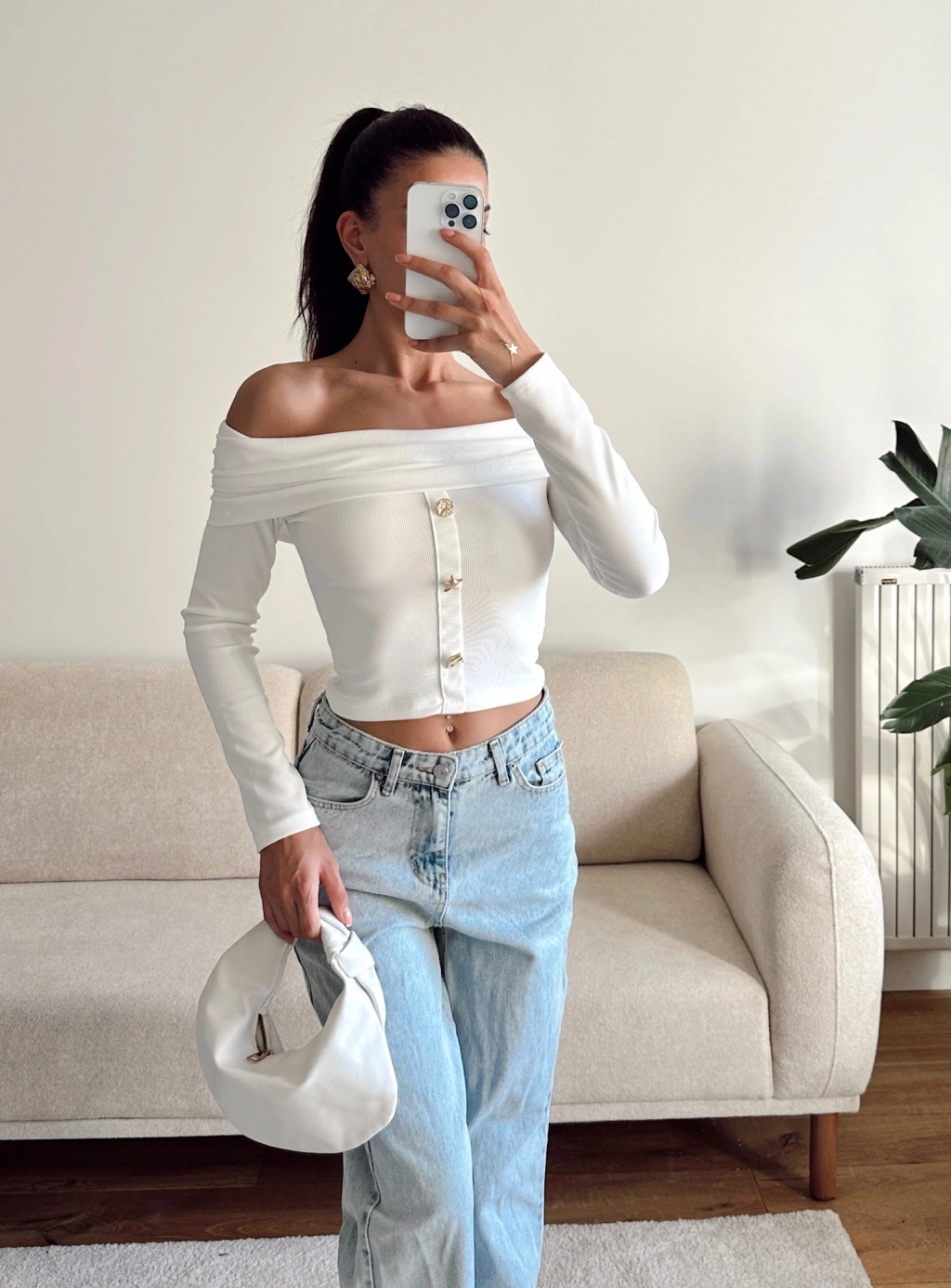Aksesuar Detay Madonna Crop - BEYAZ