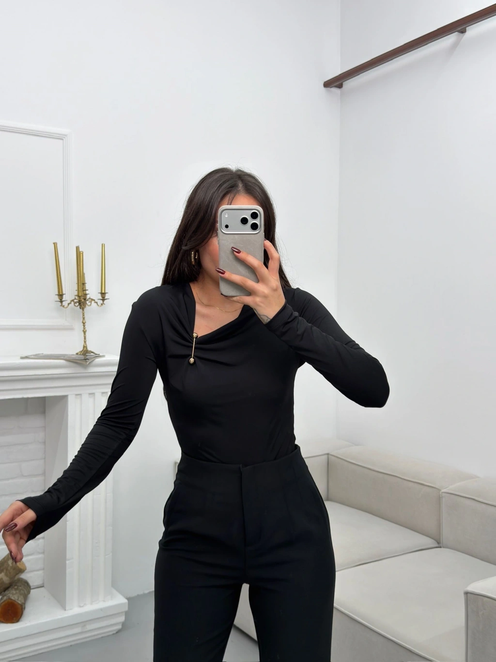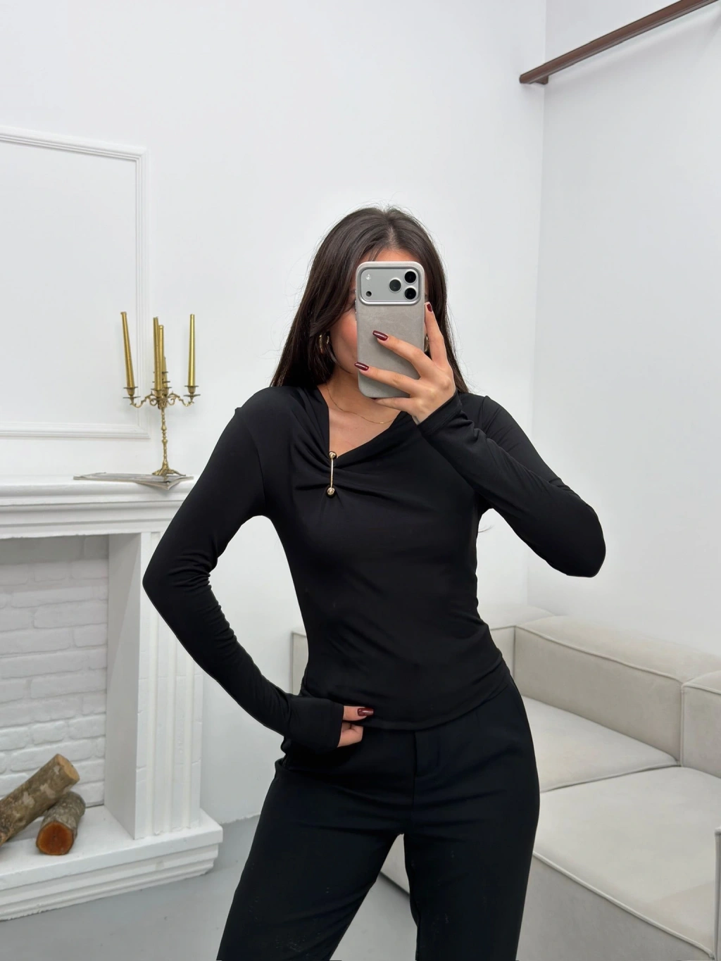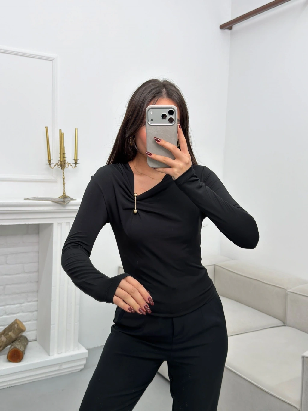 Asimetrik Aksesuarlı Bluz - SİYAH