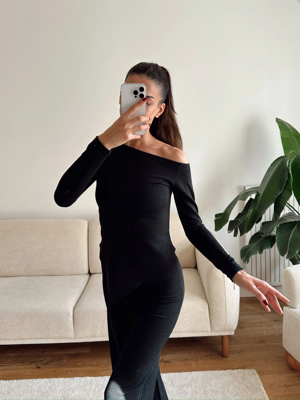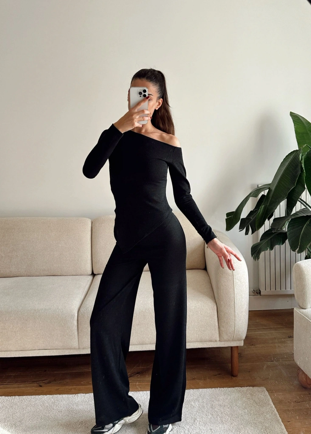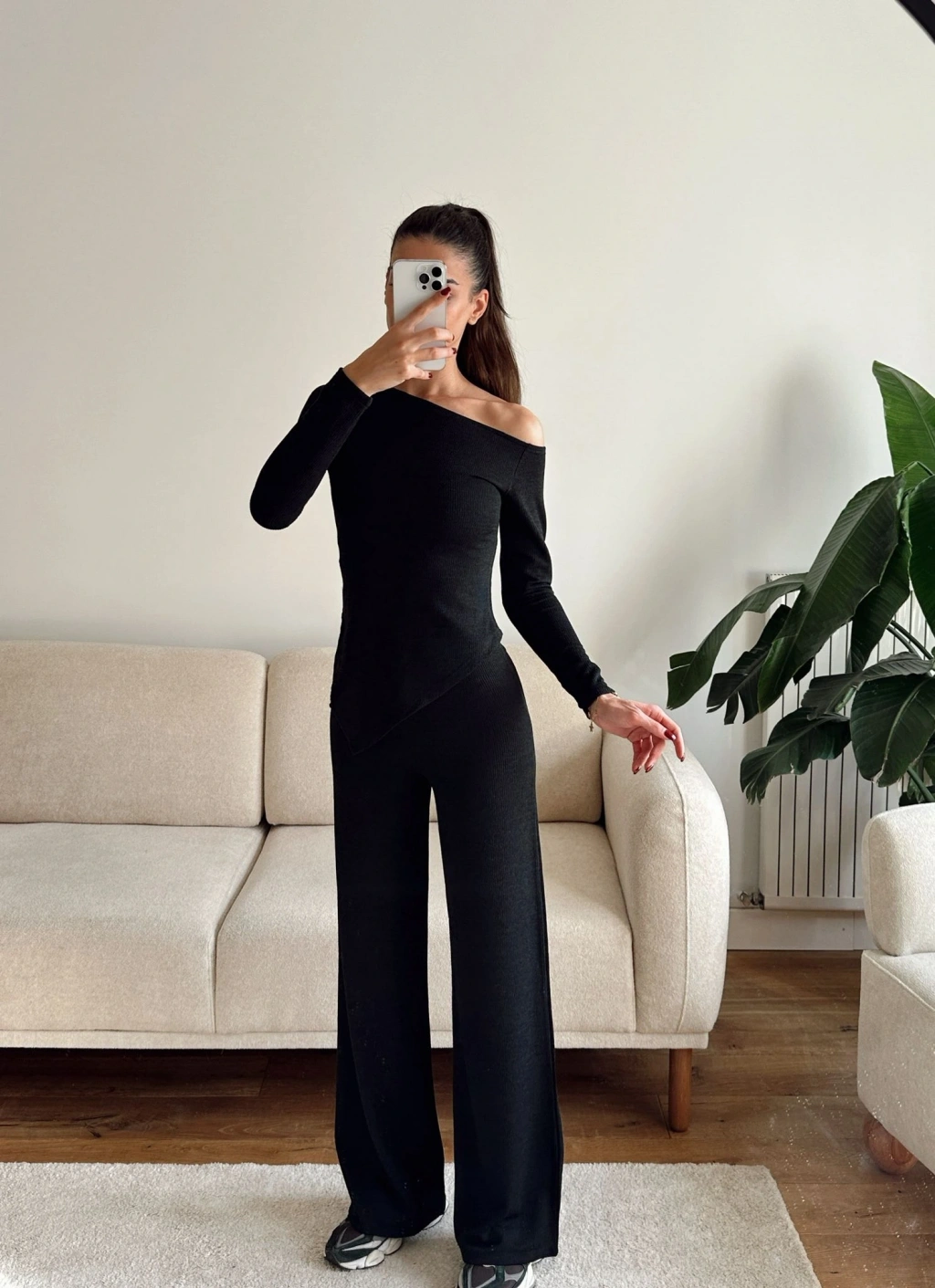 Asimetrik Bluz & Pantolon Takım - SİYAH