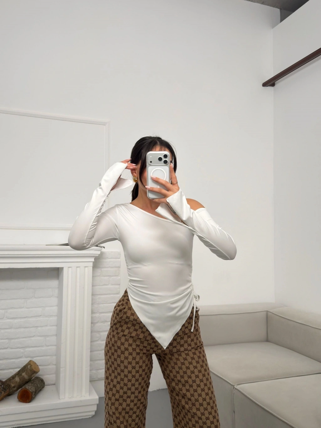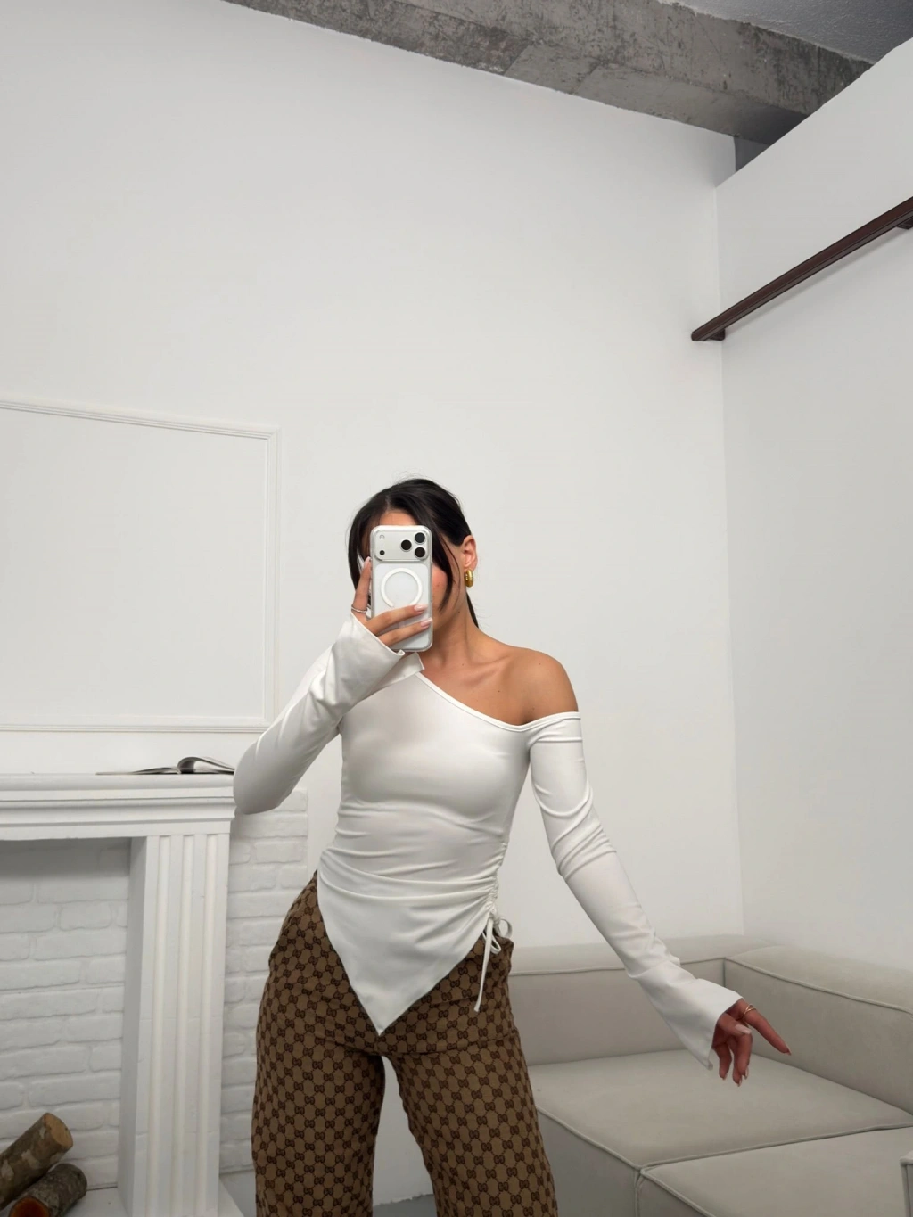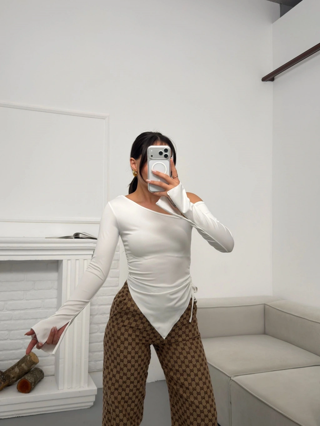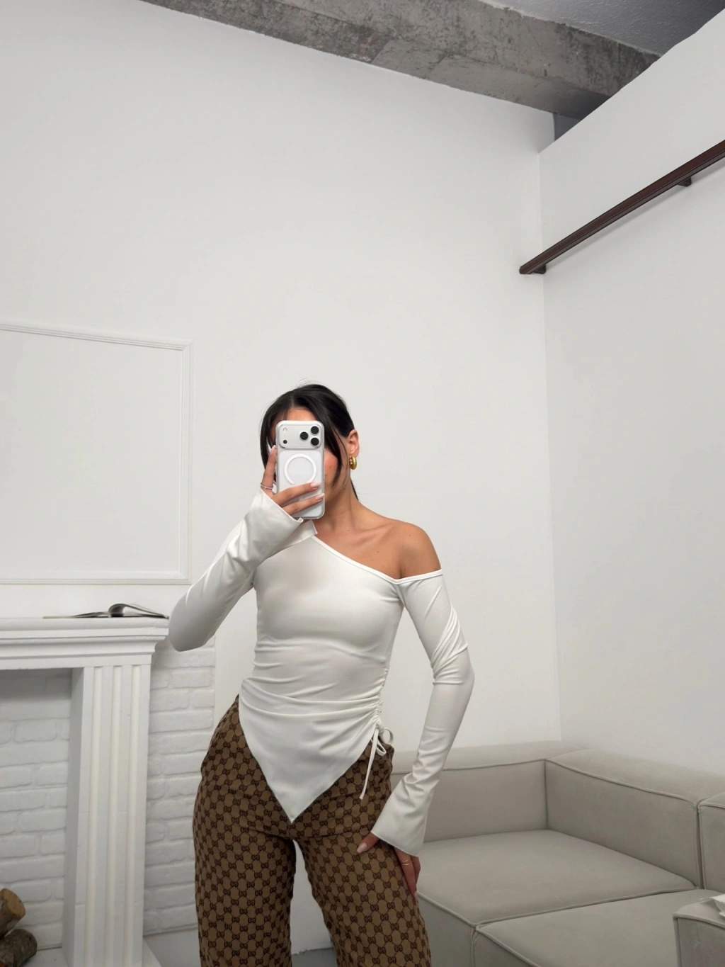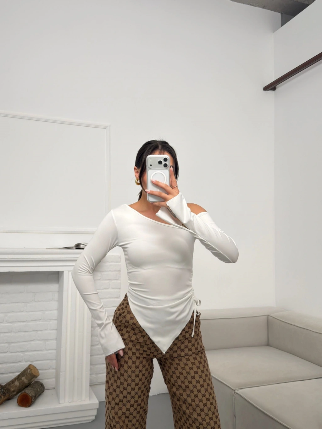 Asimetrik Omuz Dekolte Crop - BEYAZ