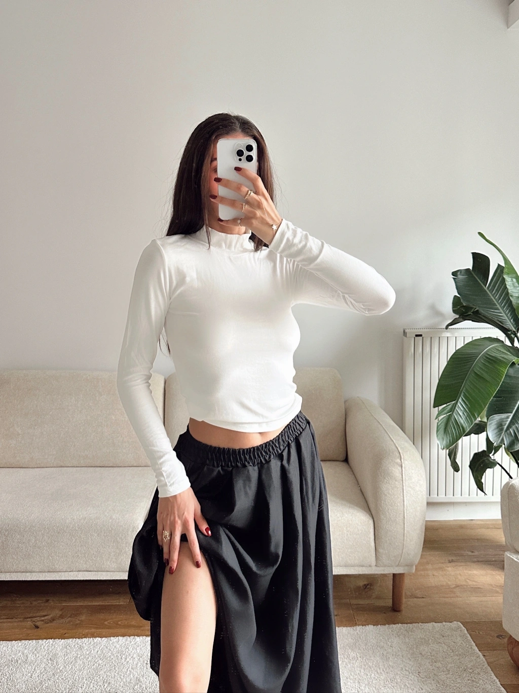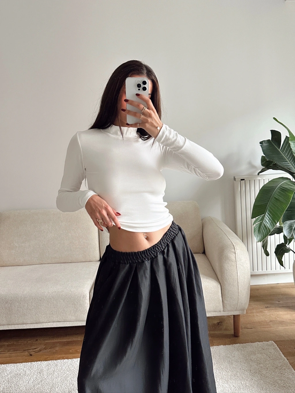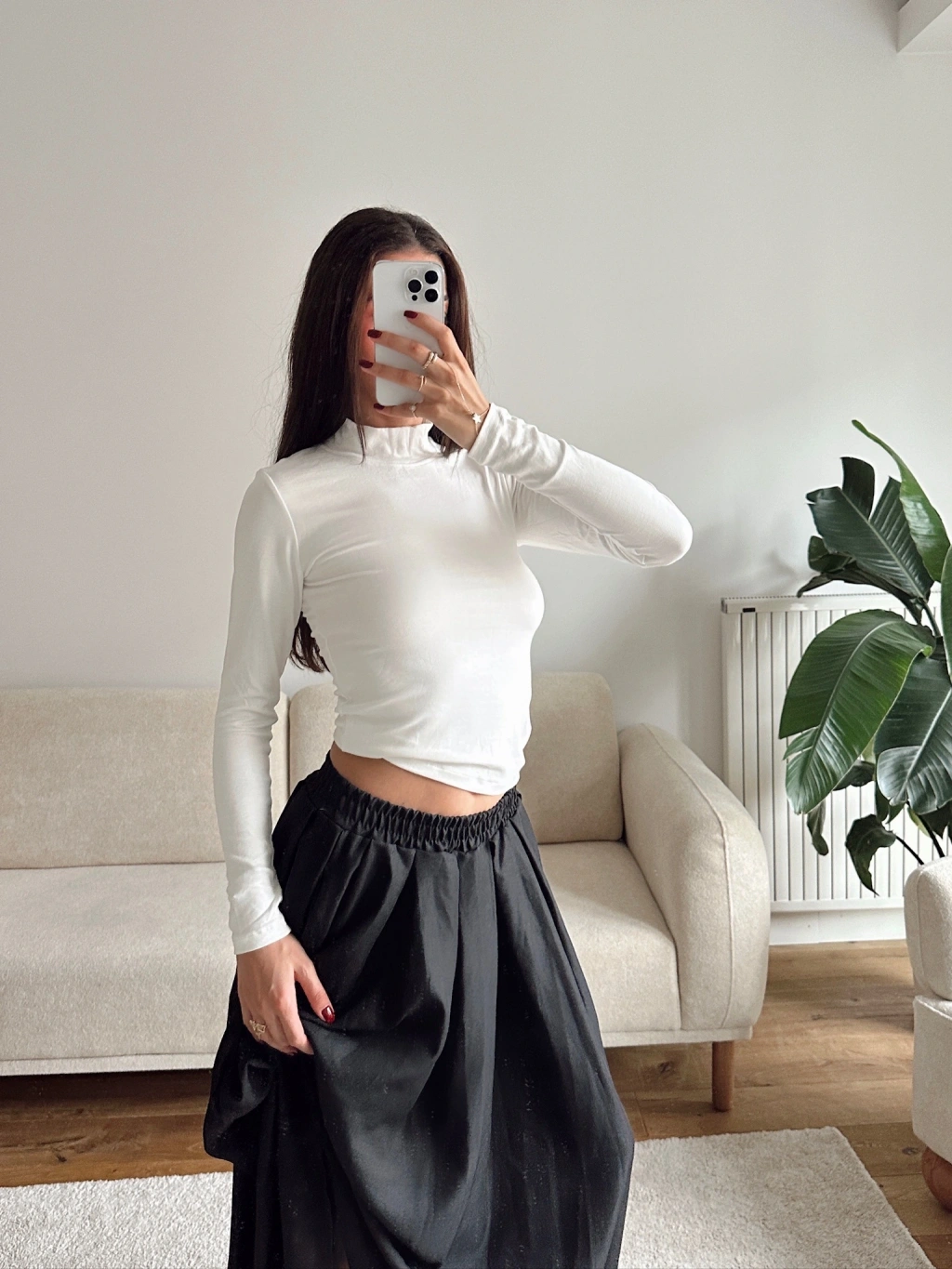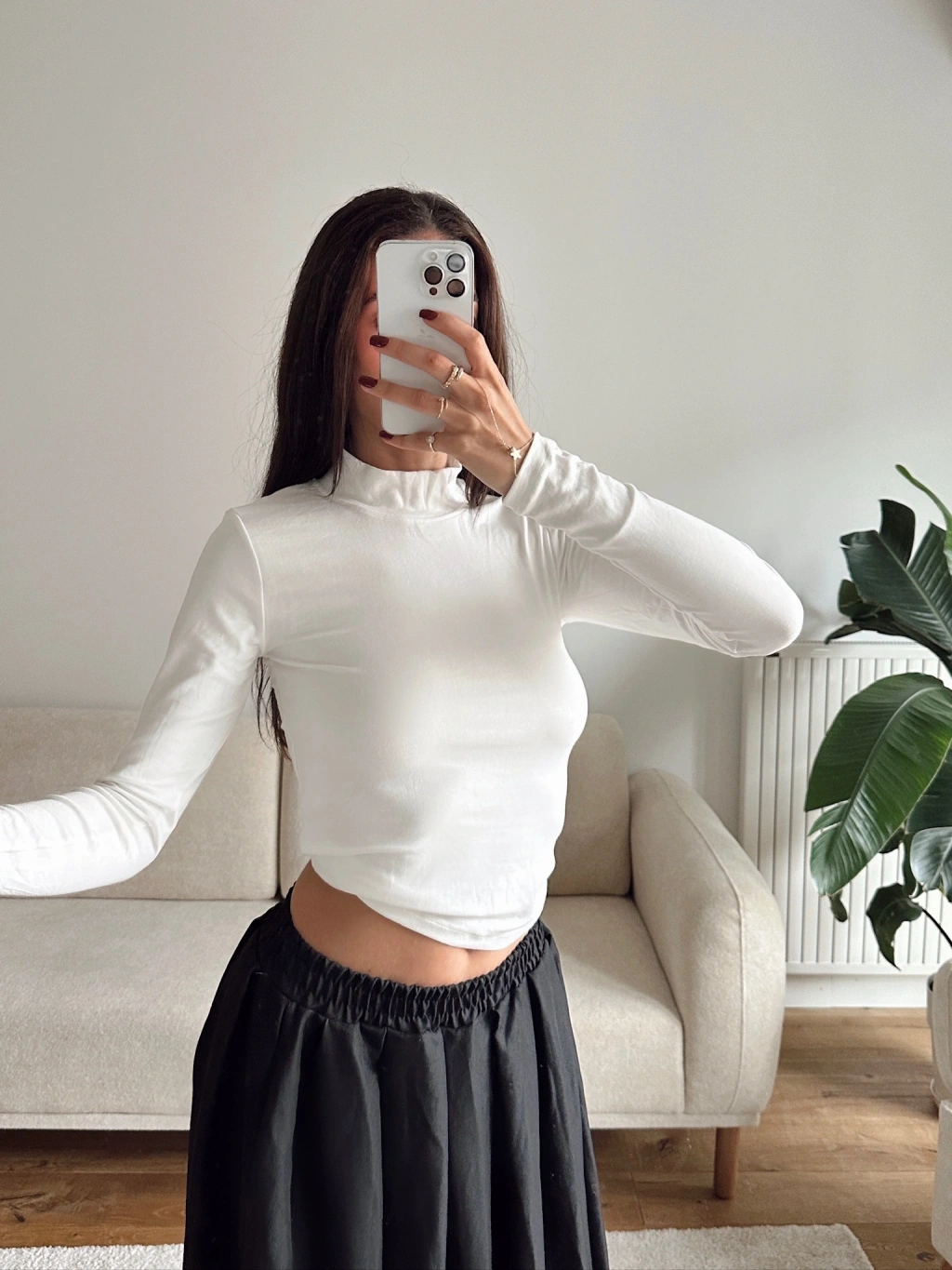 Balıkçı Yaka Buzzy Crop - BEYAZ