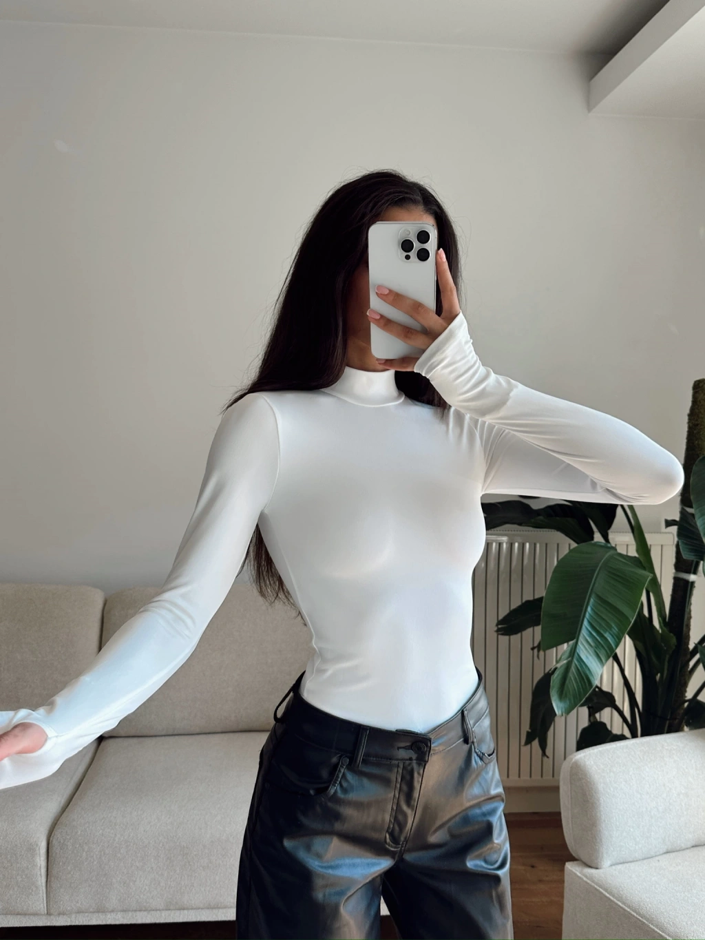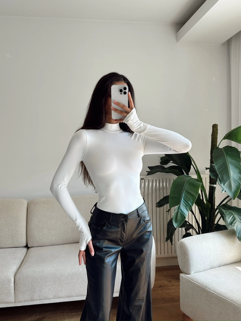 Parmak Geçmeli Balıkçı Bodysuit - BEYAZ