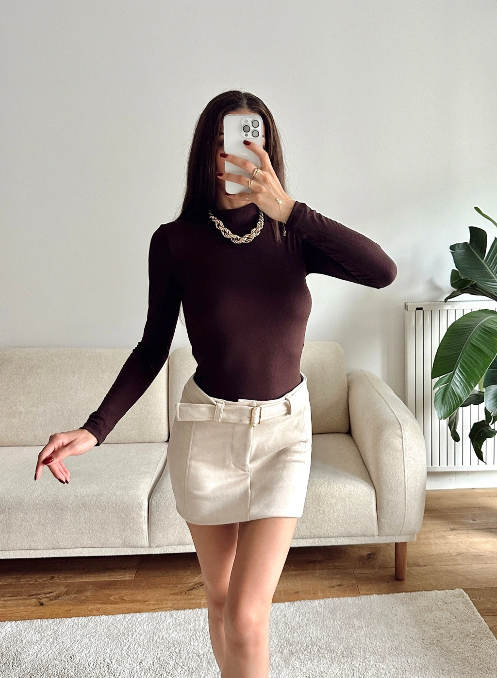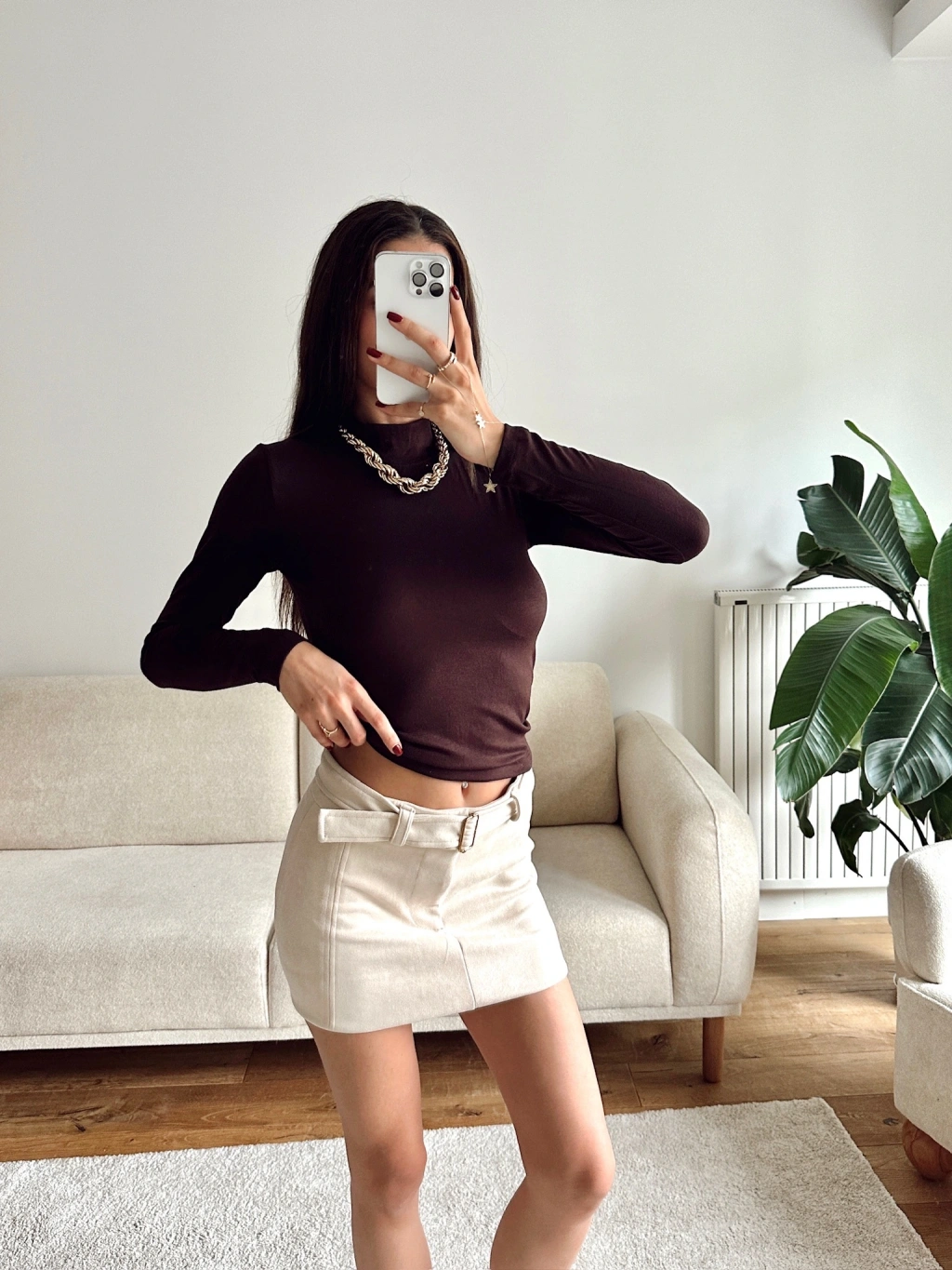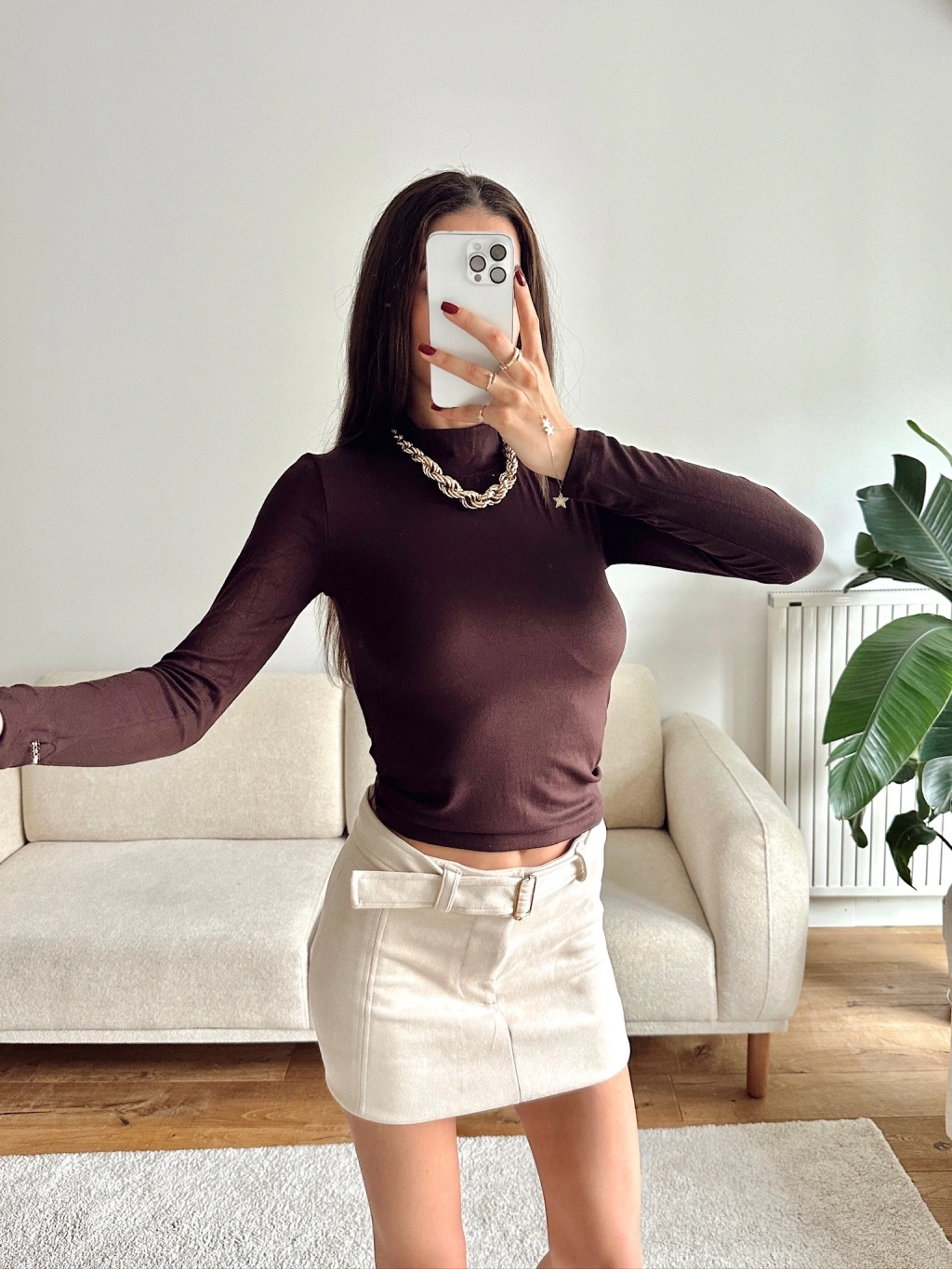 Balıkçı Yaka Buzzy Crop - KAHVE