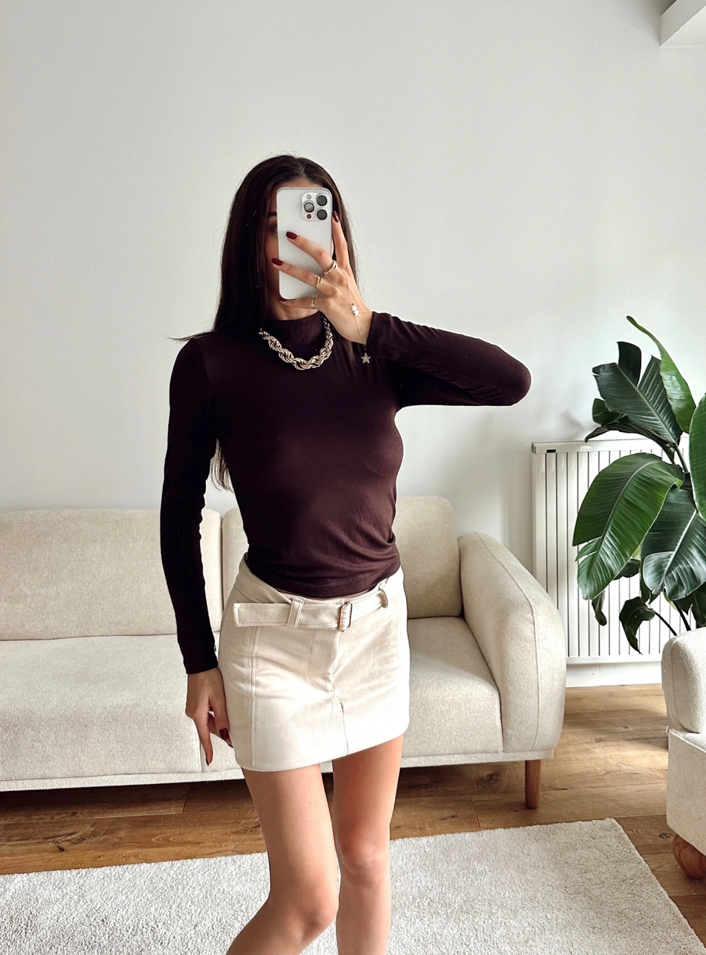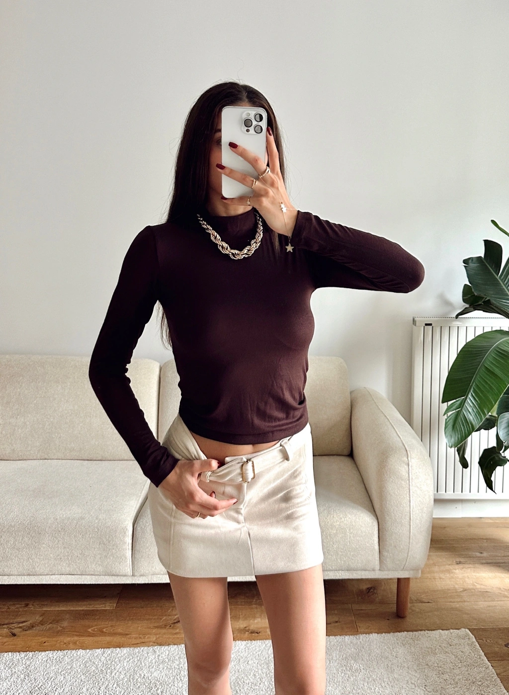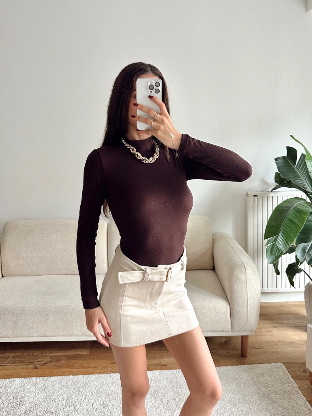 Balıkçı Yaka Buzzy Crop - KAHVE