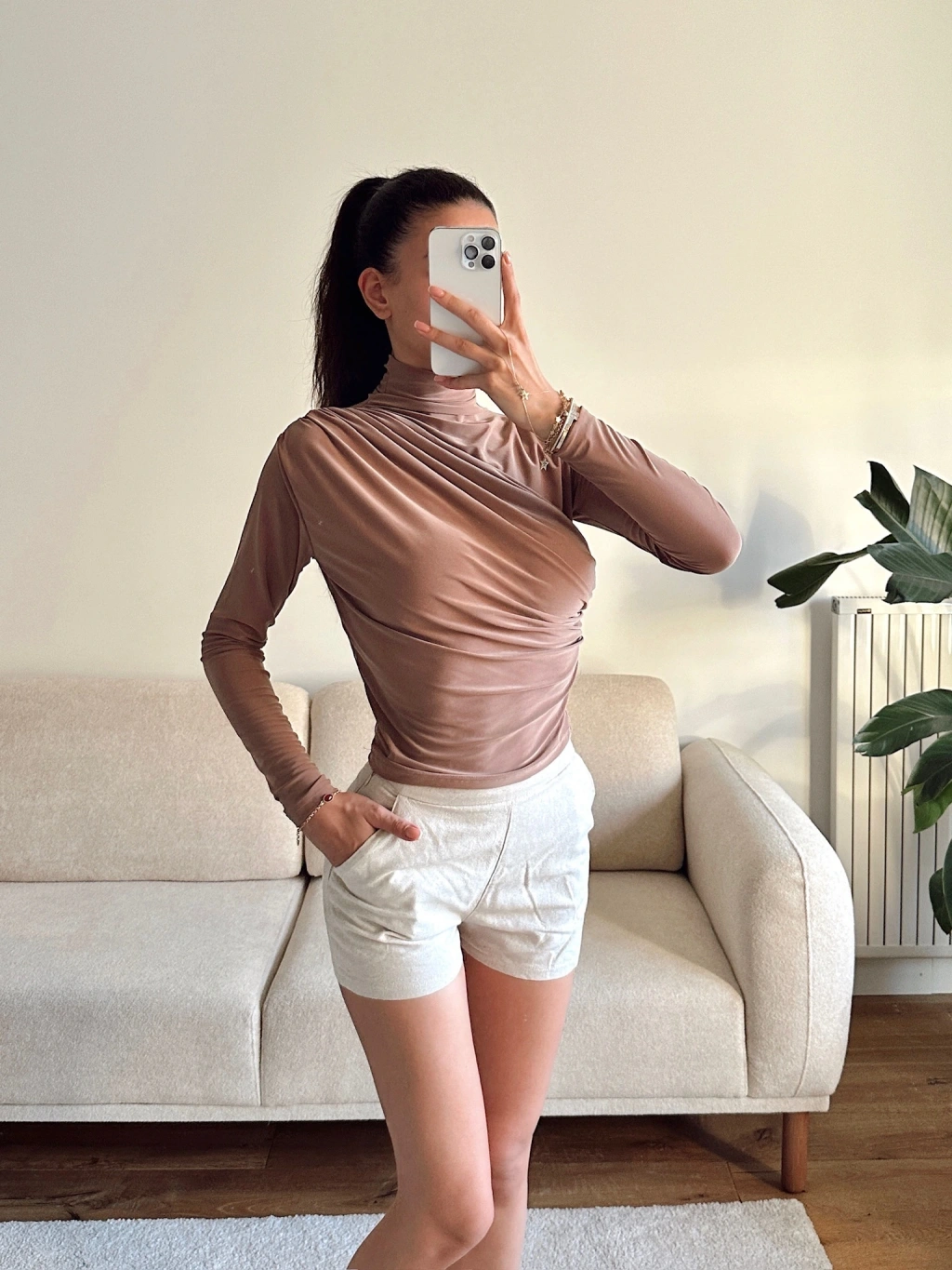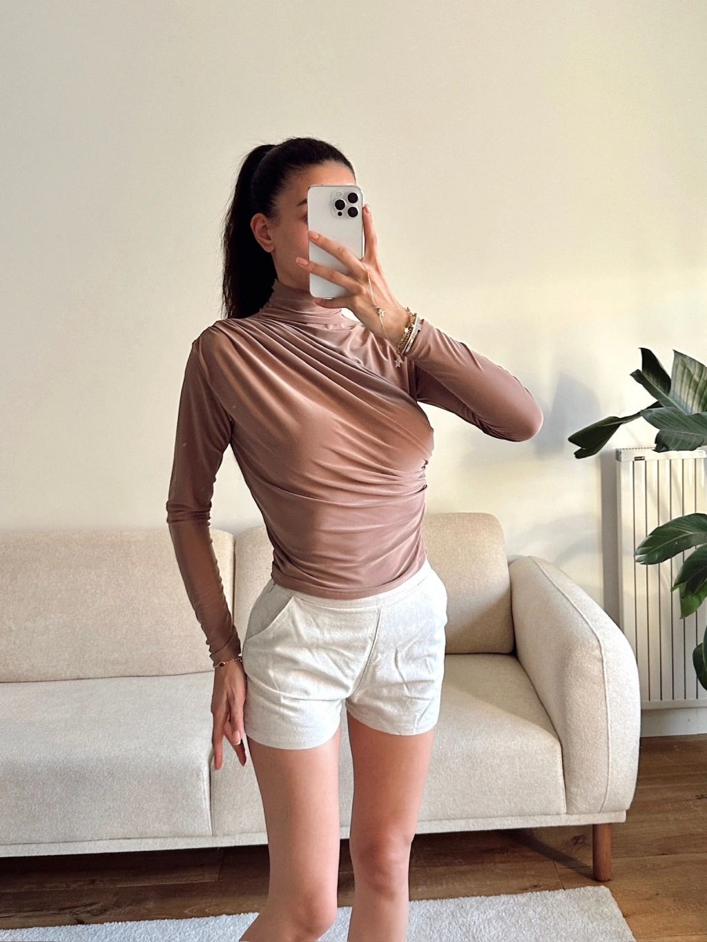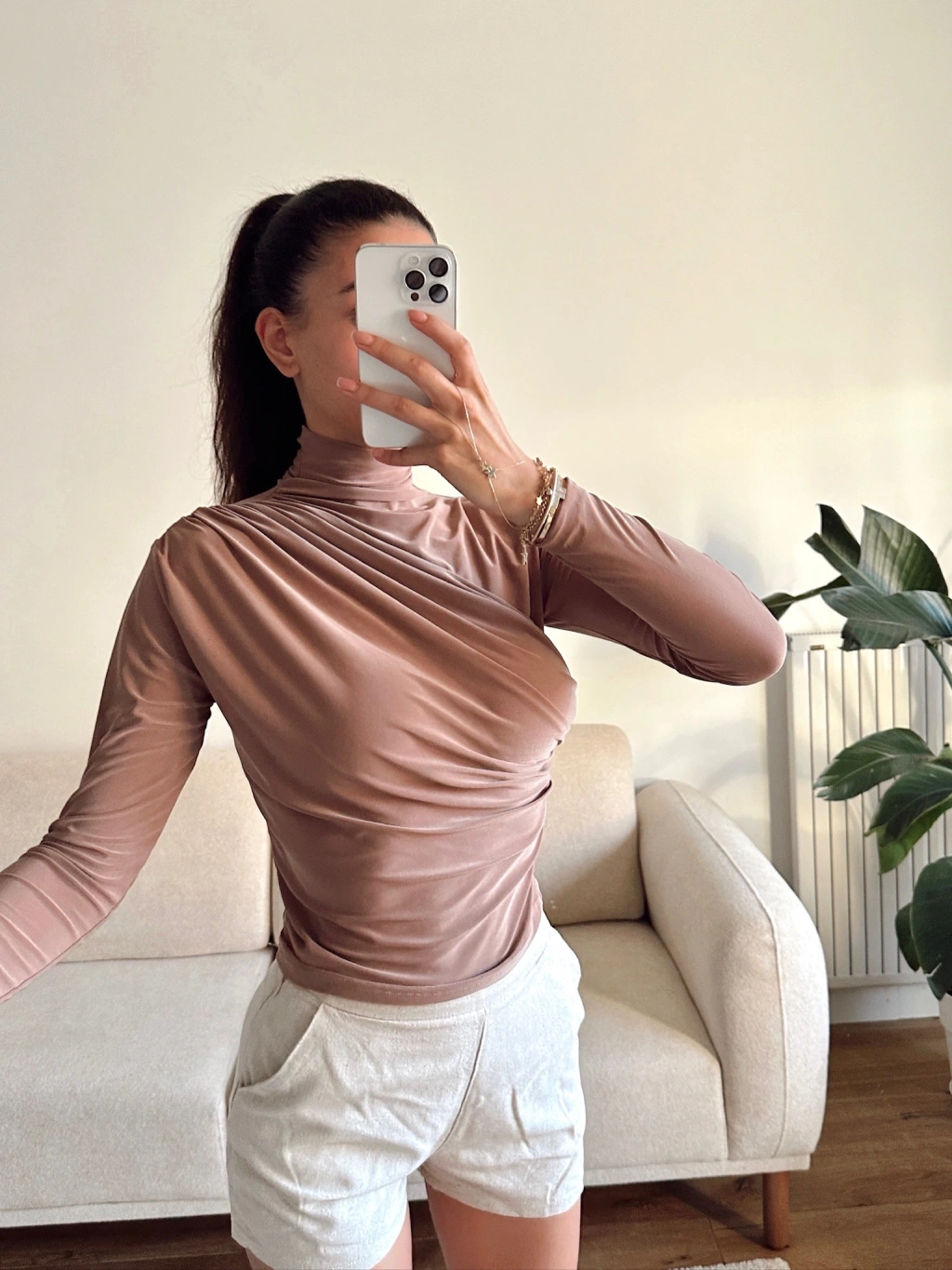Balıkçı Yaka Drapeli Bluz - VİZON