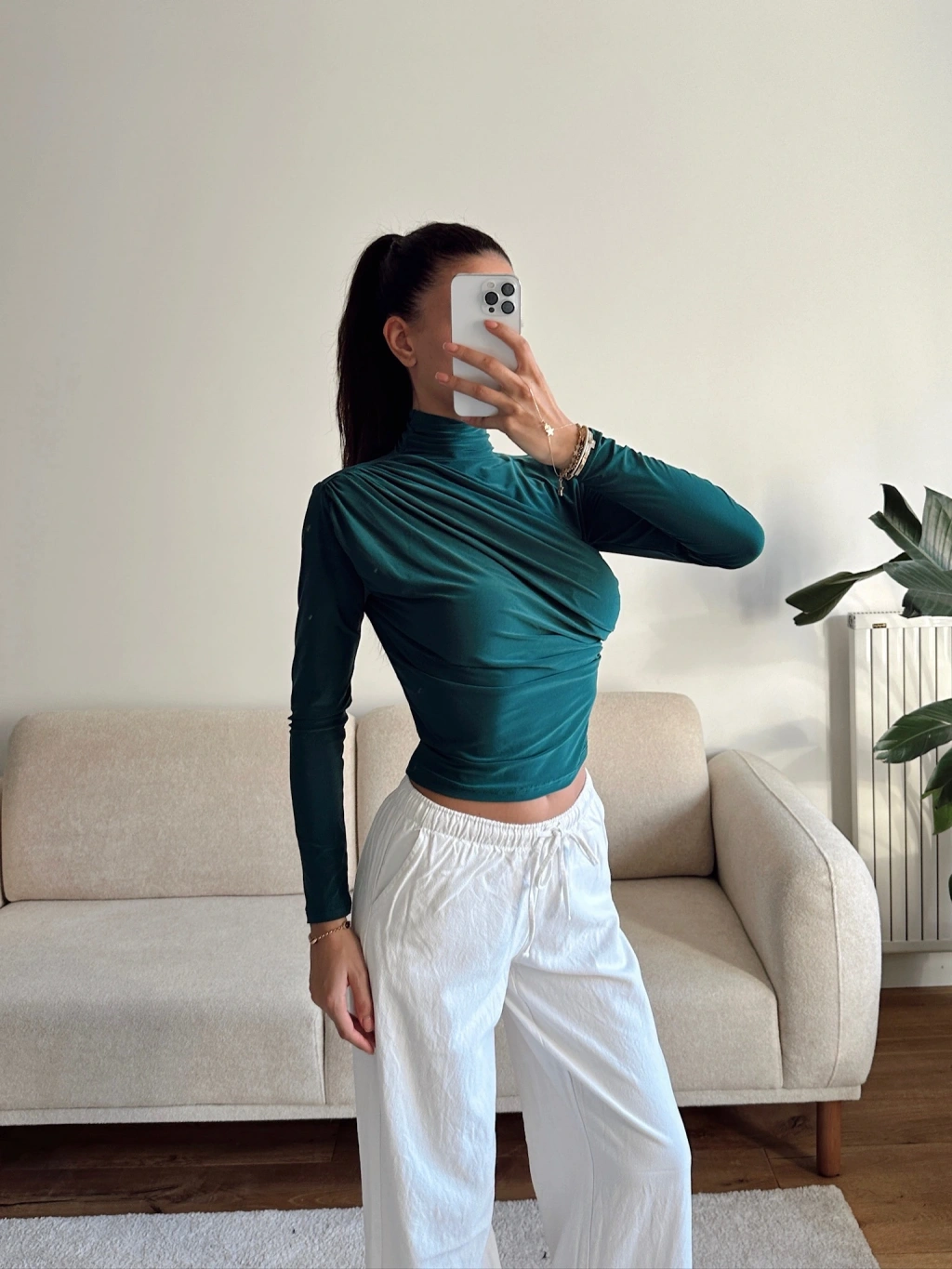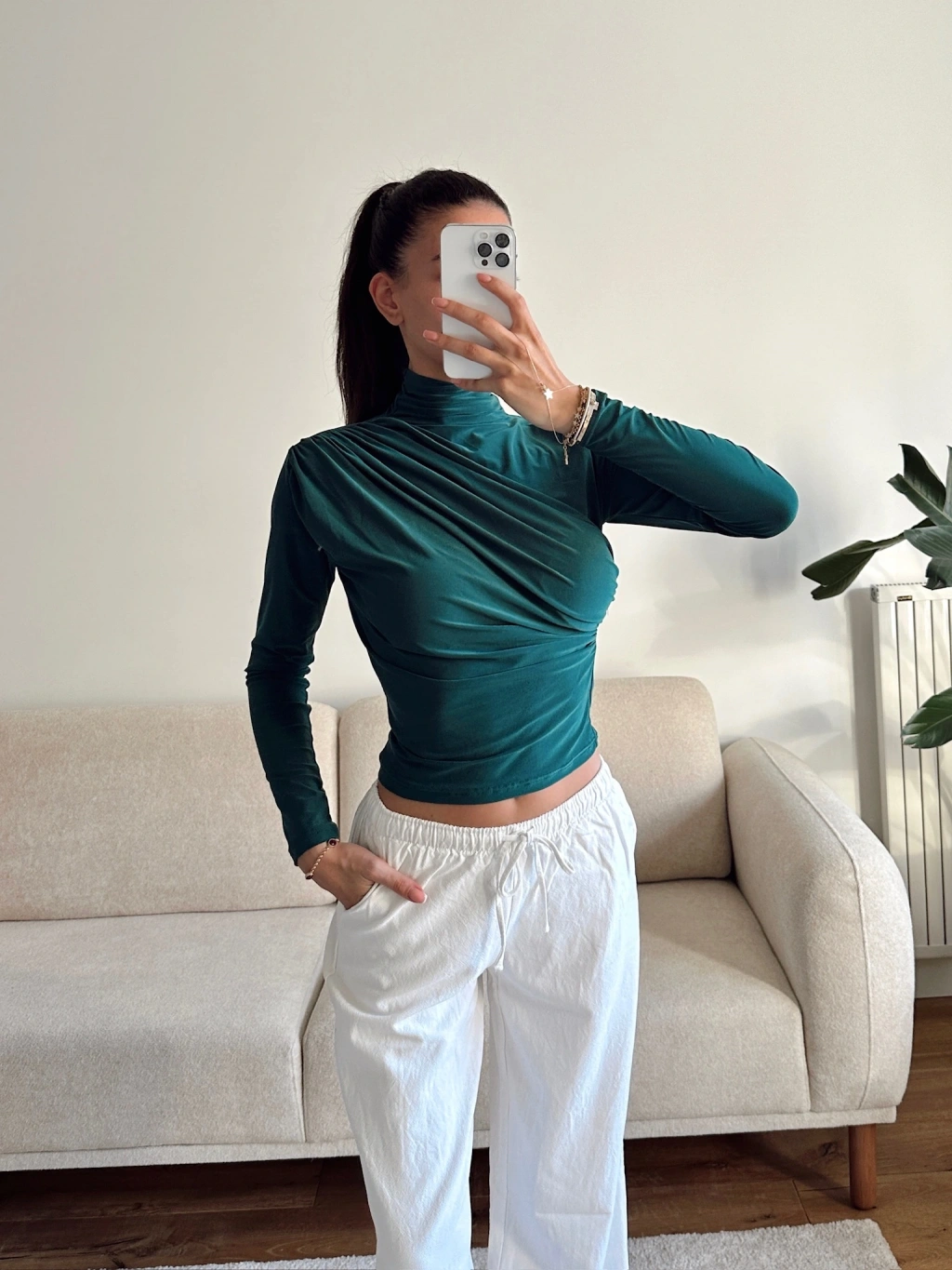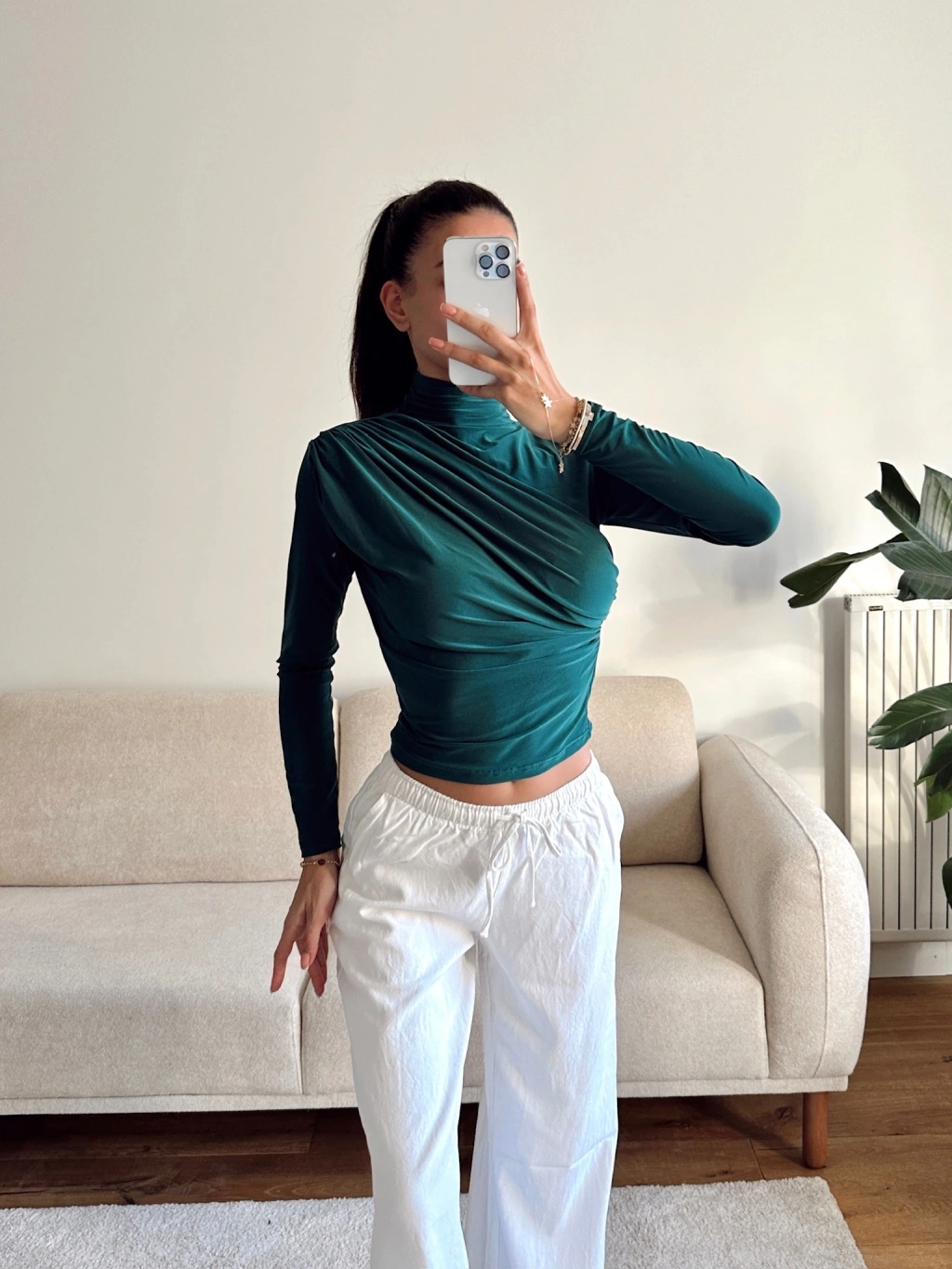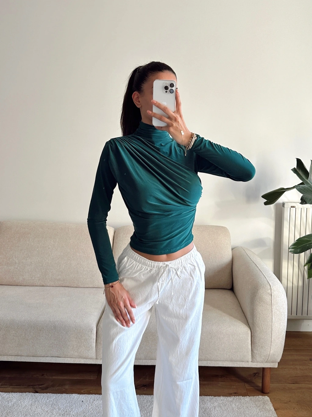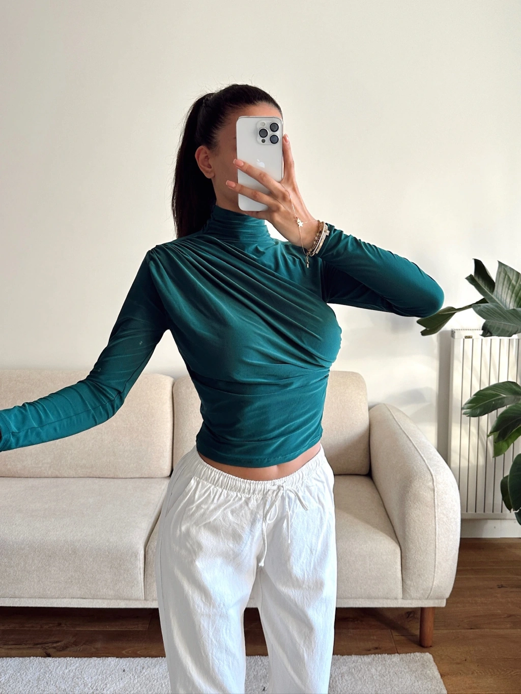 Balıkçı Yaka Drapeli Bluz - YEŞİL