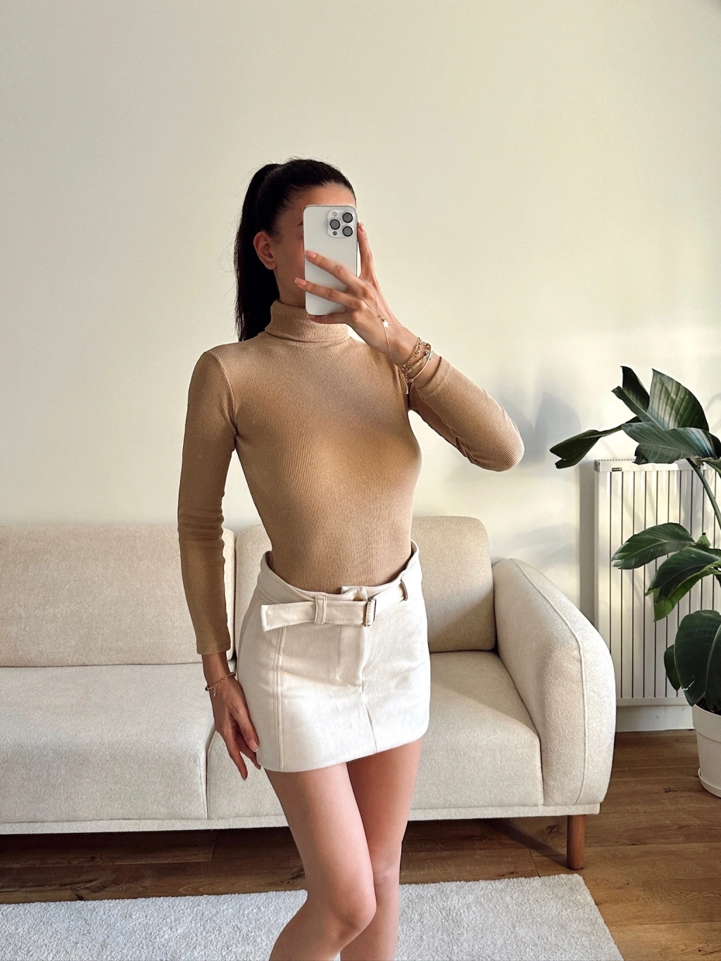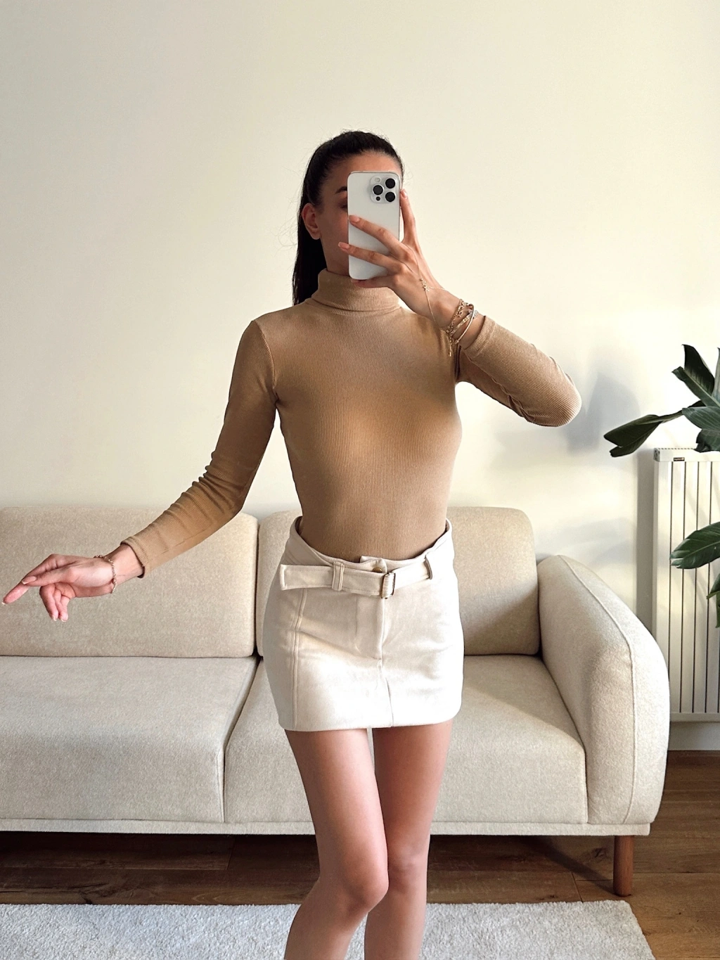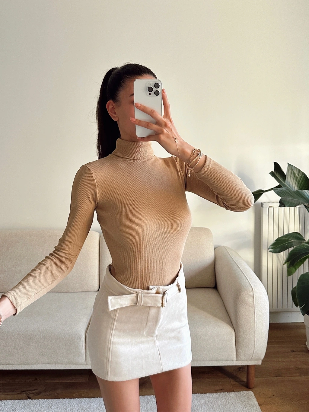 Basic Balıkçı Yaka Fit Bluz - VİZON