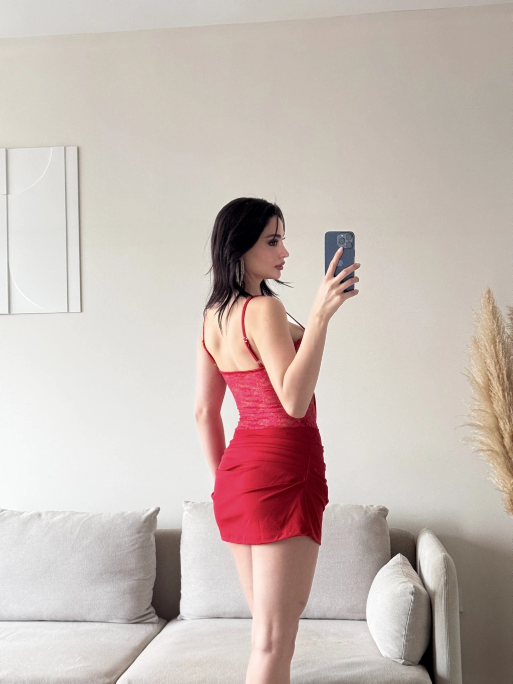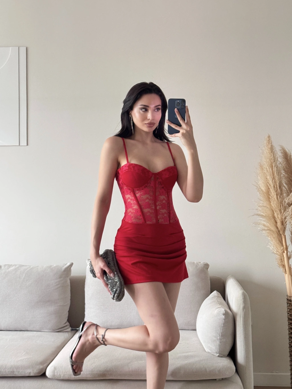 Bel Korse Dantel Detay Elbise - KIRMIZI