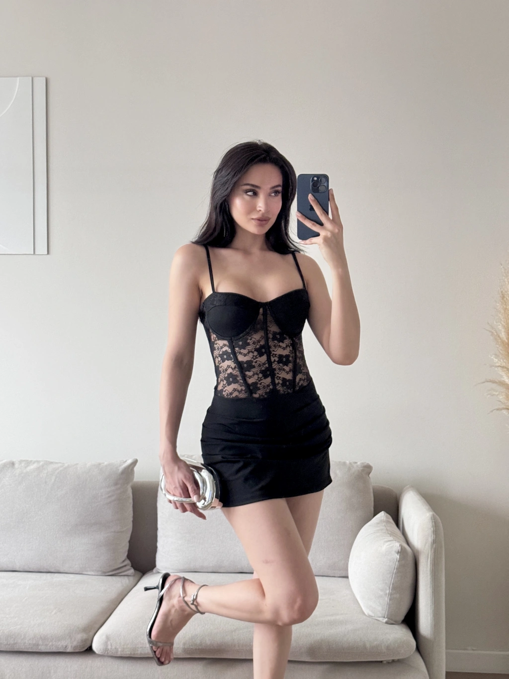 Bel Korse Dantel Detay Elbise - SİYAH