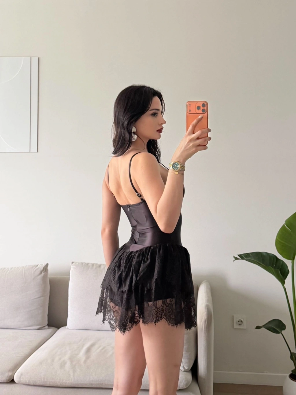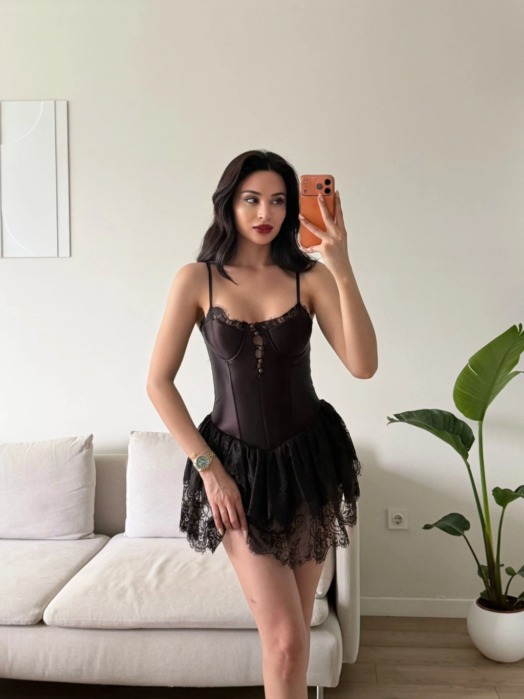 Bel Korse Eteği Dantel Elbise - KAHVE