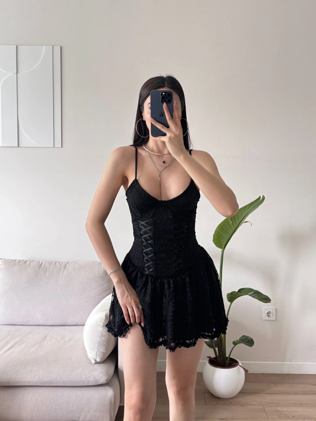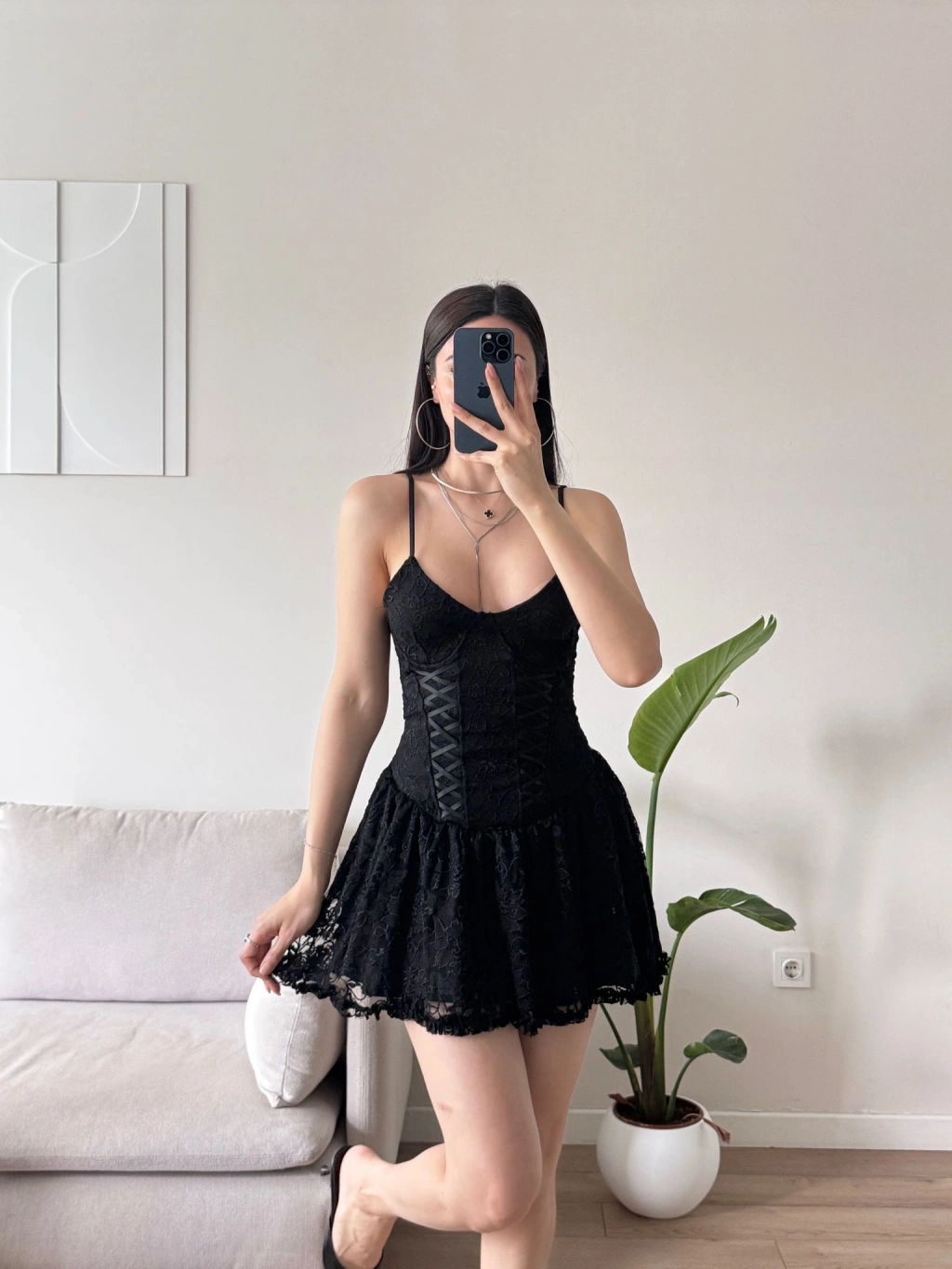 Bel Korse Güpürlü Elbise - SİYAH