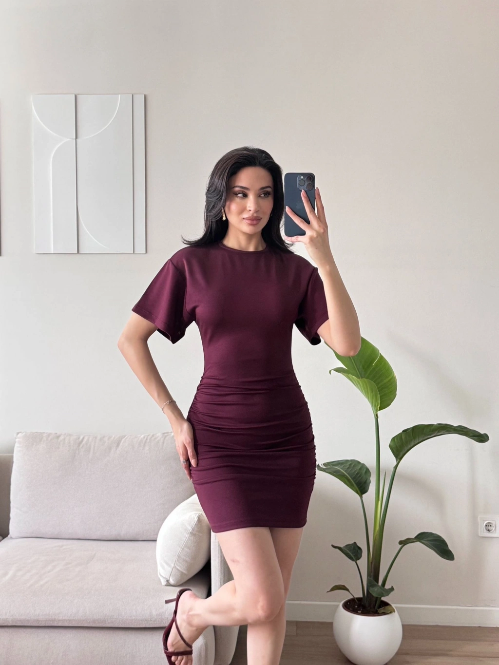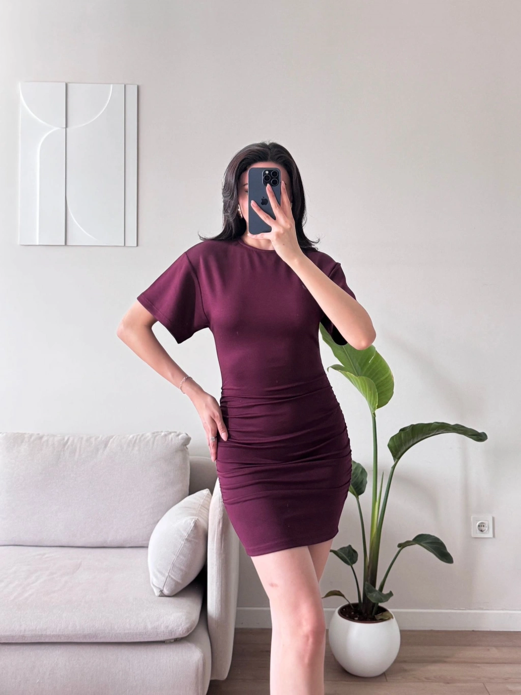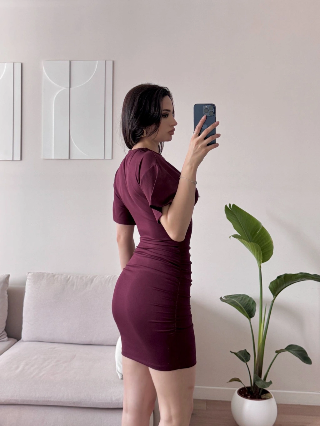 Bisiklet Yaka Modal Elbise - BORDO