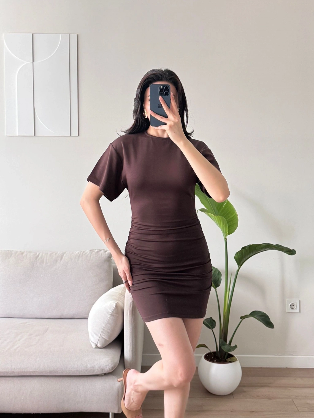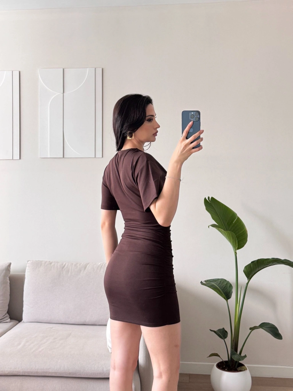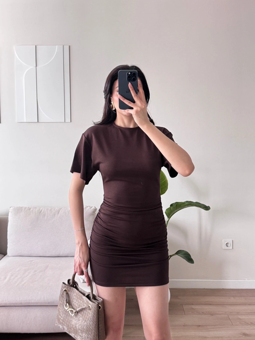 Bisiklet Yaka Modal Elbise - KAHVE