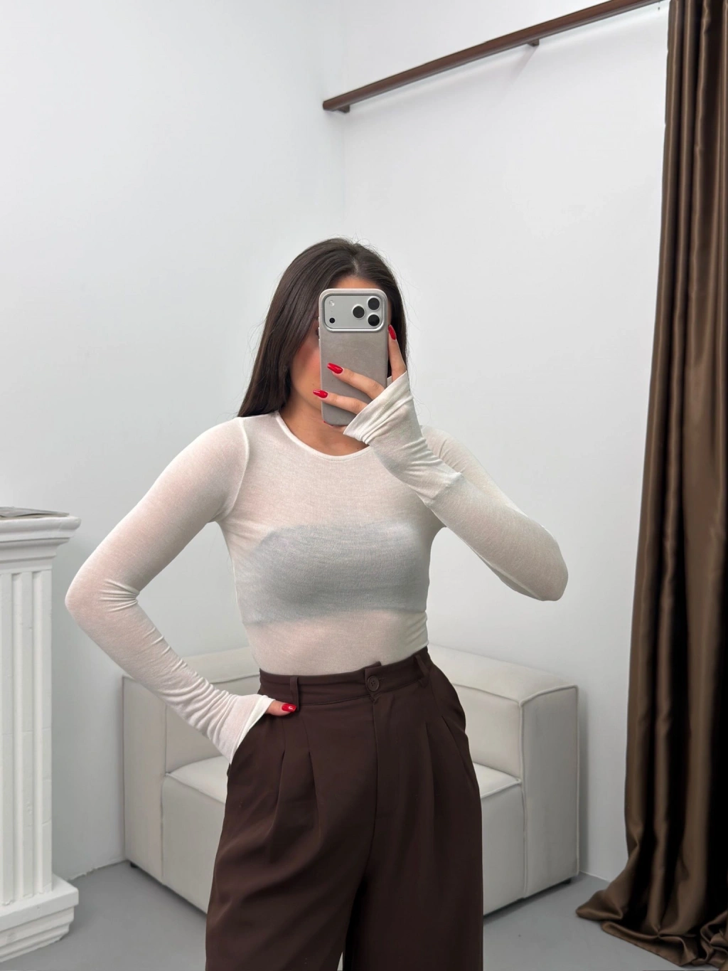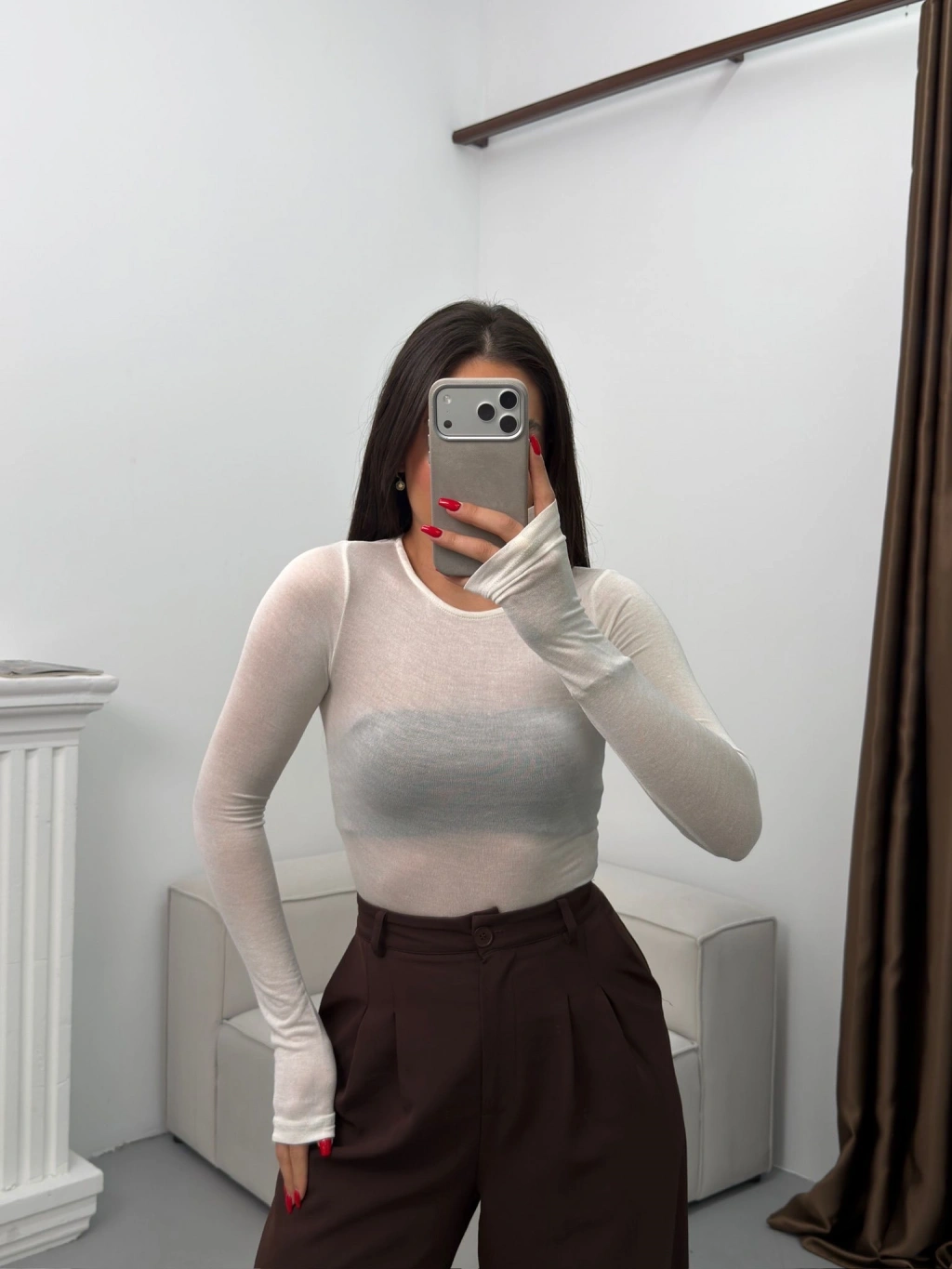 Bisiklet Yaka Transparan Bluz - BEYAZ