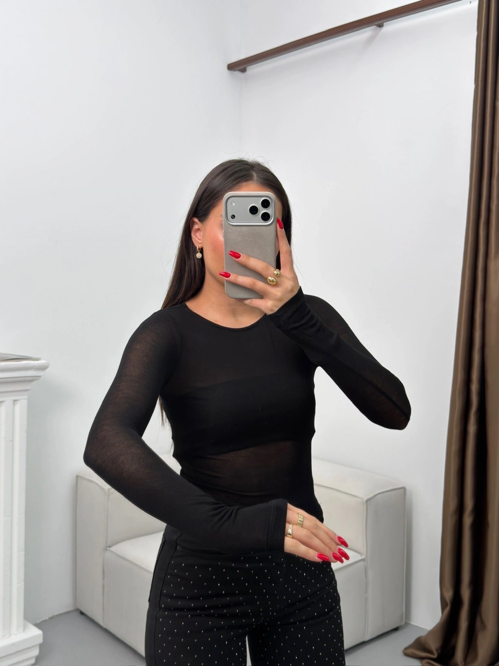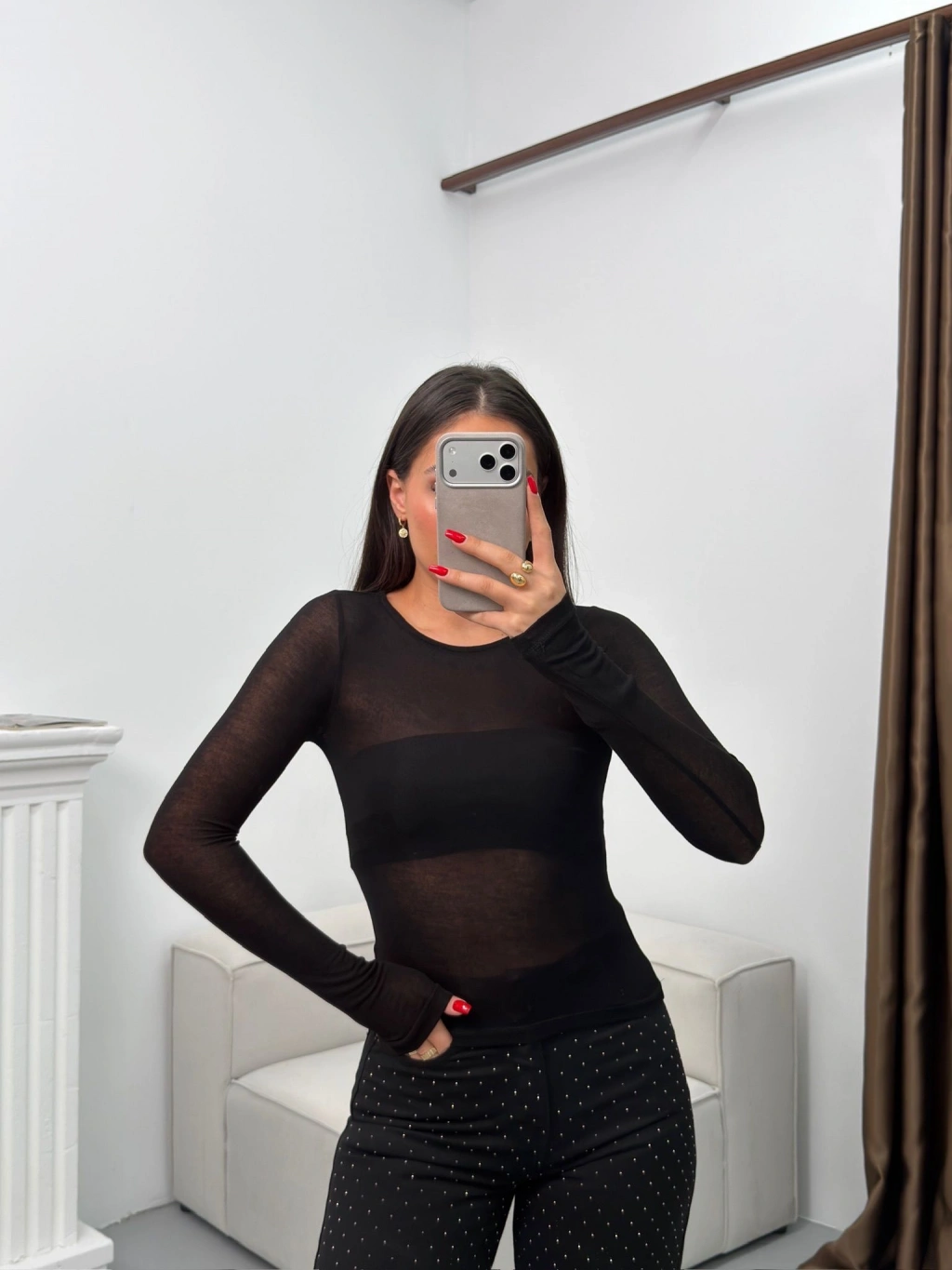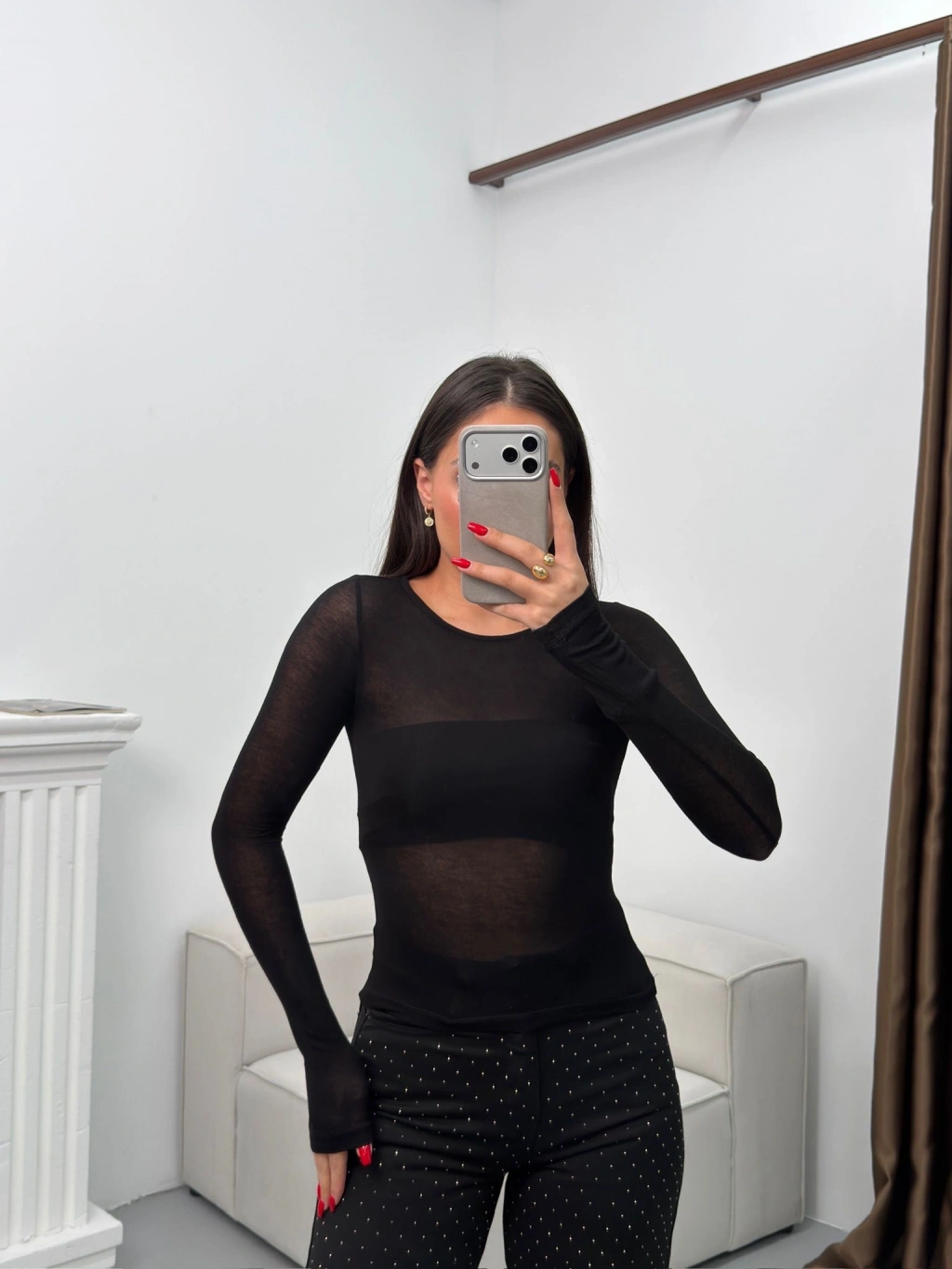 Bisiklet Yaka Transparan Bluz - SİYAH