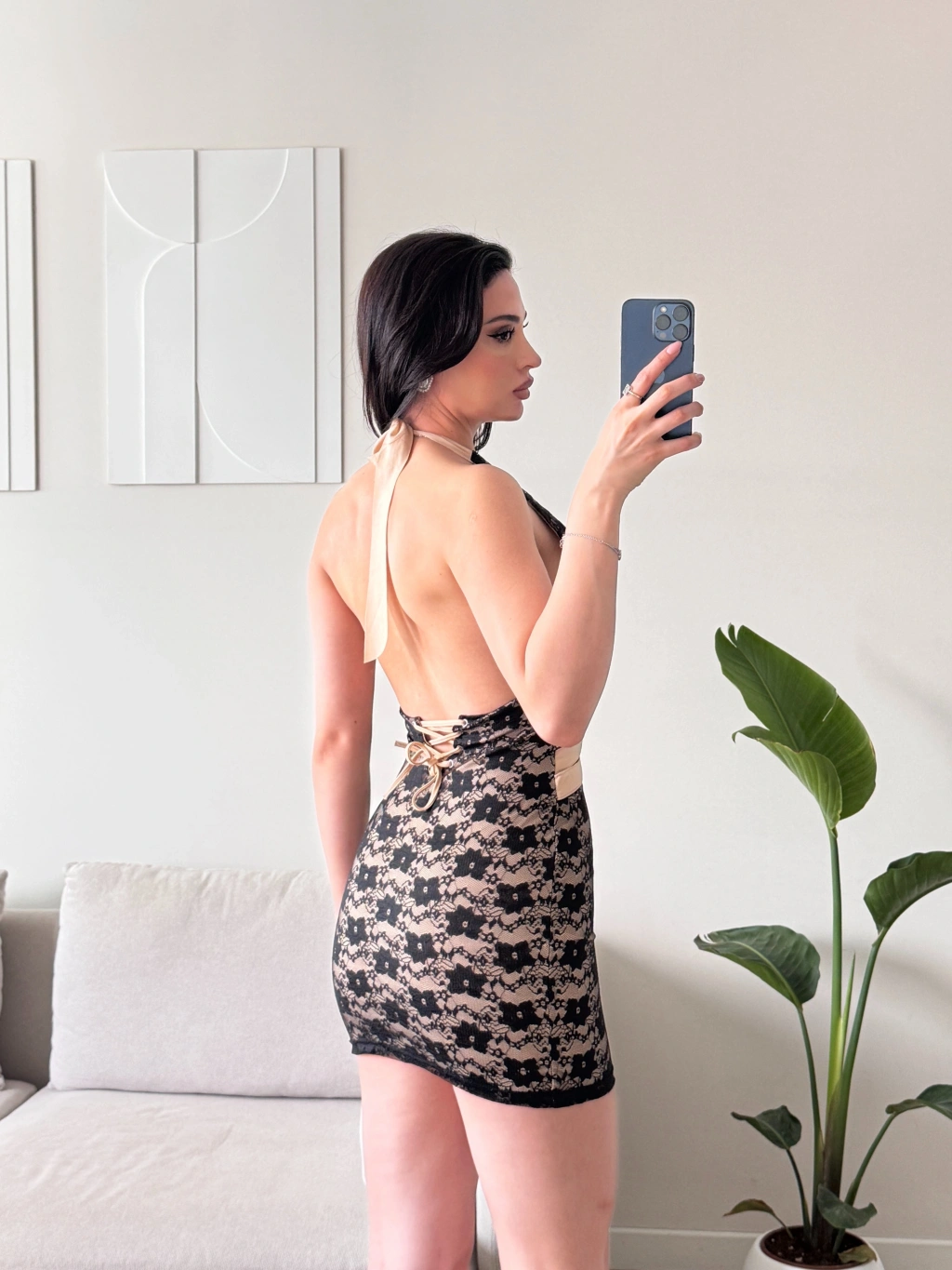 Biyeli Boyun Bağlamalı Elbise - SİYAH