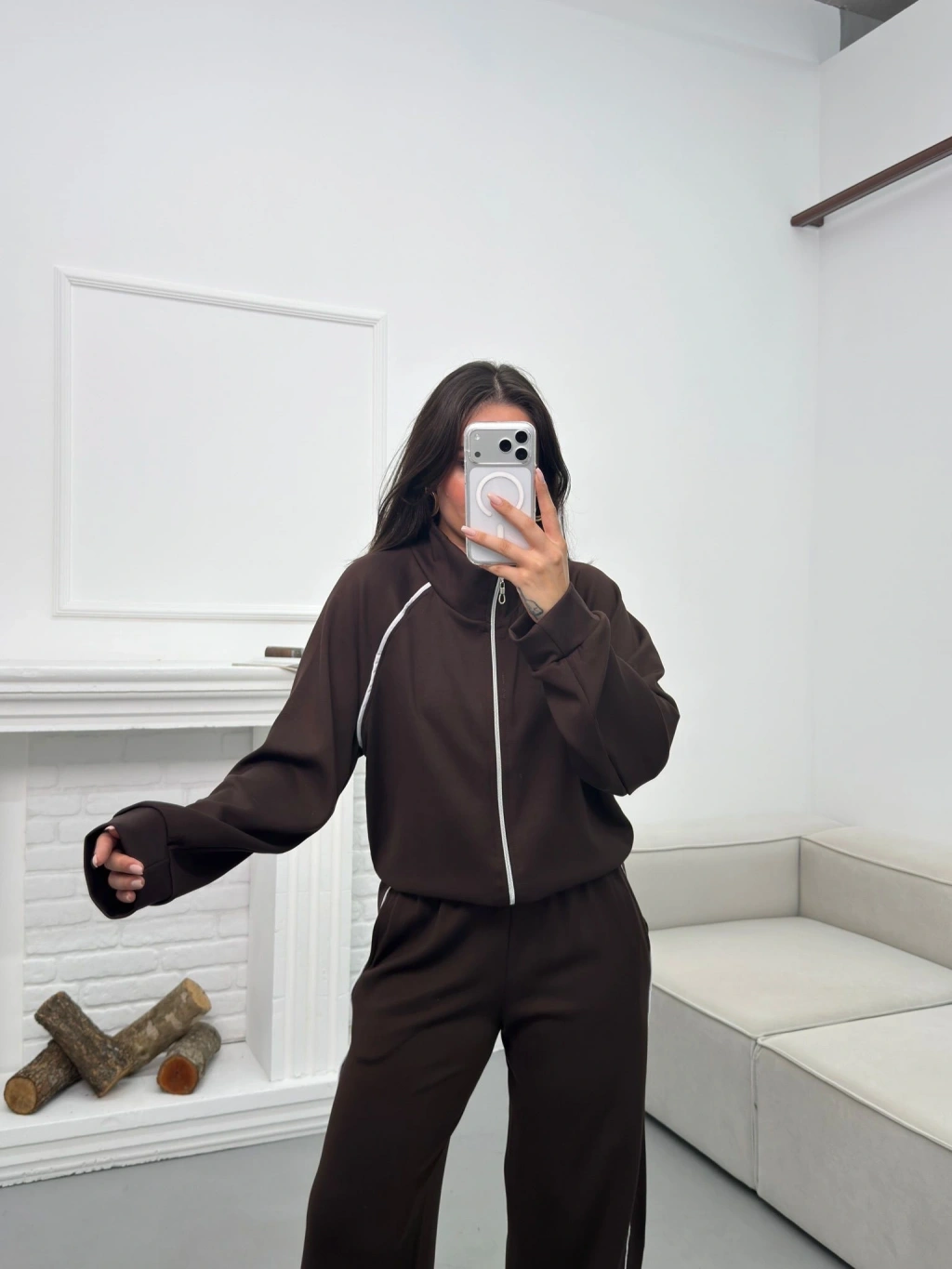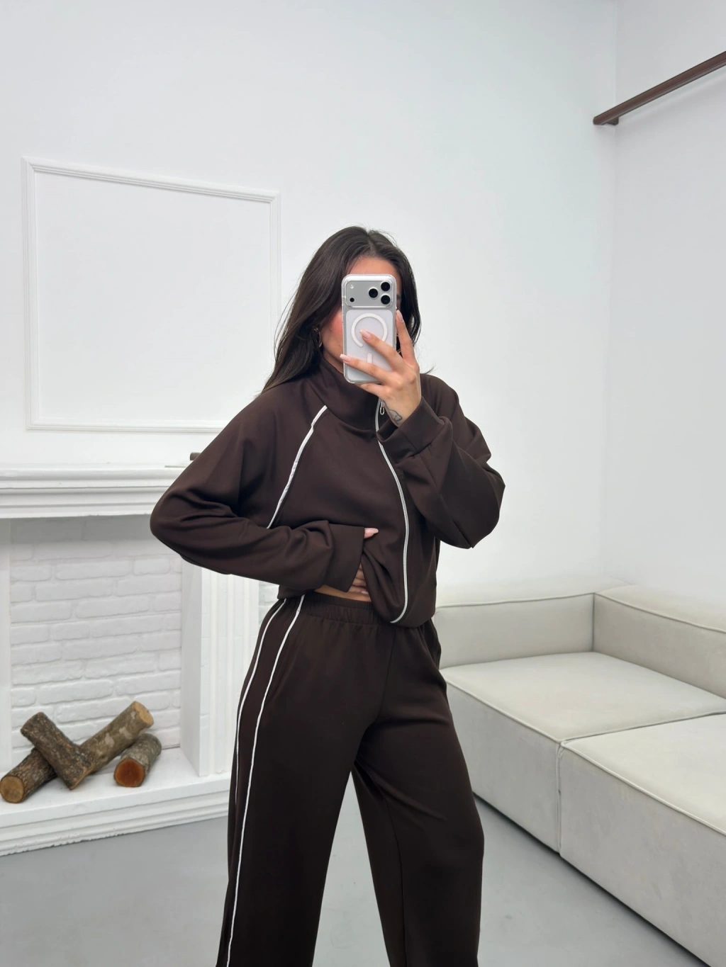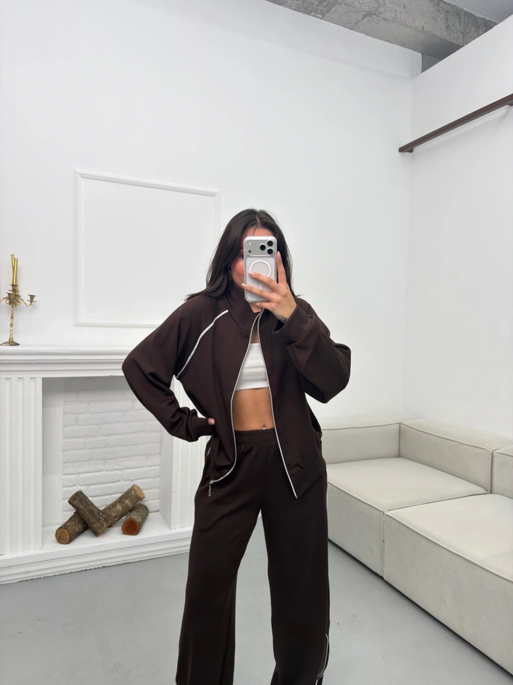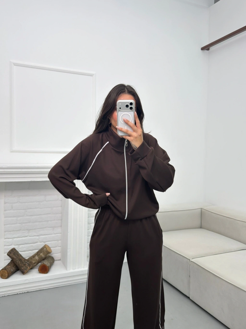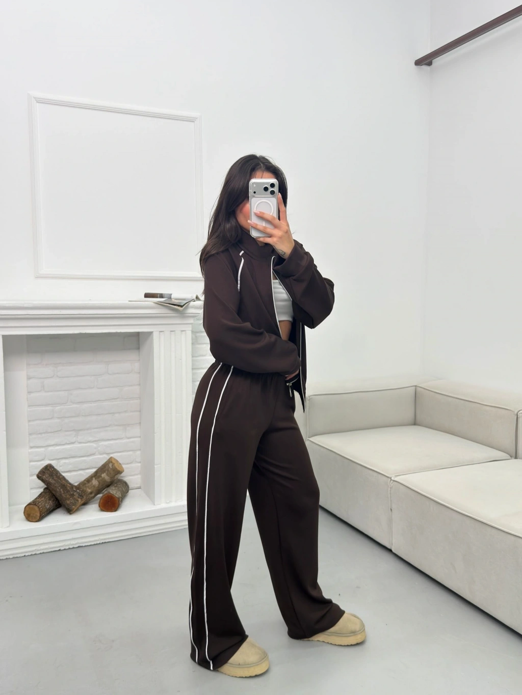 Biyeli Oversize Eşofman Takımı - KAHVE