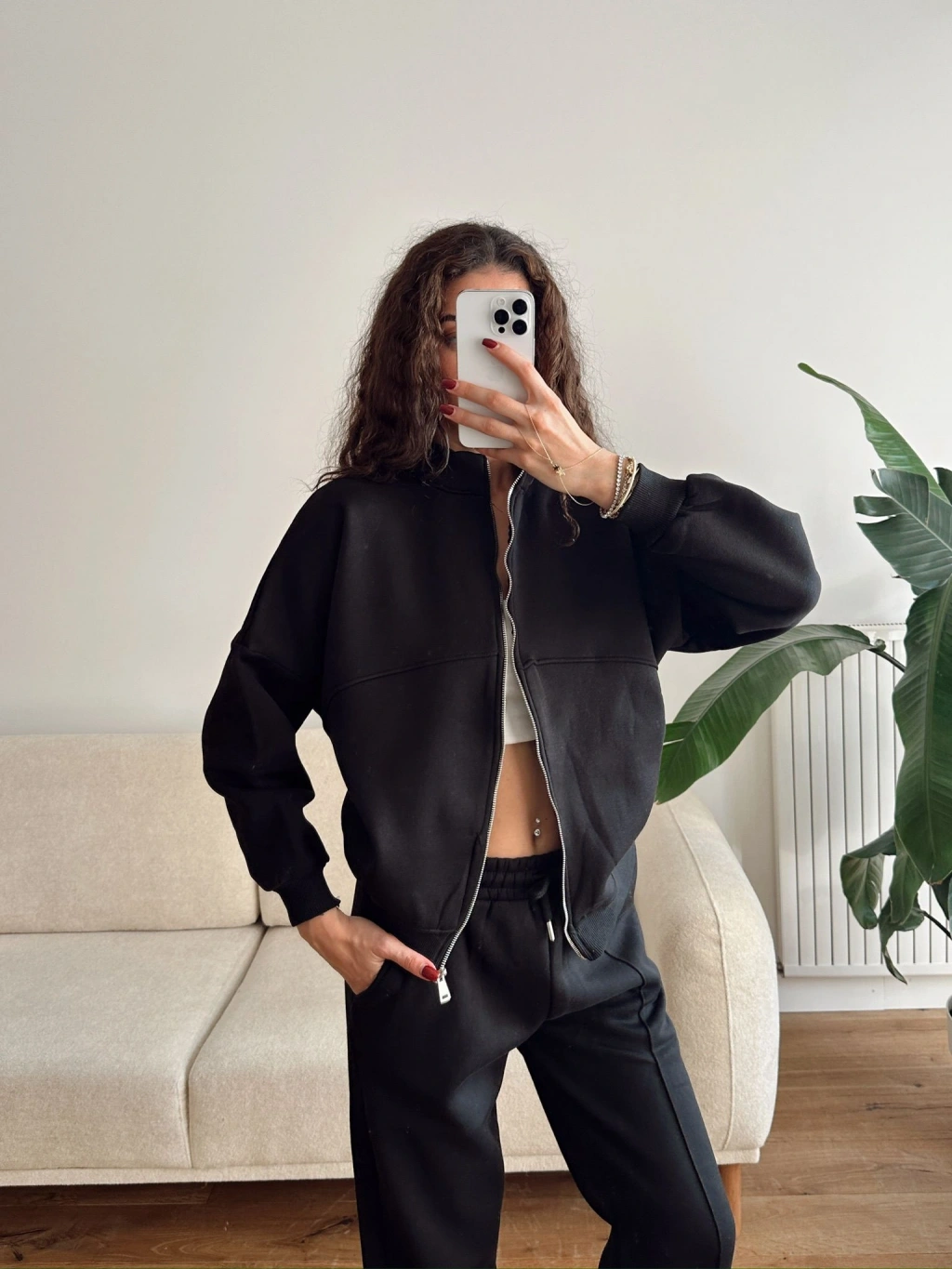 Üç İplik Bİyeli Eşofman Takımı - SİYAH