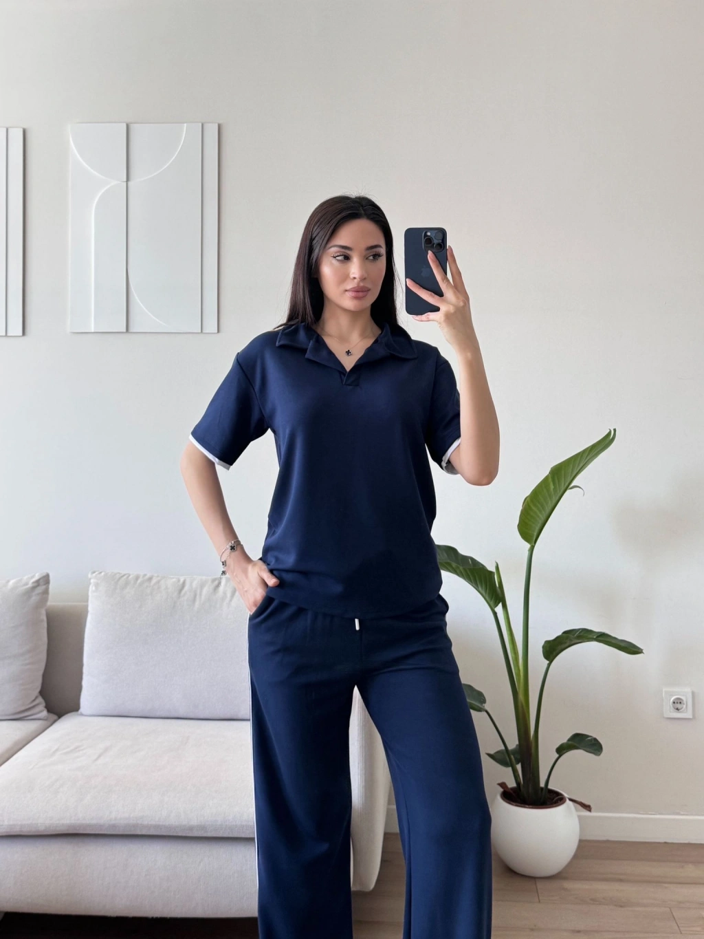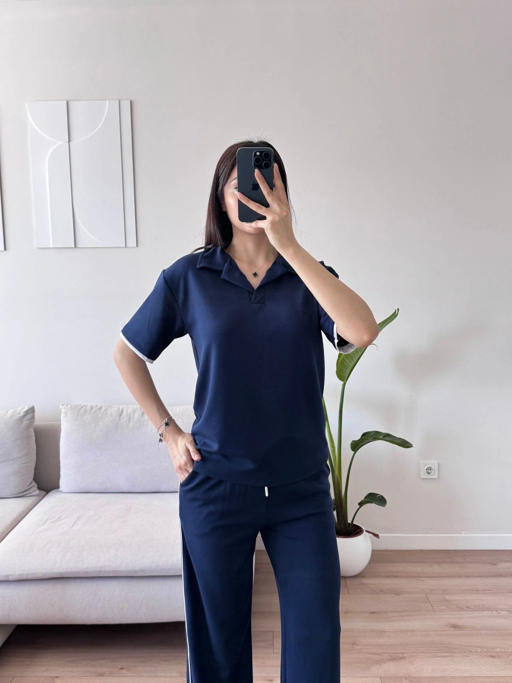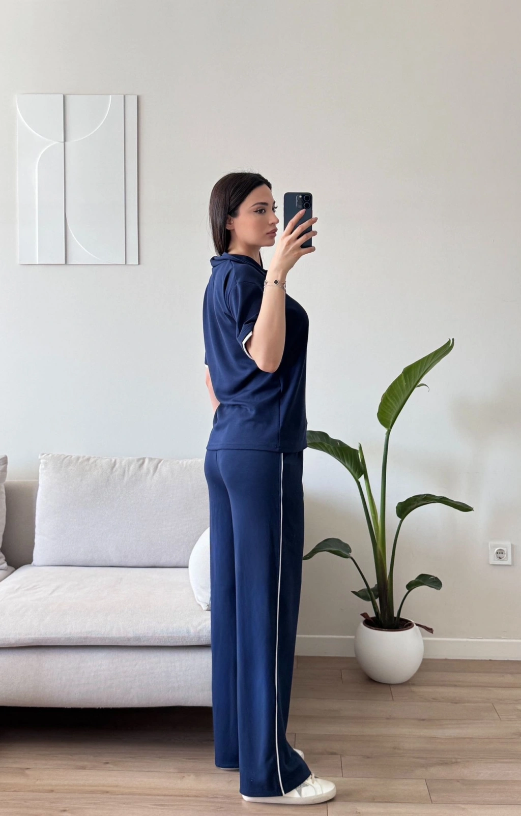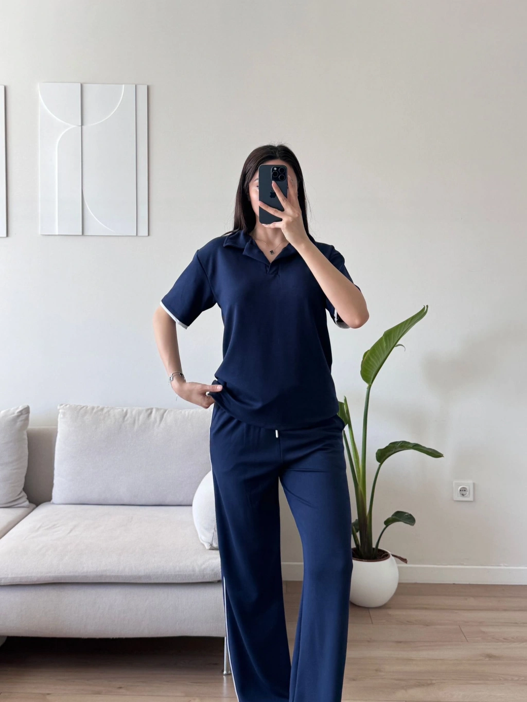 Biyeli Oys Kumaş Takım - LACİVERT