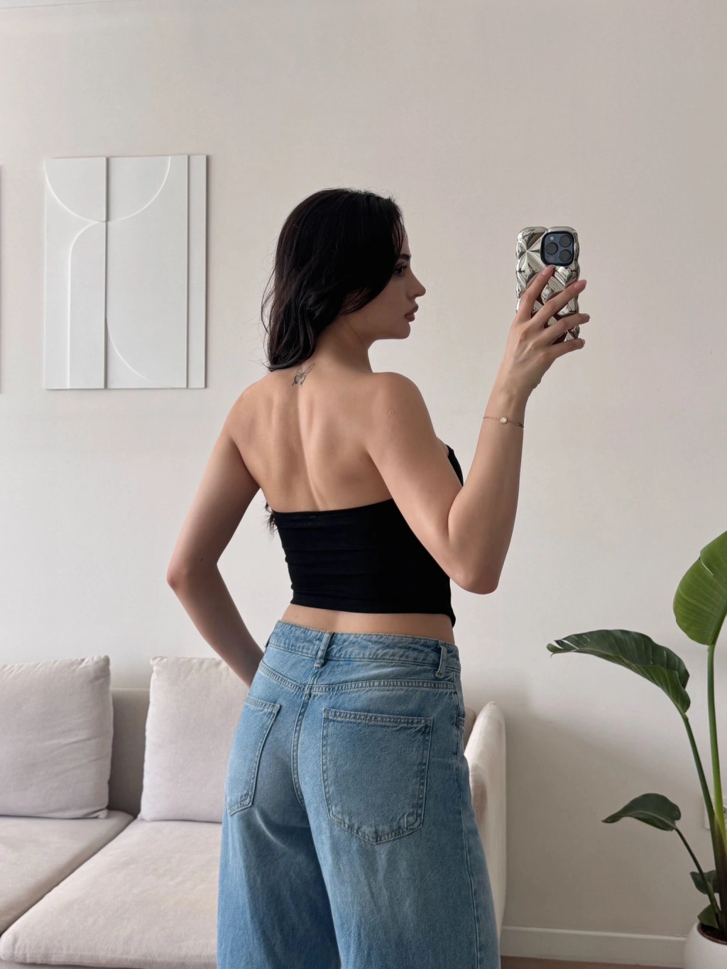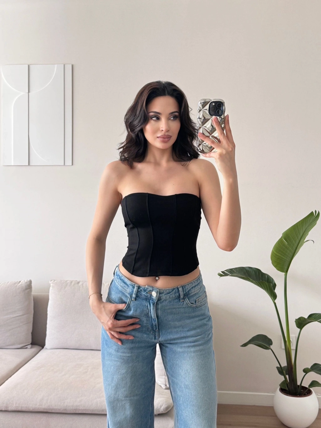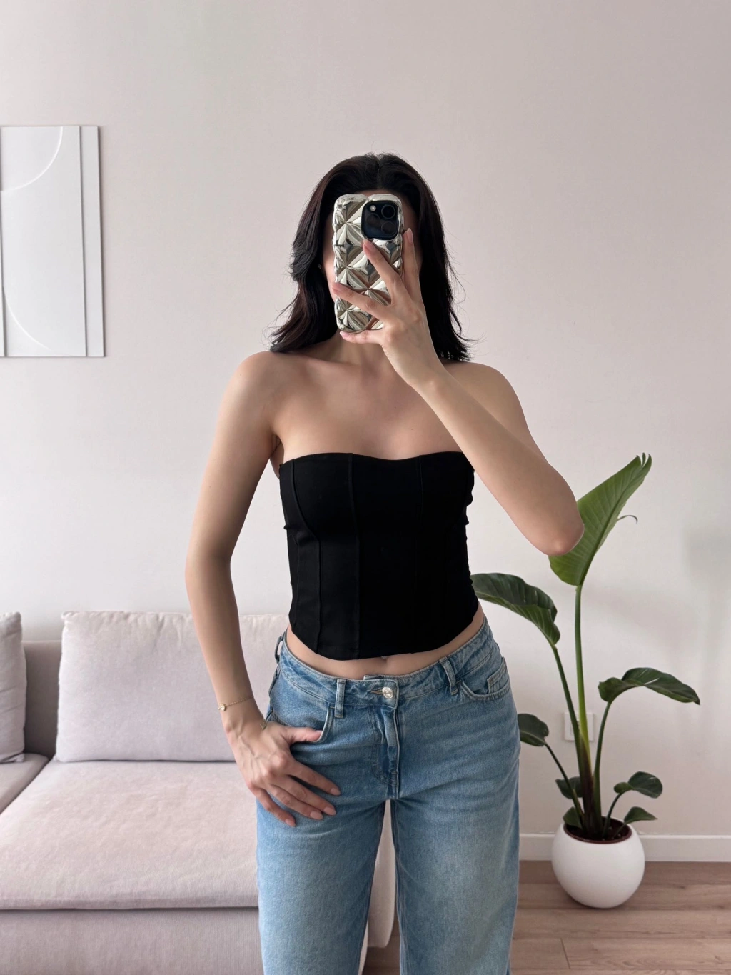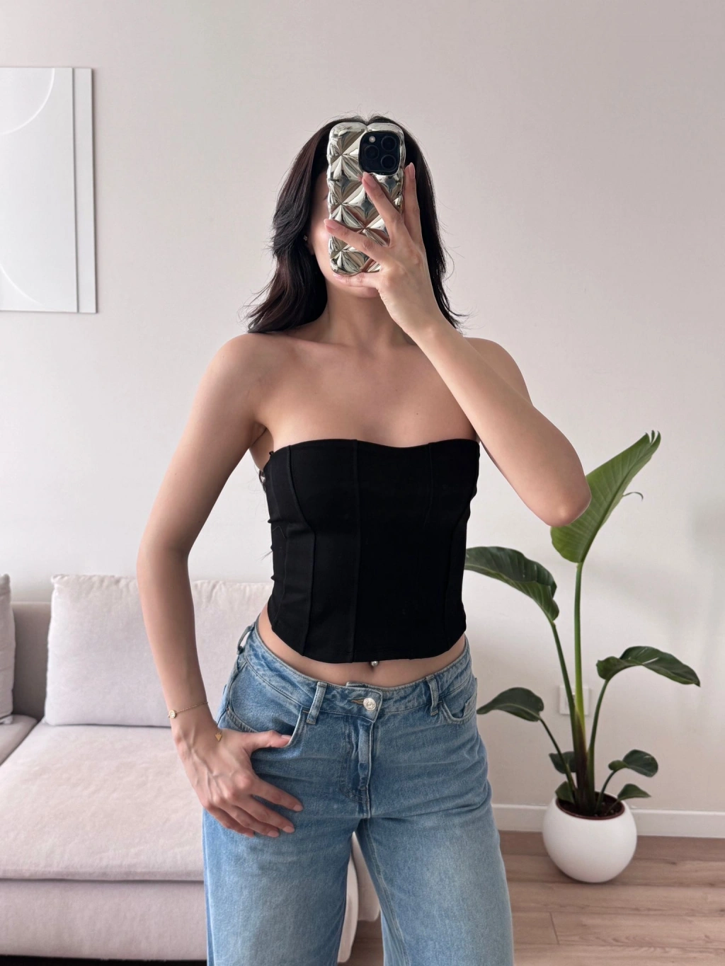 Biyeli Straplez Crop - SİYAH