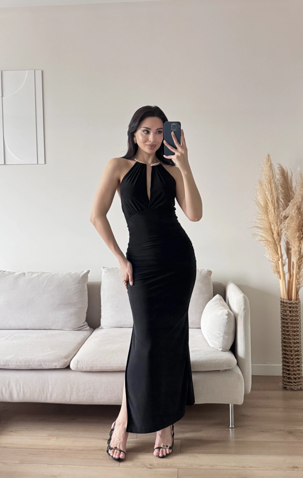 Boyun Aksesuar Degaje Elbise - SİYAH