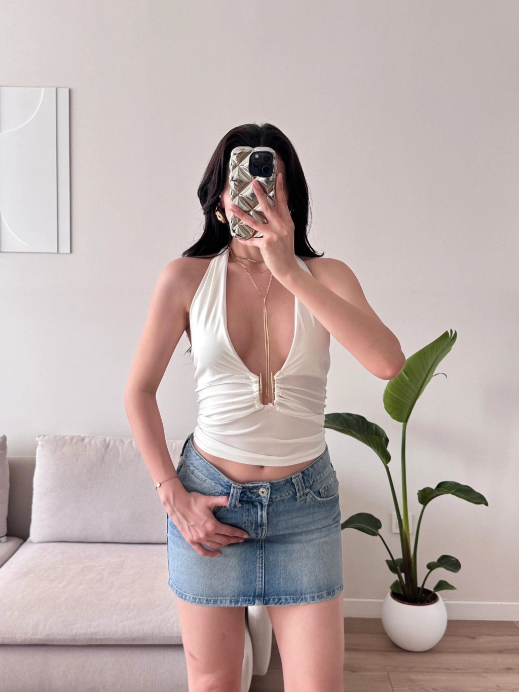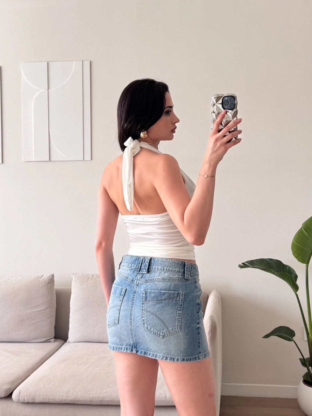 Boyun Bağlamalı Aksesuar Crop - BEYAZ