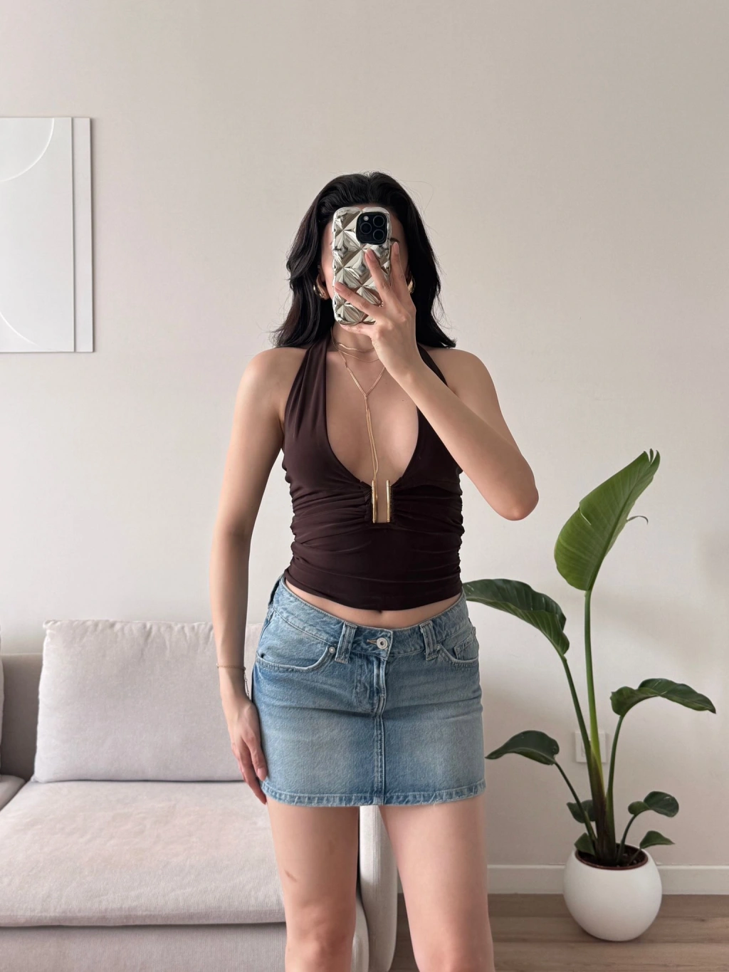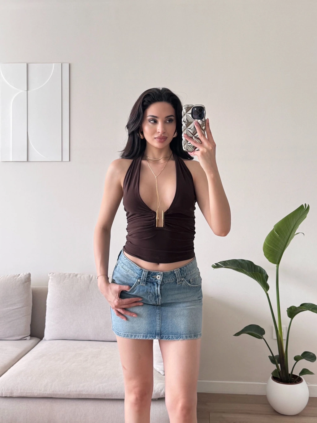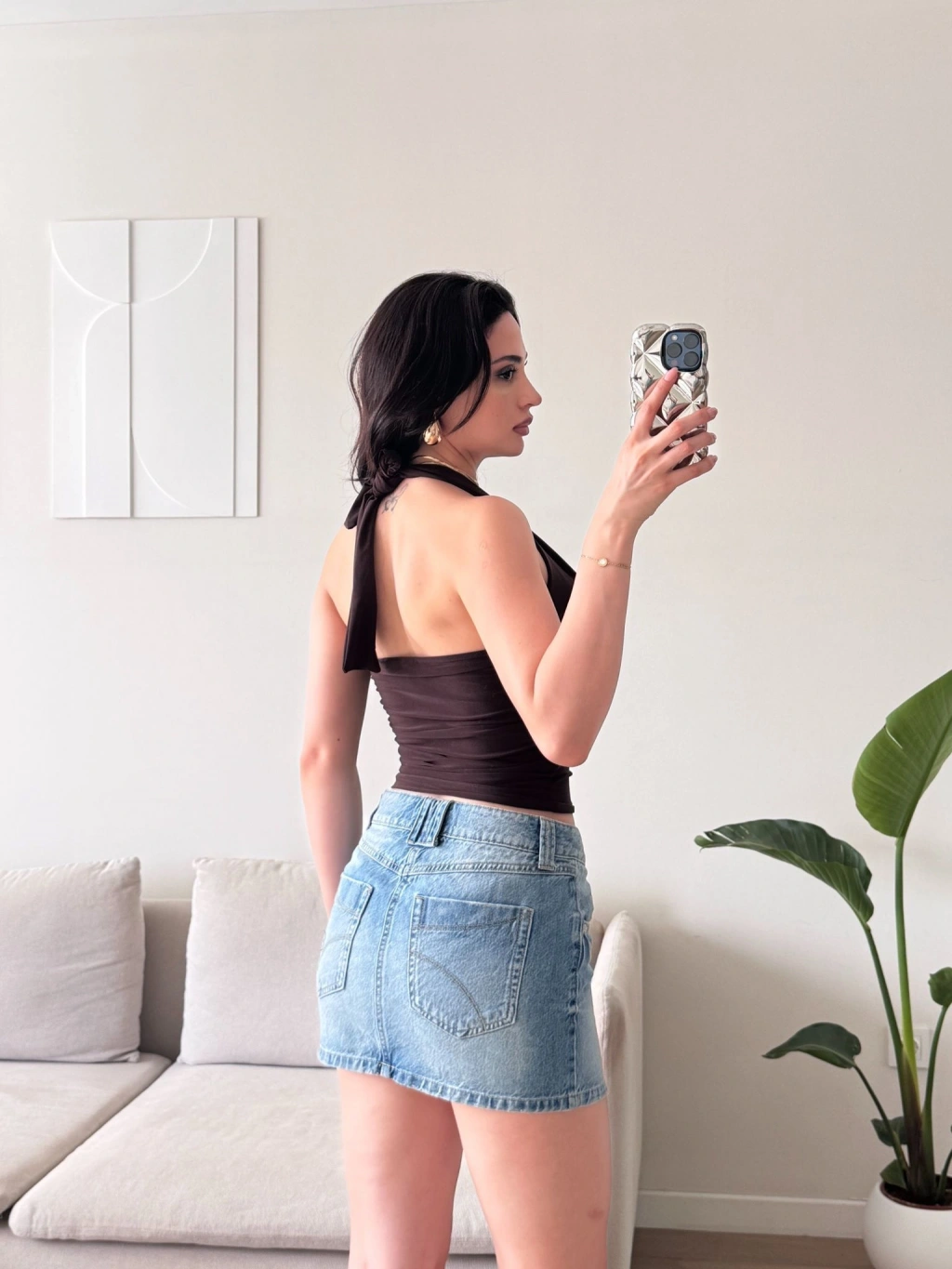 Boyun Bağlamalı Aksesuar Crop - KAHVE