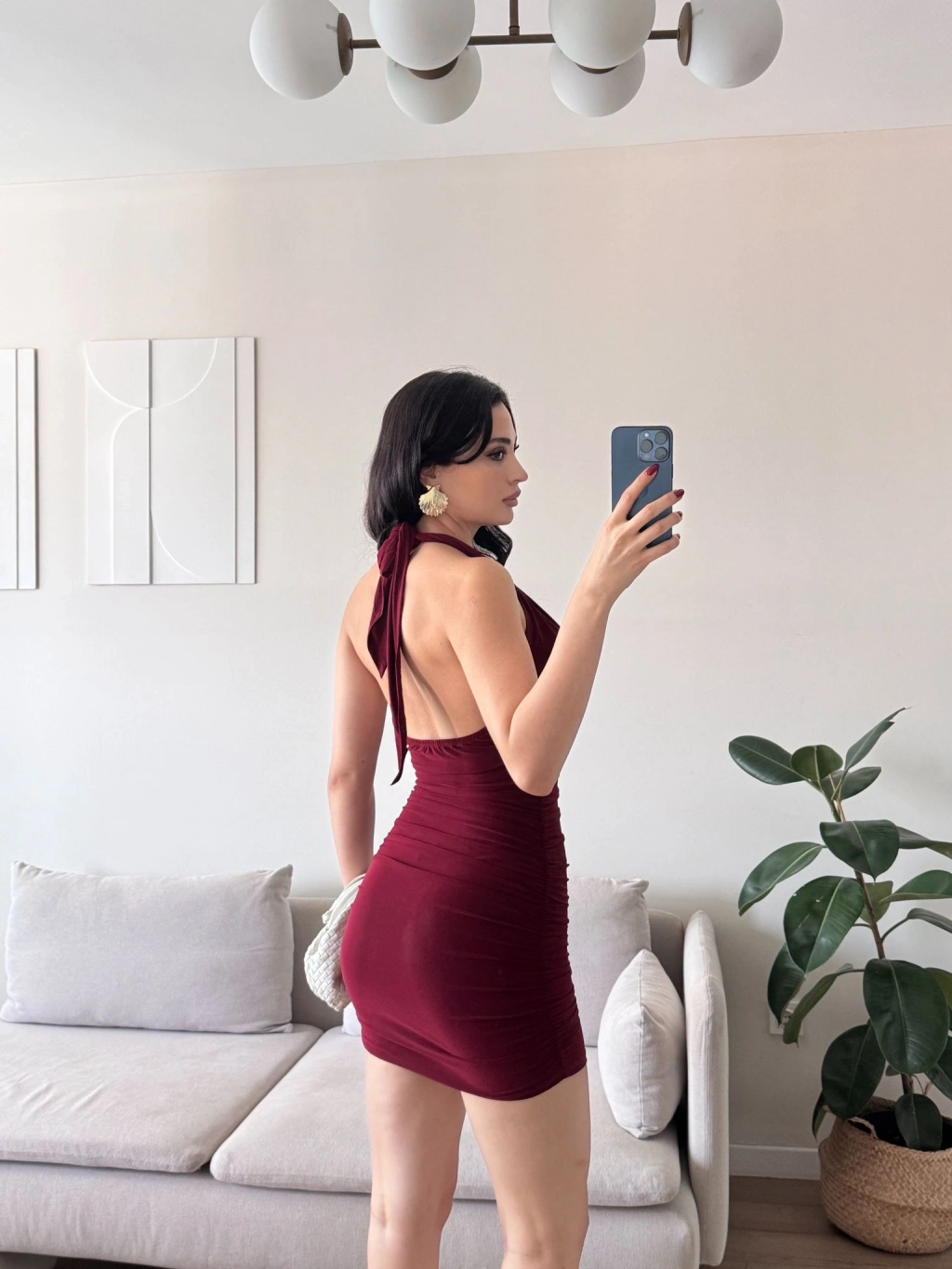 Boyun Bağlamalı Tokalı Elbise - BORDO