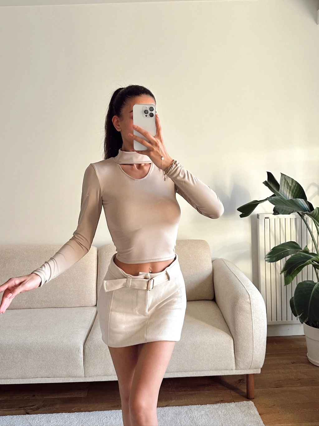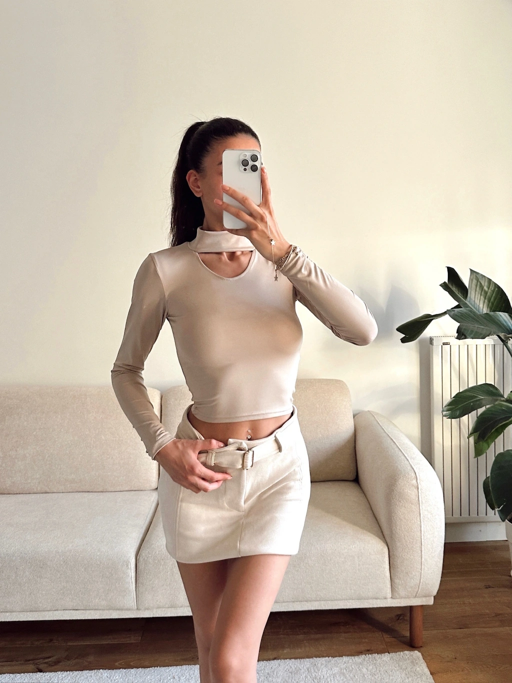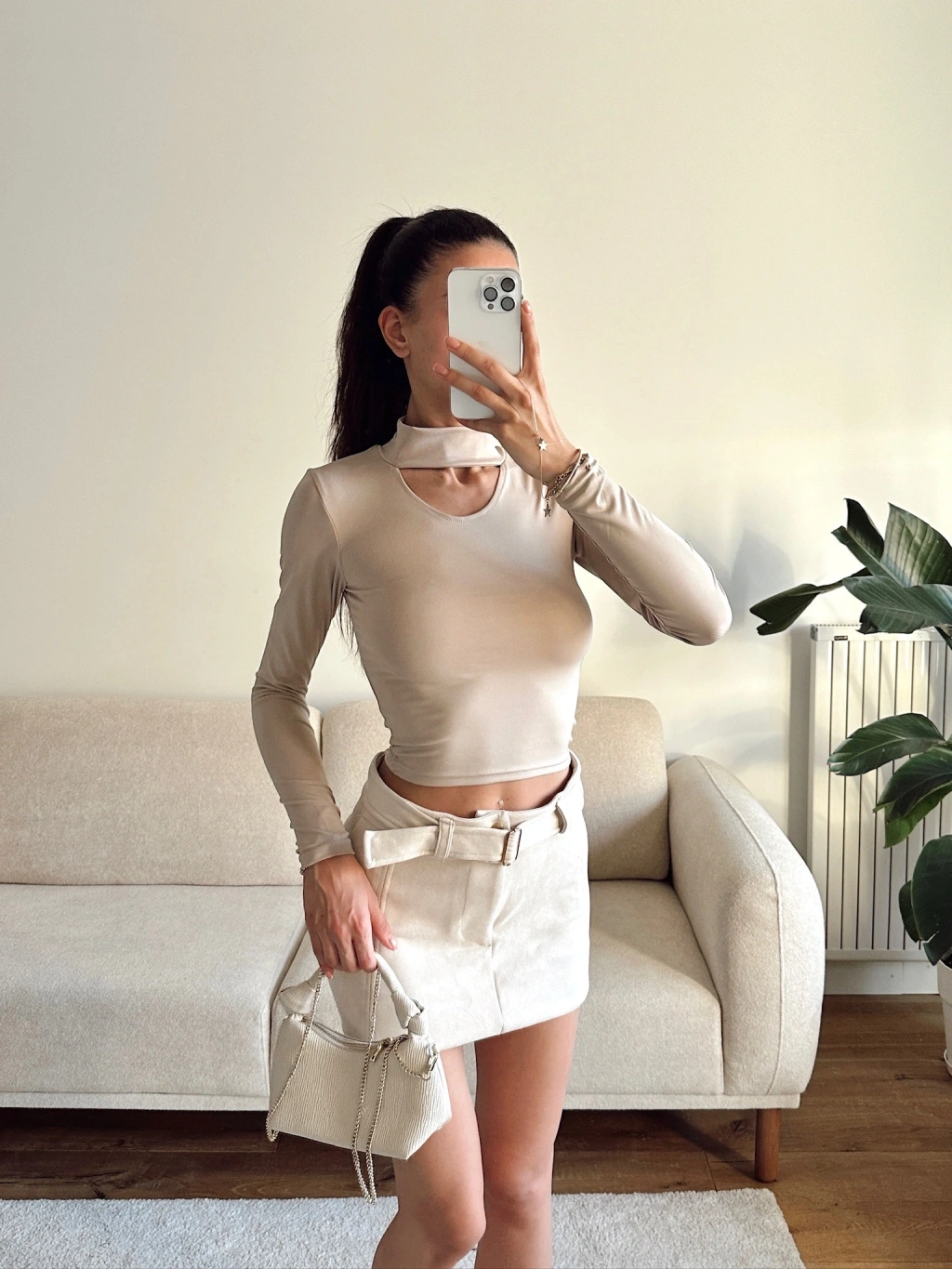 Choker Yaka Crop Bluz - BEJ