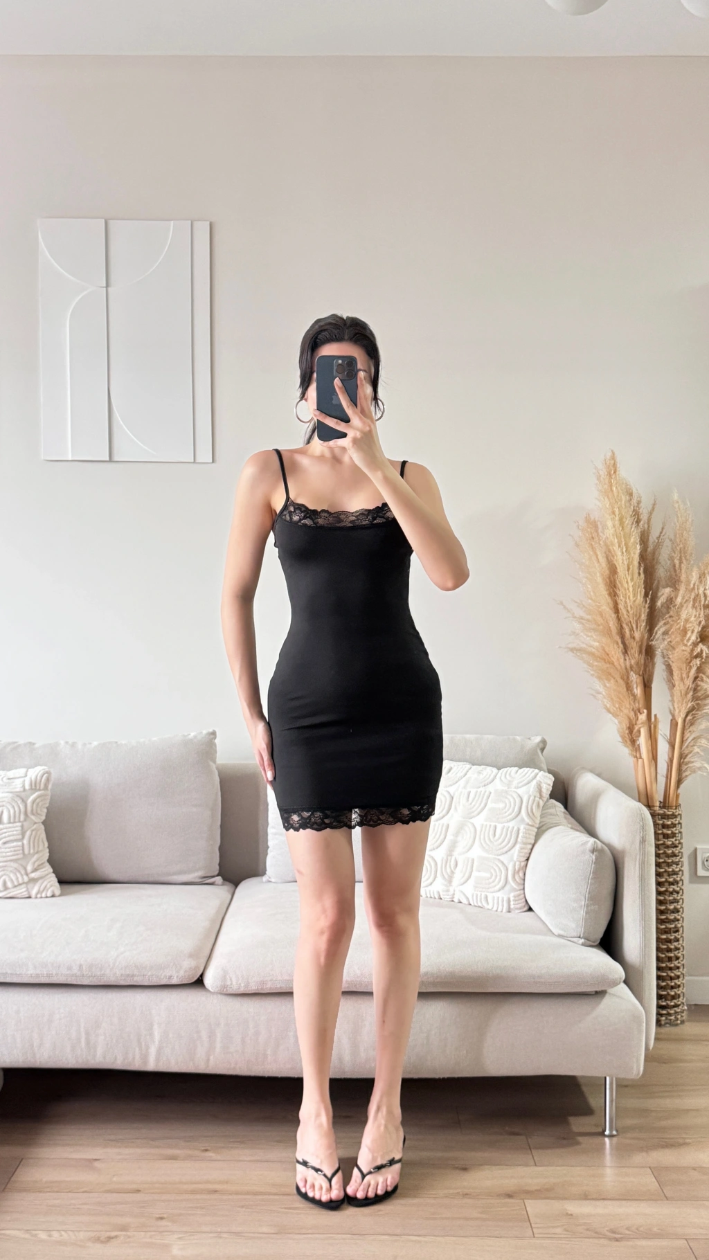 Dantel Detaylı Askılı Elbise - SİYAH