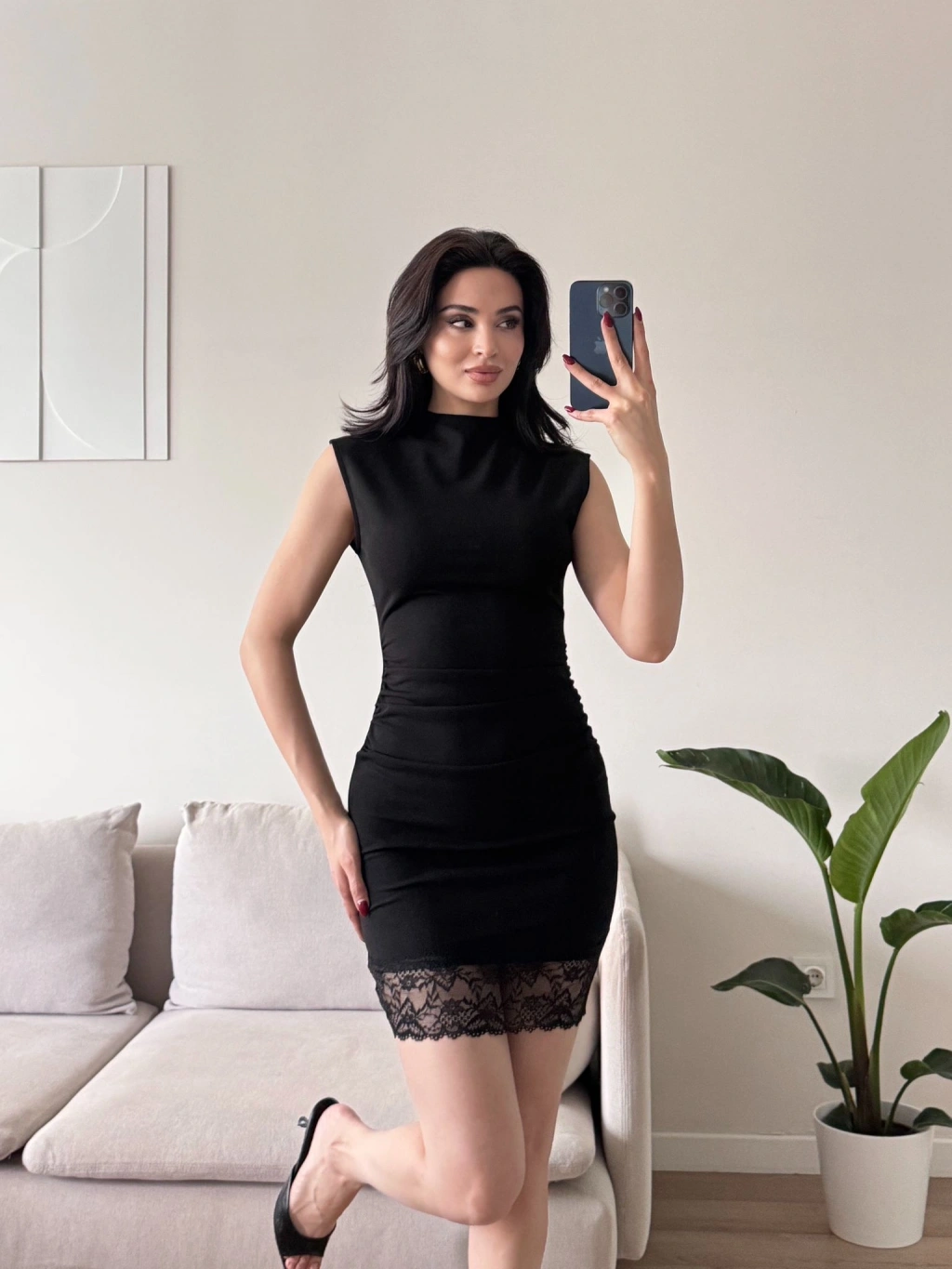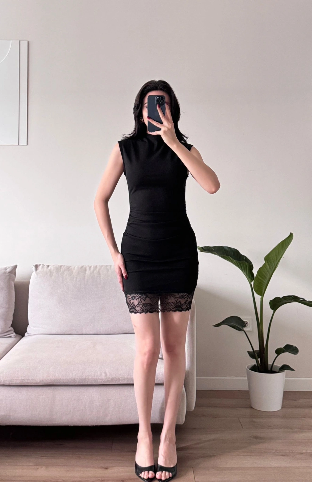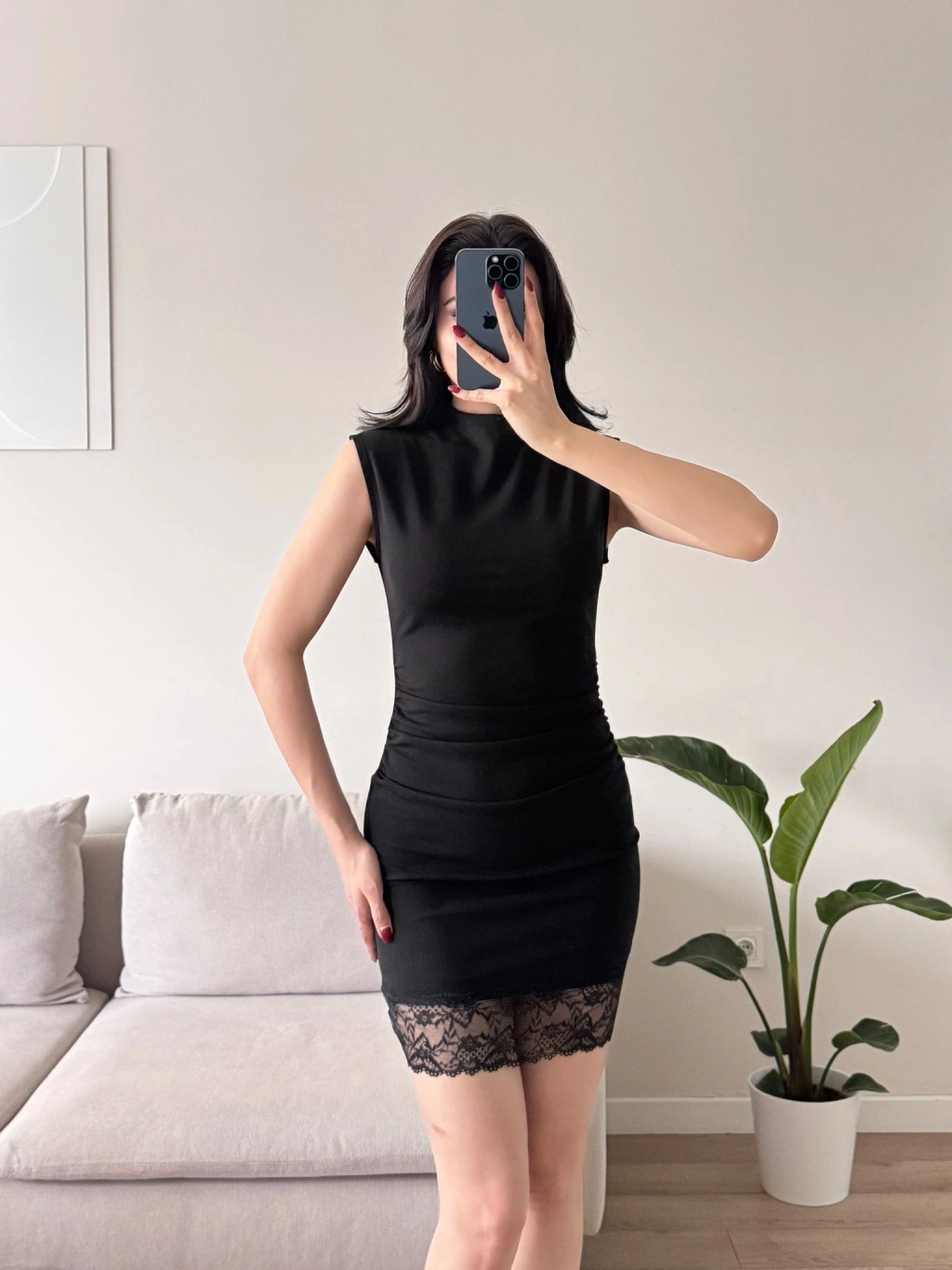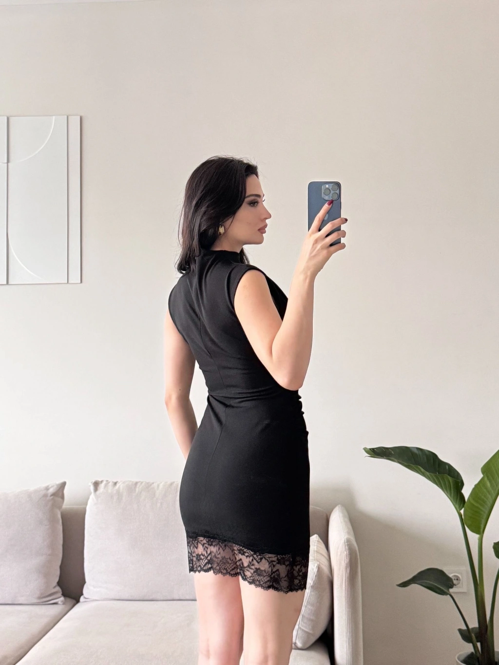 Dantel Detaylı Sırt Fermuar Mini Elbise - SİYAH