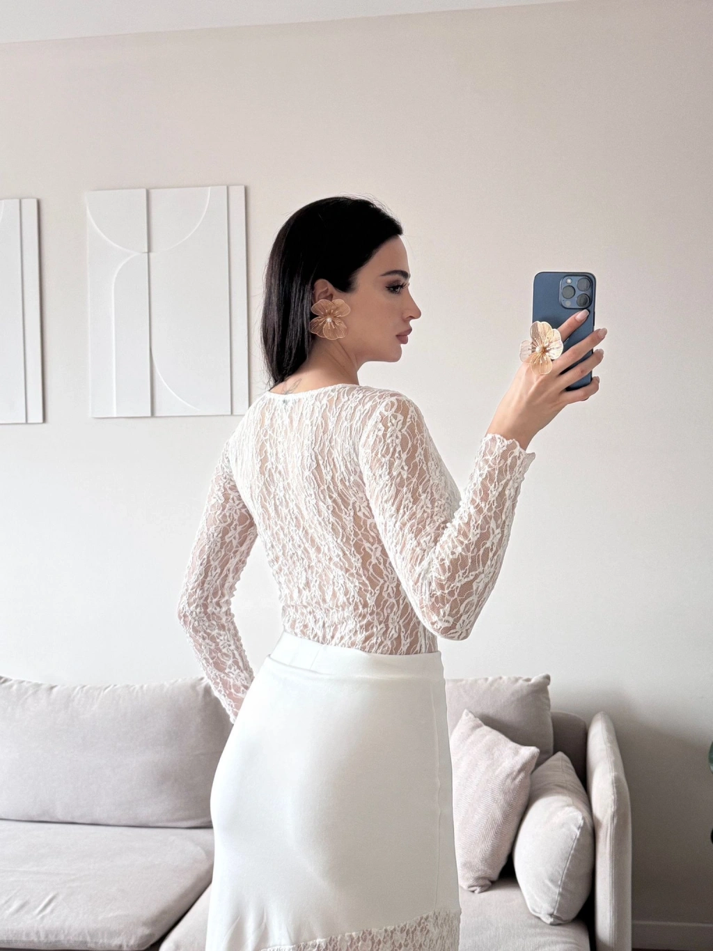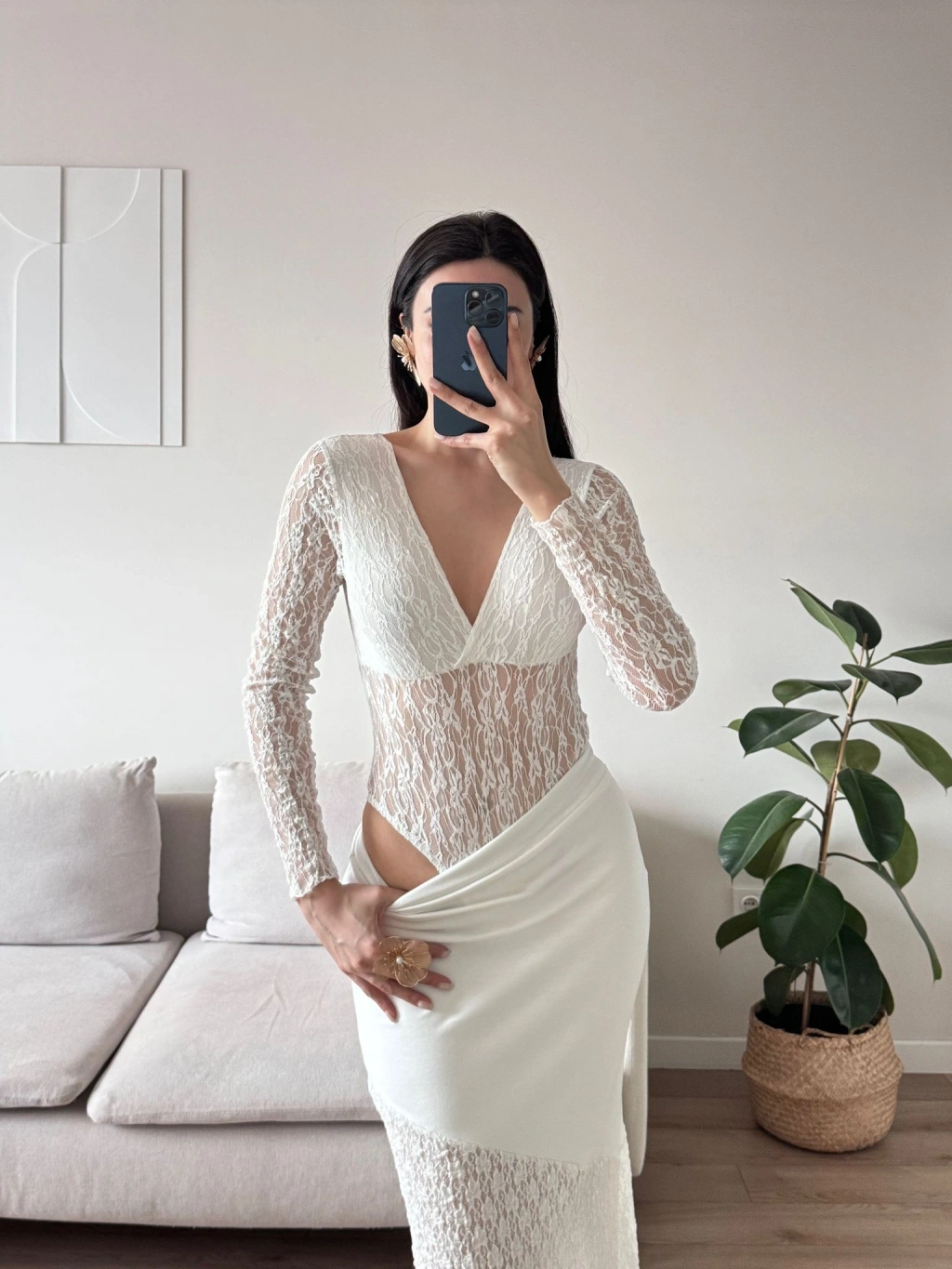Dantel V Yaka Bodysuit - BEYAZ