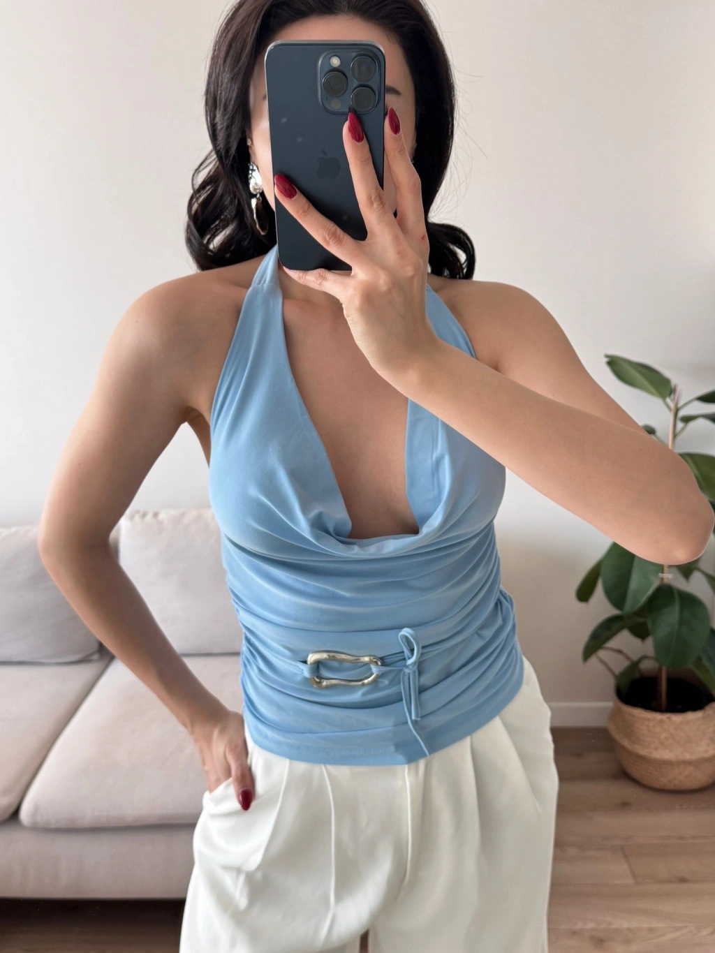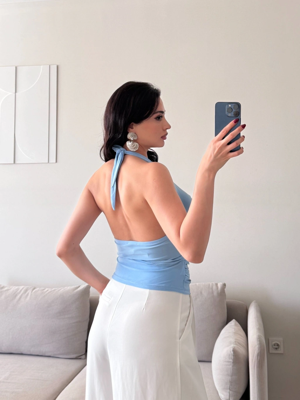 Degaje Yaka Aksesuar Crop - MAVİ