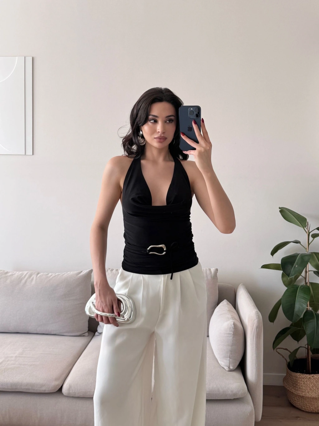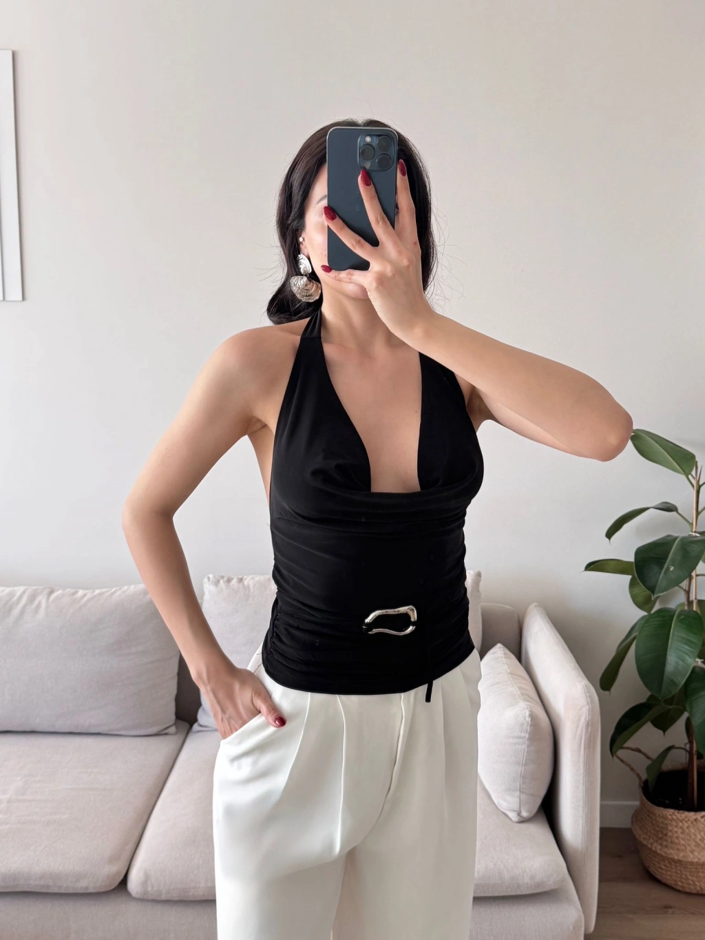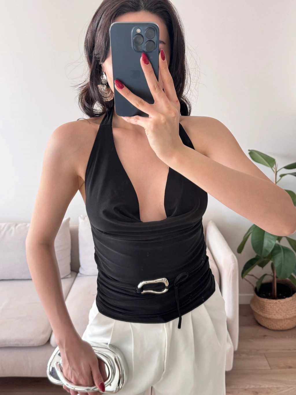 Degaje Yaka Aksesuar Crop - SİYAH