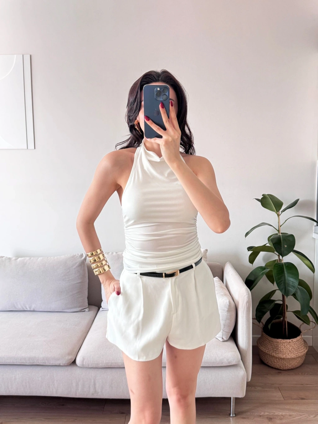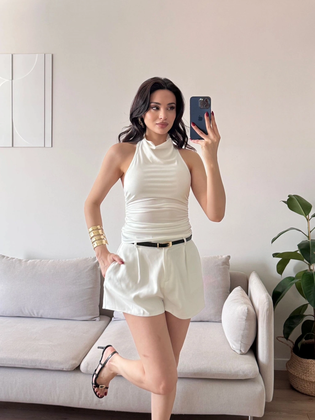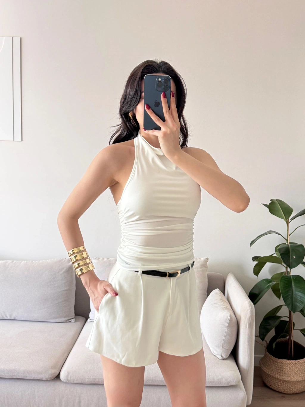 Degaje Yaka Bluz - BEYAZ