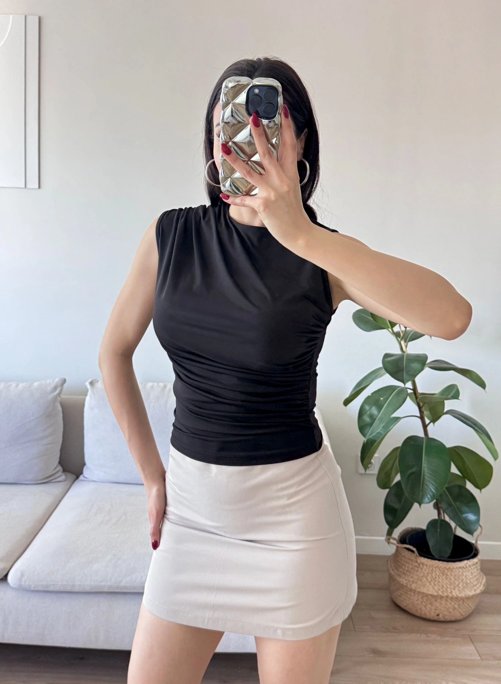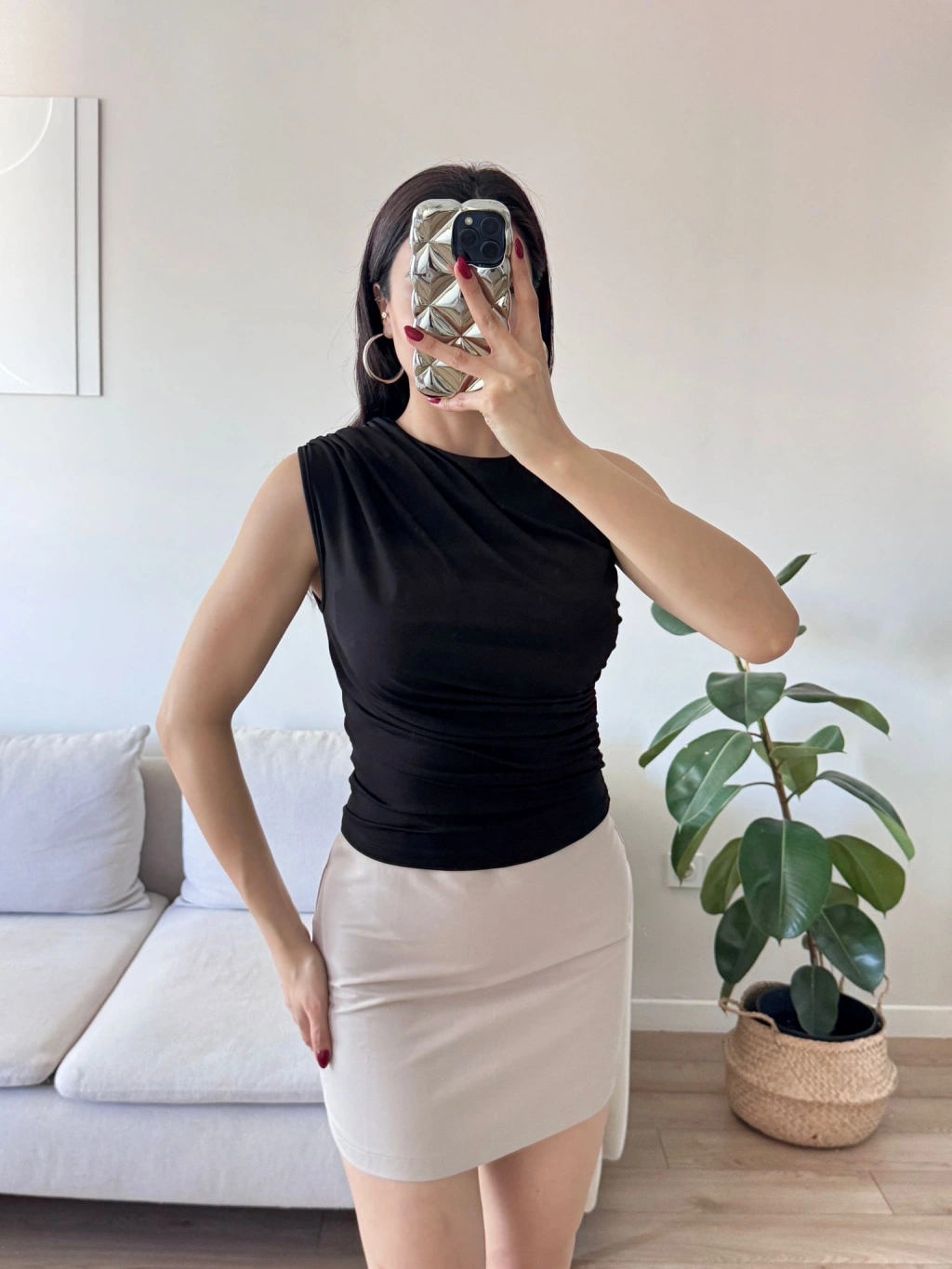 Drapeli Kolsuz Bluz - SİYAH