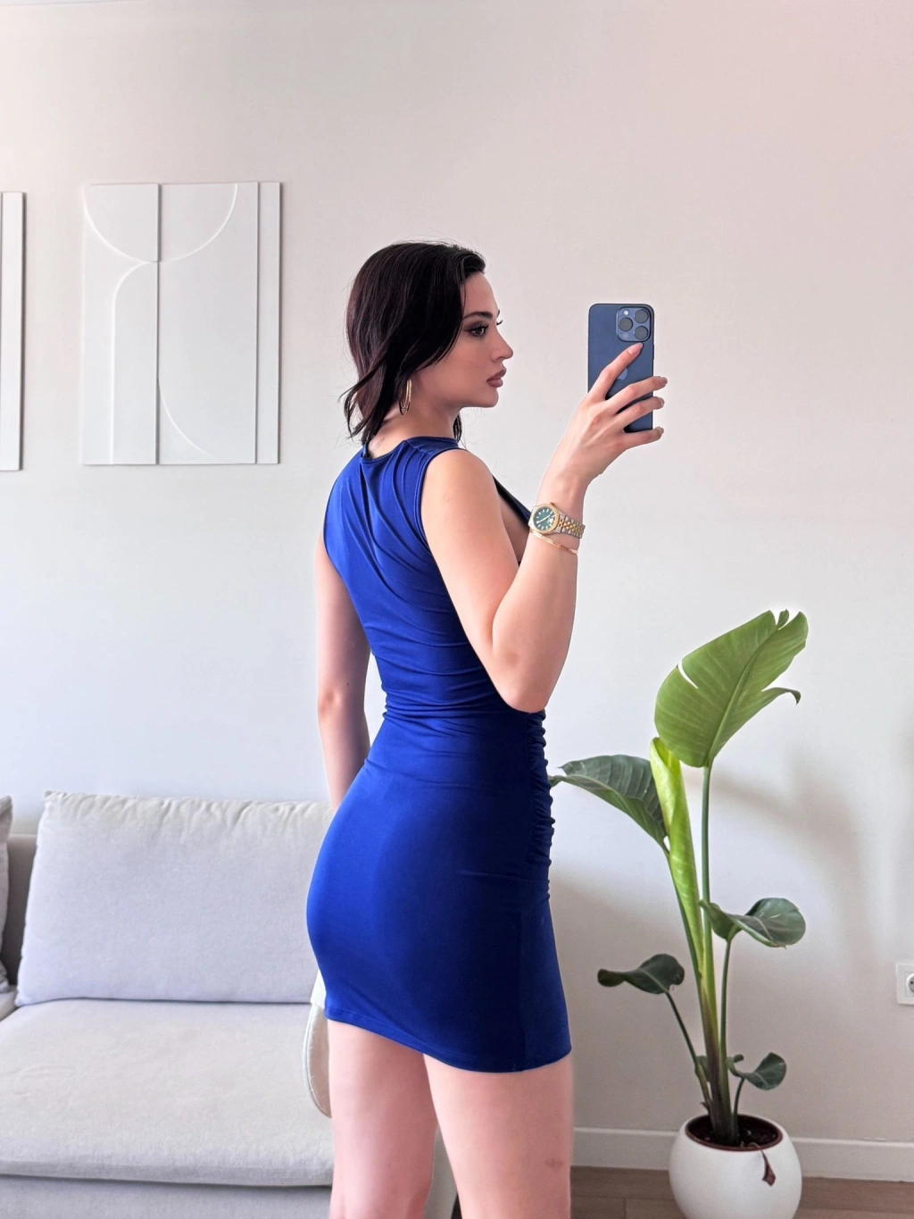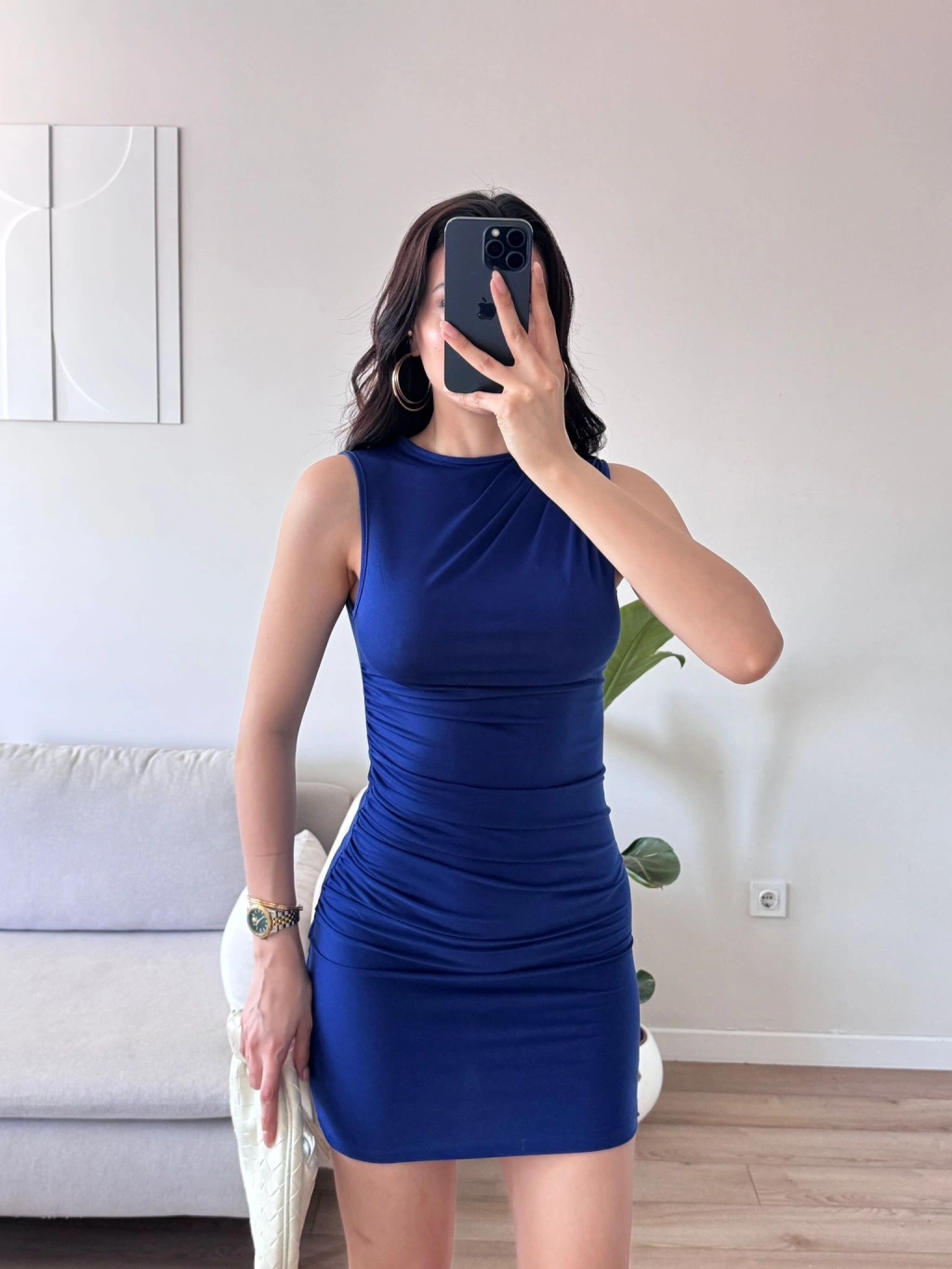 Drapeli Mini Elbise - SAKS MAVİSİ