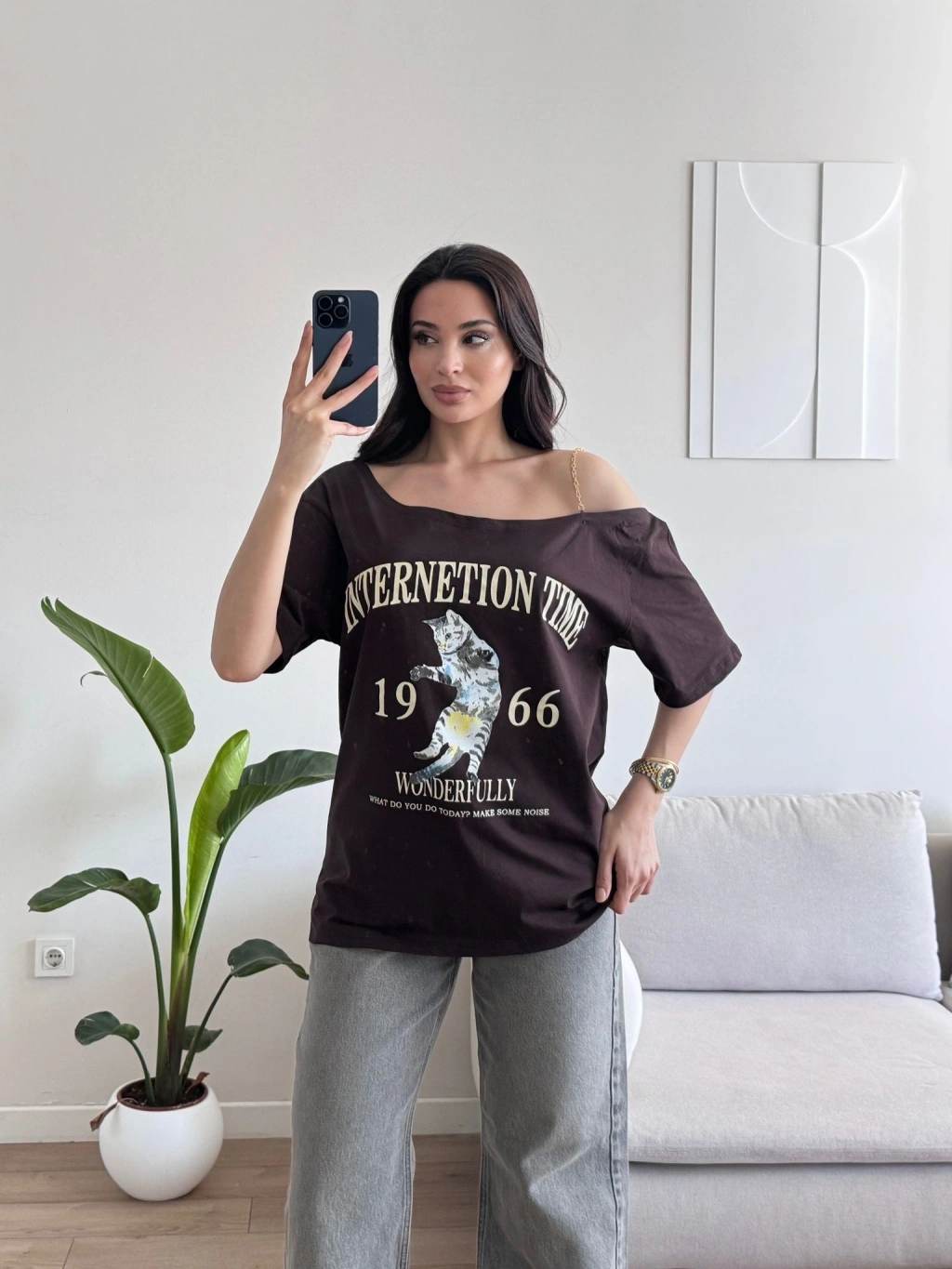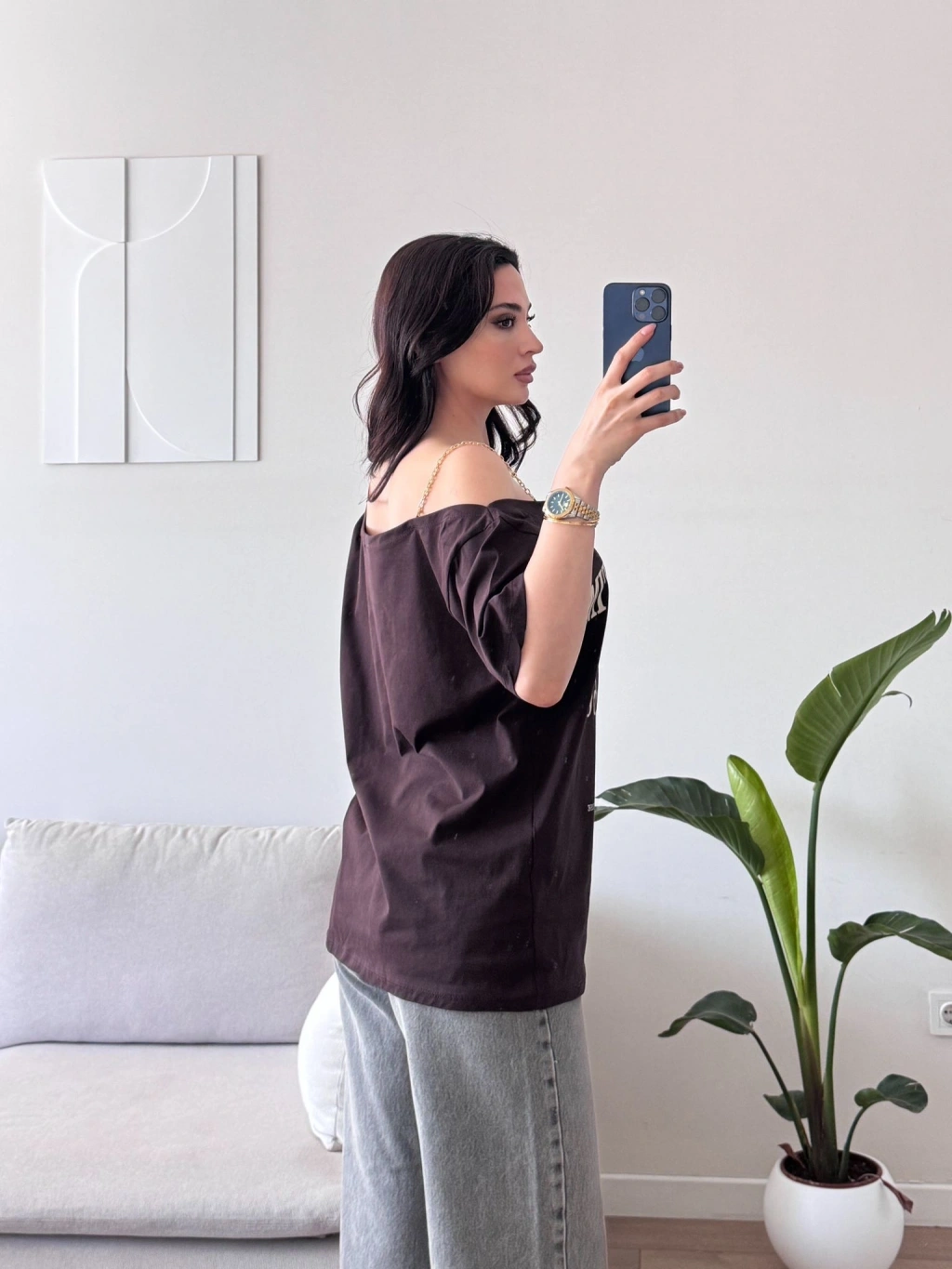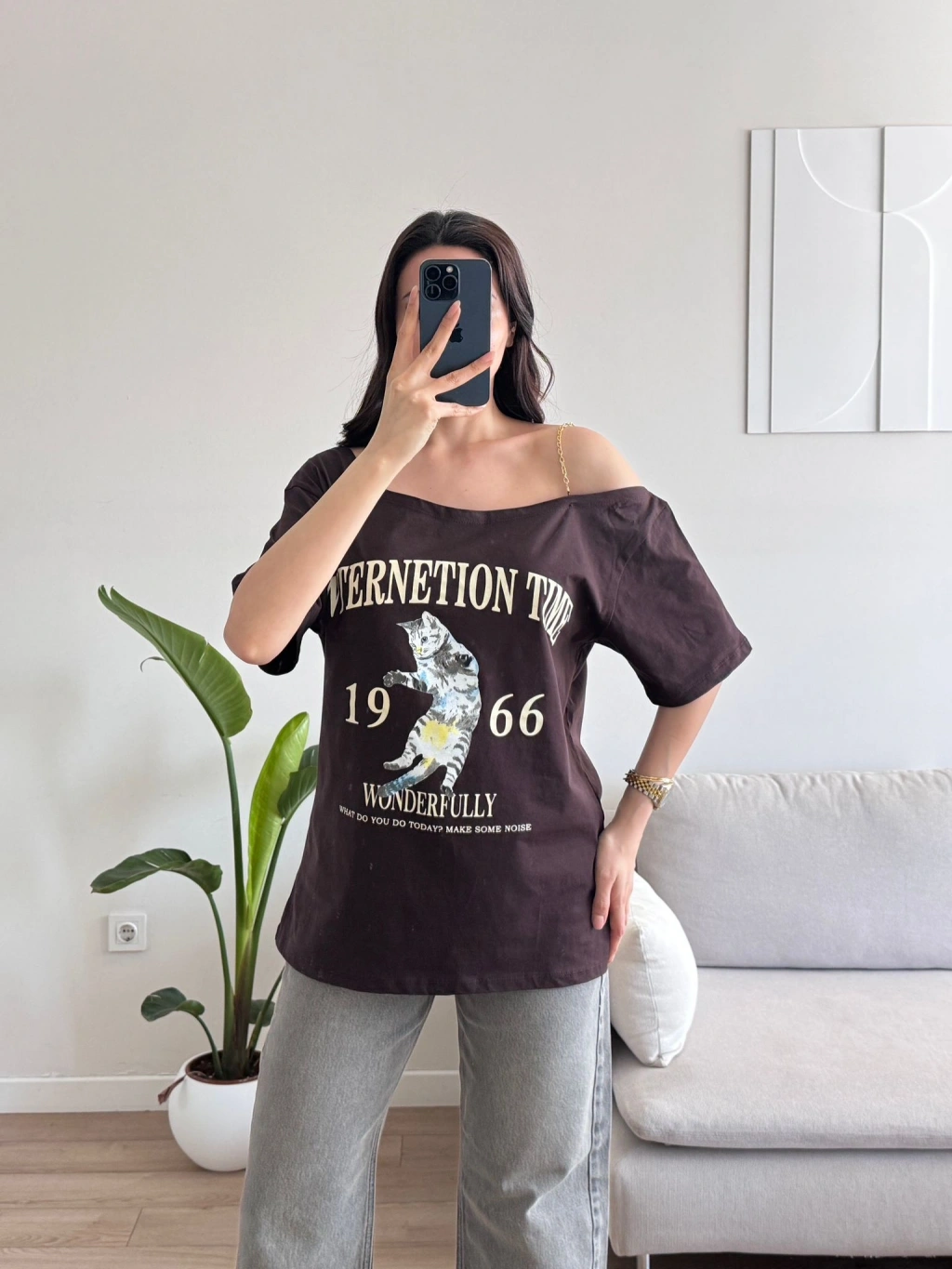 Düşük Omuz Oversize Tshirt - KAHVE