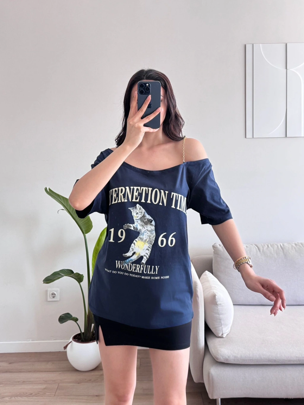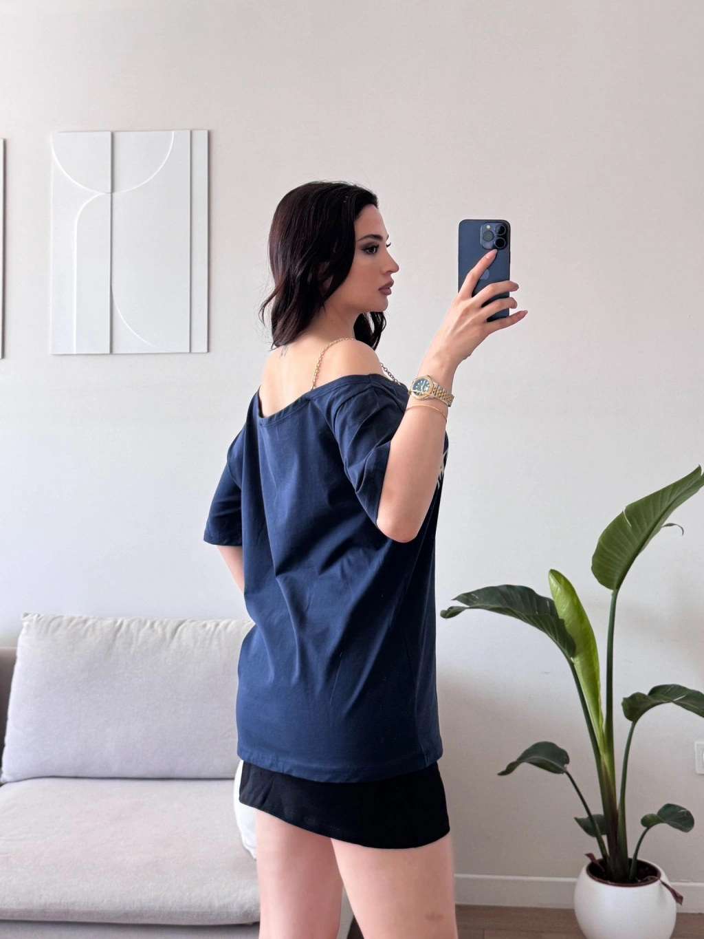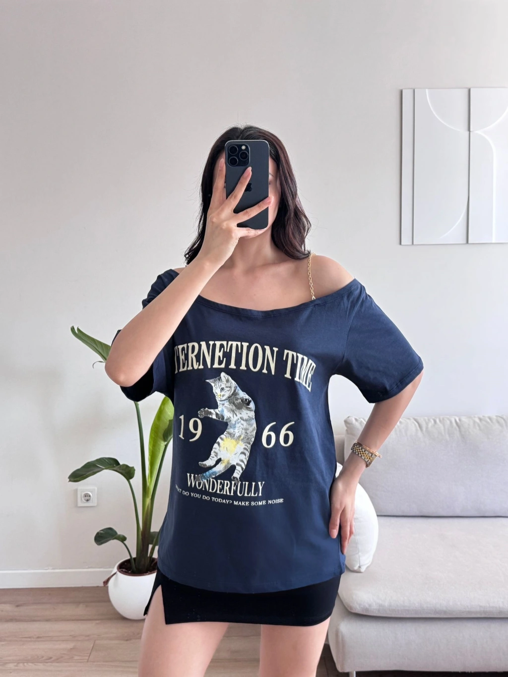 Düşük Omuz Oversize Tshirt - LACİVERT