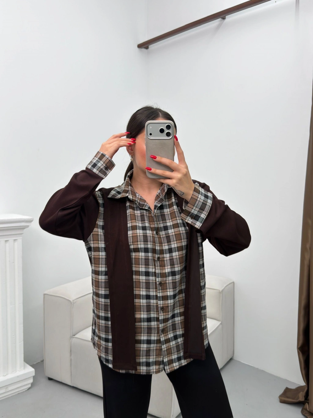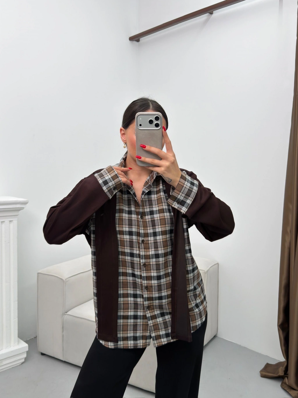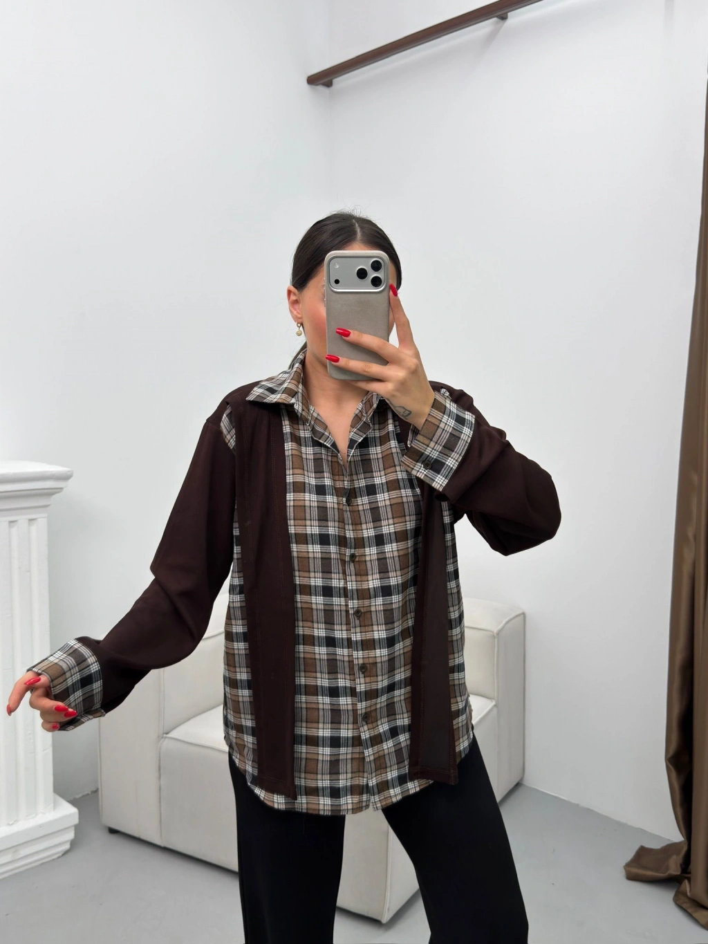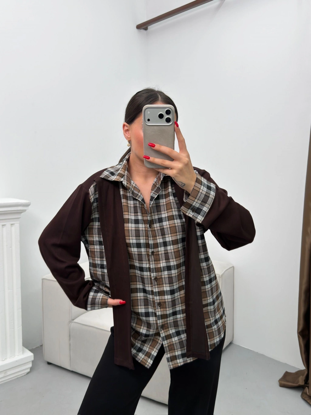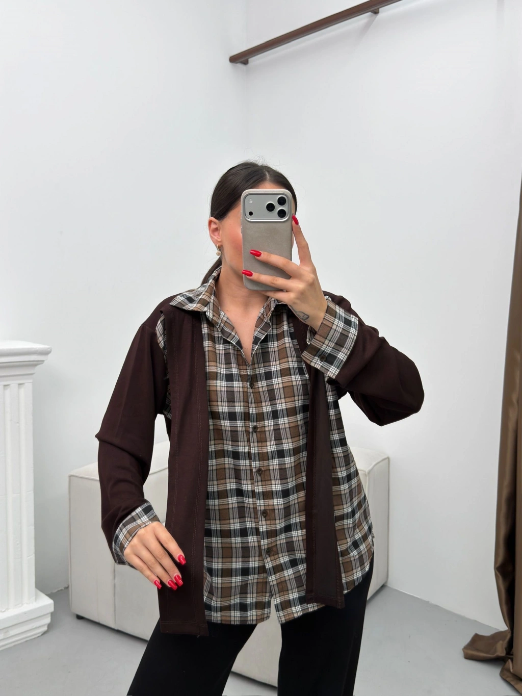 Ekose Gömlekli İkili Takım - KAHVE