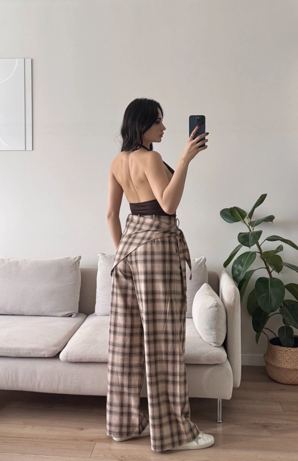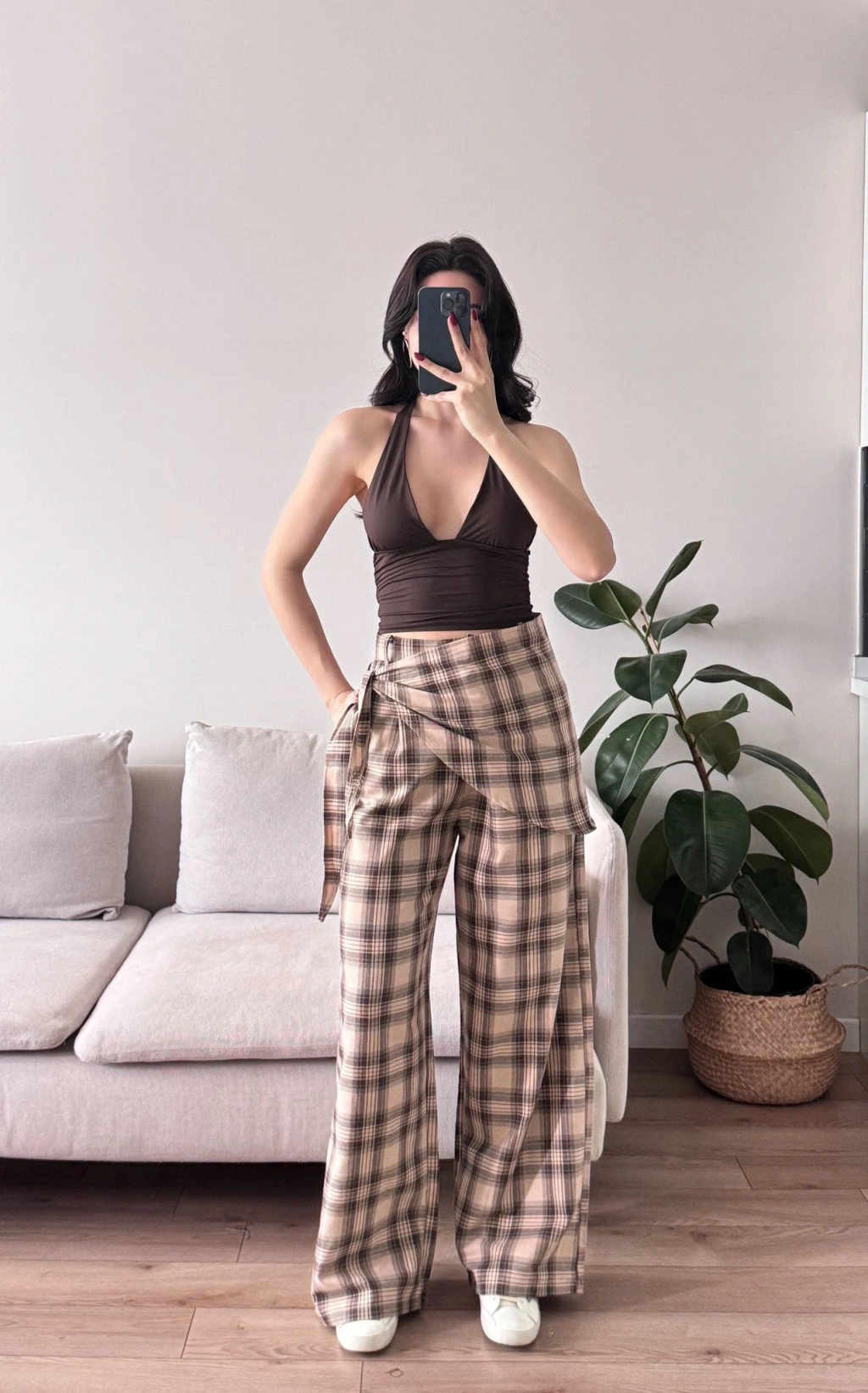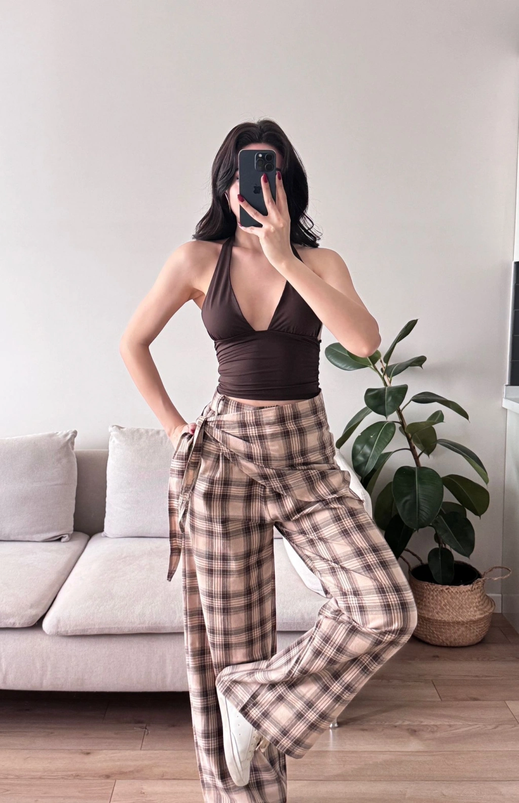 Bel Fular Ekose Pantolon - KAHVE