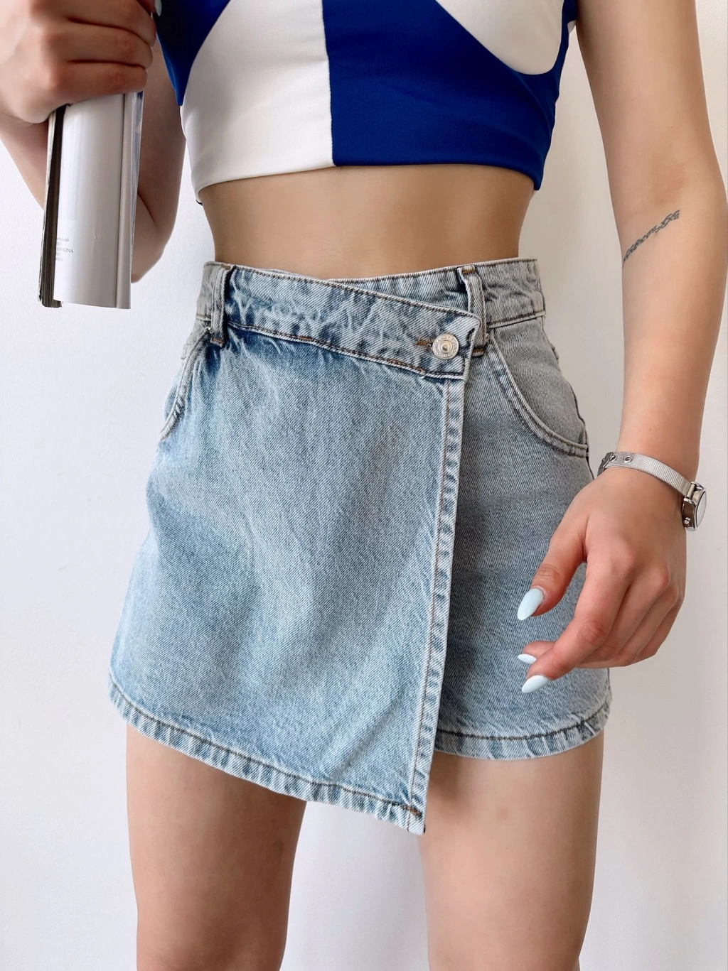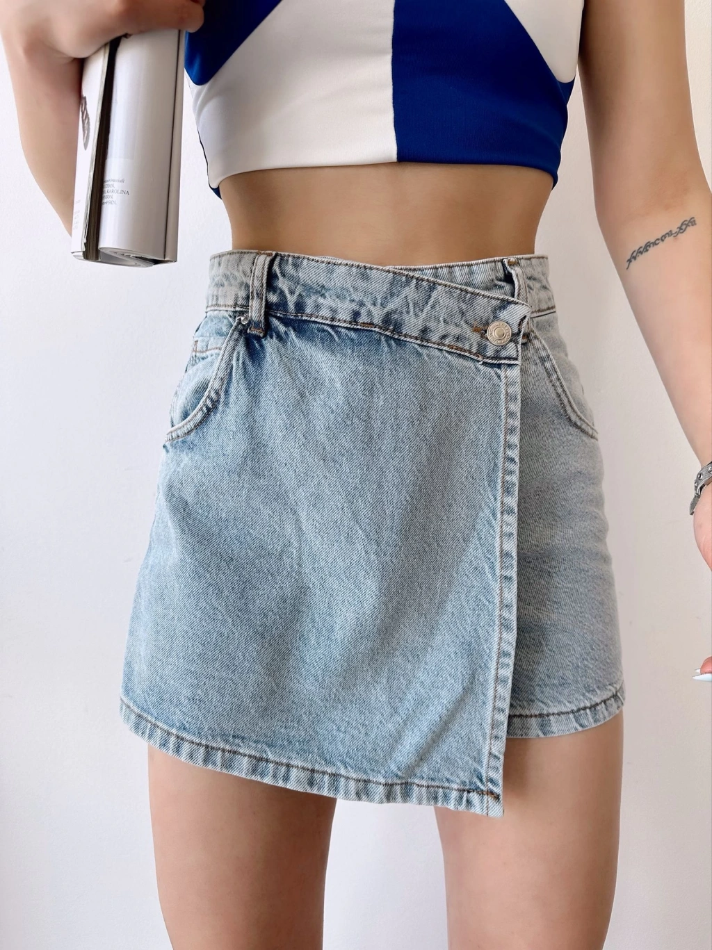Etek Görünümlü Kot Şort-MAVİ