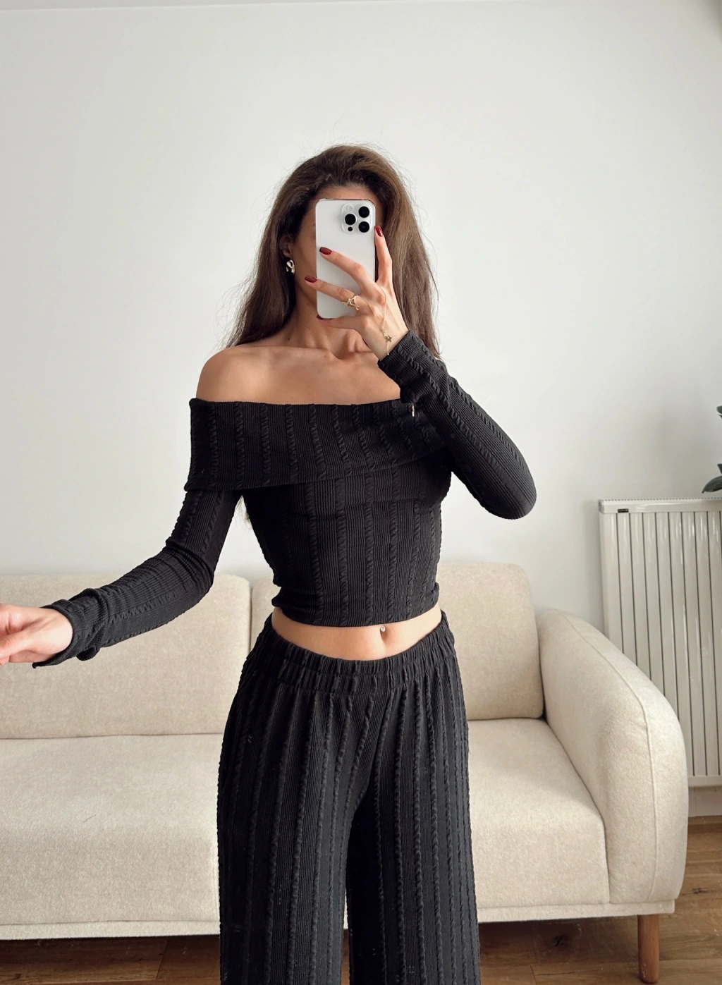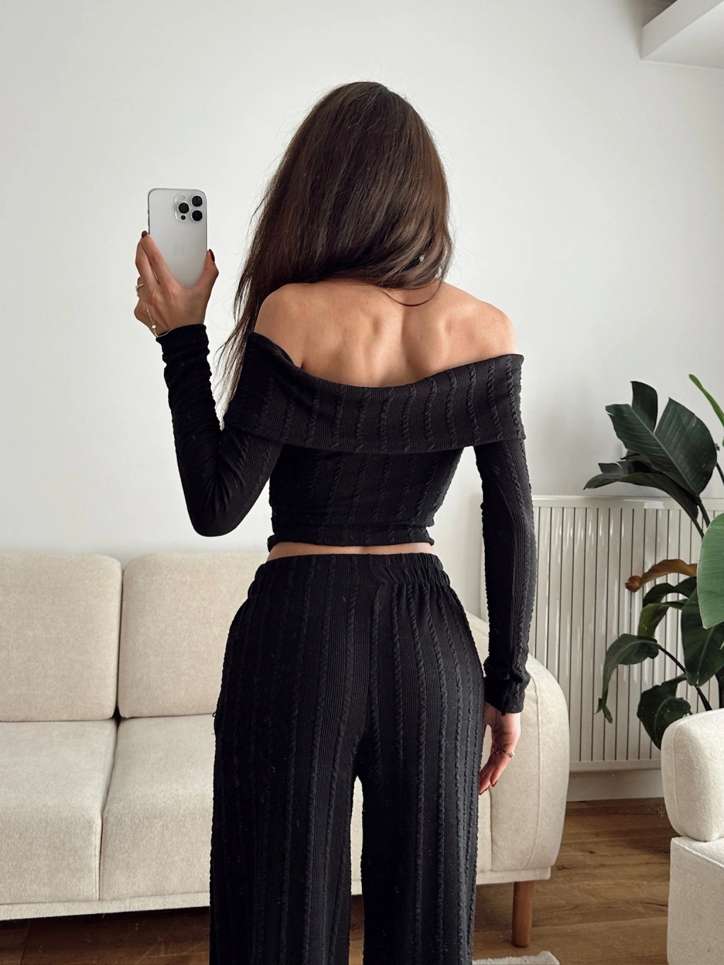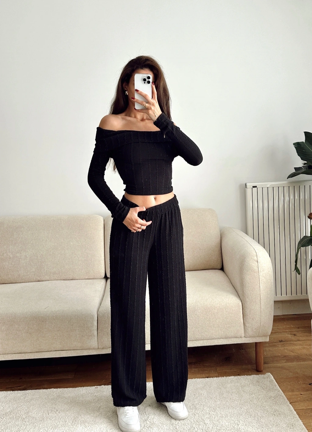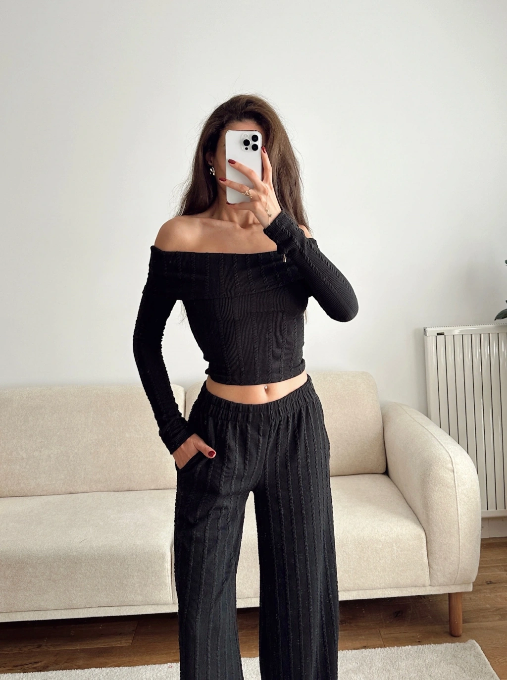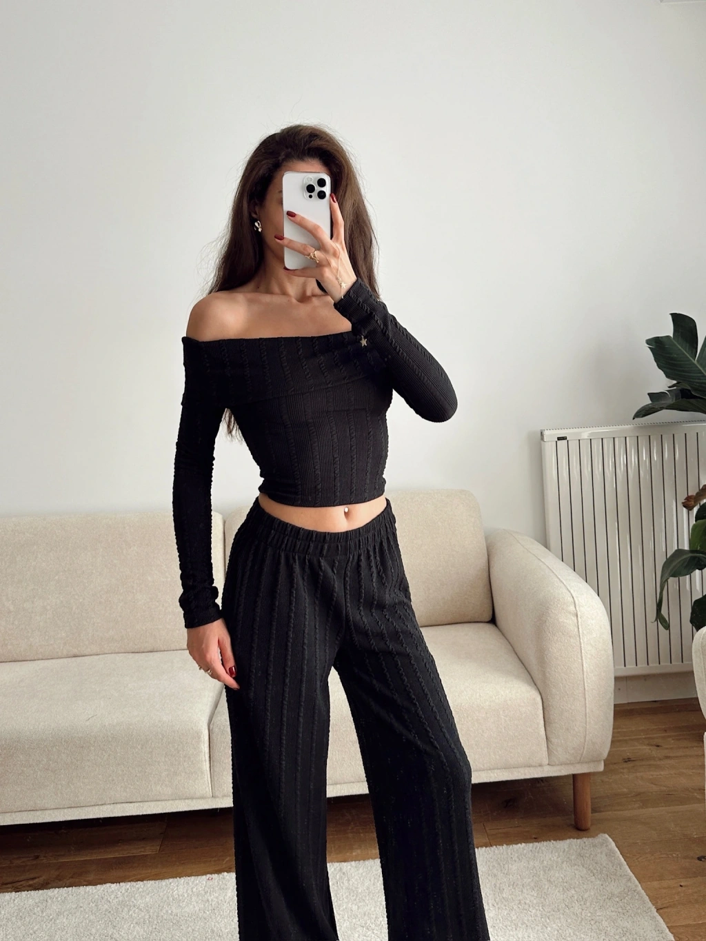 Fitilli Madonna Crop & Pantolon Takım - SİYAH
