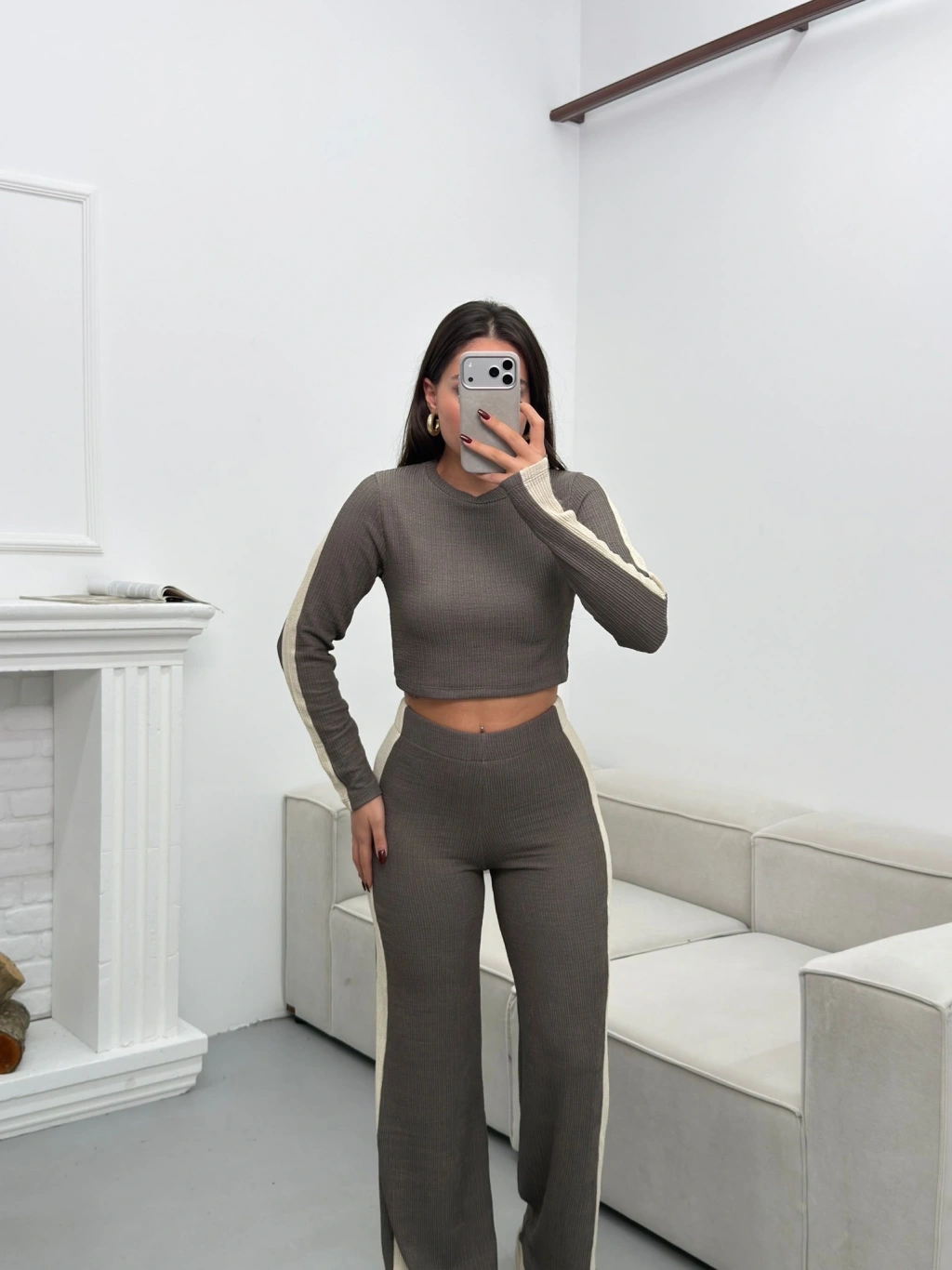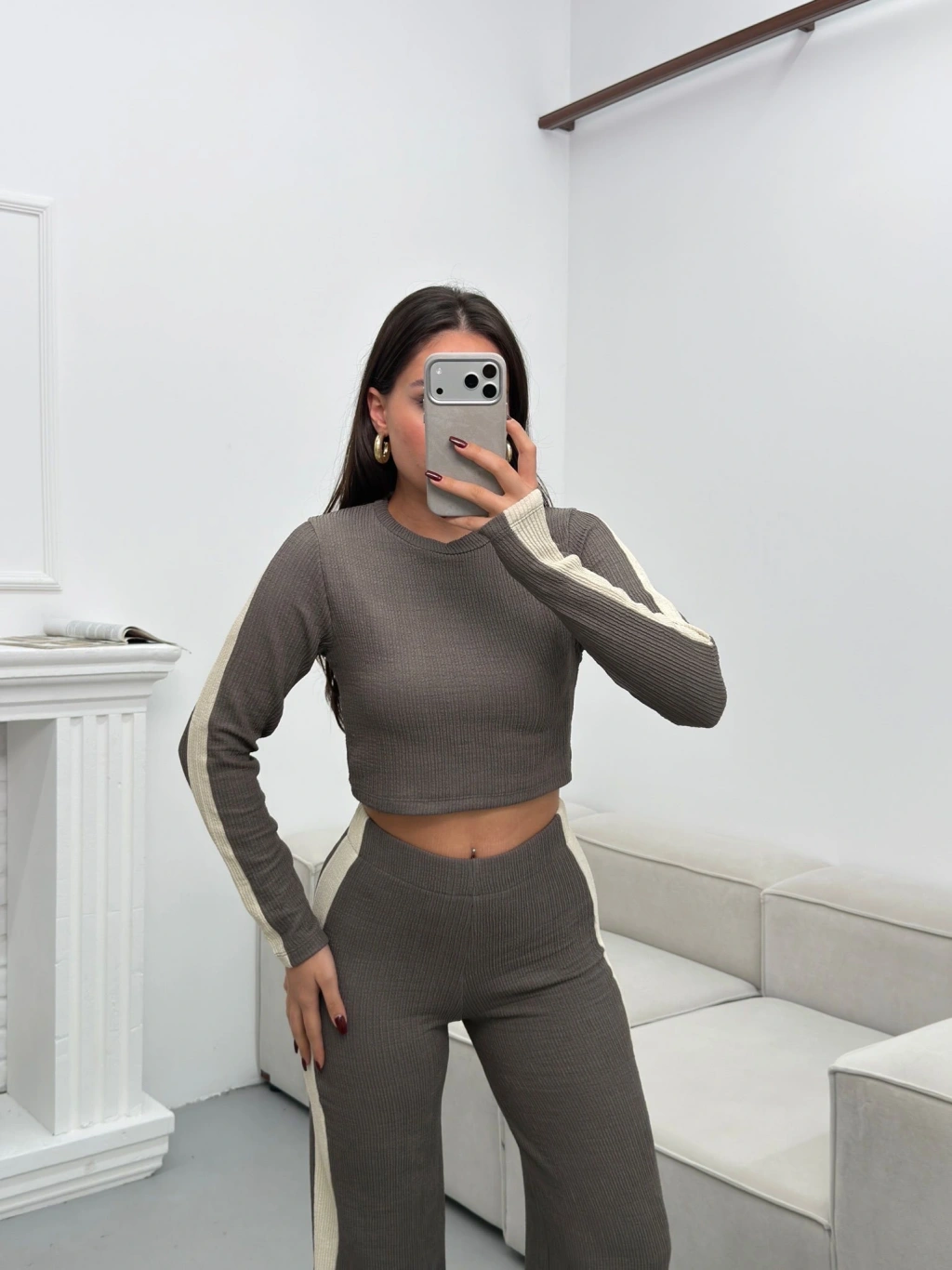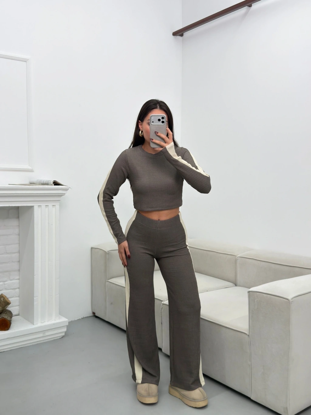 Garnili Triko Pantolon Takım - GRİ